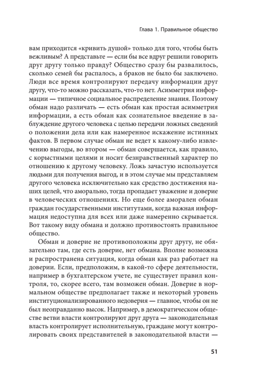 Игорь Потоцкий, журналист, публицистЭта книга — о праве и «правильности», о том, как право формирует порядок, и о том, как соотносятся нормы права и морали. То есть о главном. Потому что история России, как минимум, со времен Петра Романова, искорежена какой-то неизбывной верой в то что законы — это от лукавого, «вы» навязываете их «нам», потому что сила на вашей стороне, хотя супостаты и нечестивы, но есть Божий суд, и поэтому — есть у нас право плевать на ваши законы. Только тихо, чтобы вы нас не поймали.Эта полумистическая концепция права, оправдывающая отторжение государства, стоит и за церковным расколом XVII в., и за чудовищным масштабом теневой экономики в 90-е гг. ХХ в., тотальным разрушением концепции капитала и незыблемости прав собственности, и даже за борьбой с «правовым нигилизмом» и призывами к «диктатуре закона» в начале XXI в.Поэтому книга Андрея Липатова, если хотите, — знак надежды. Во-первых, потому что она есть и она об этом. Во-вторых, потому что она написана не теоретиком, а человеком с опытом реального управления большими системами. А в-третьих, потому что она написана представителем поколения 30-летних, которым хватает воли, свободы мысли и образованности, чтобы наконец задать самые важные вопросы.Моисей, как известно, должен был водить свой народ по пустыне 40 лет, пока не умрет последний, кто видел рабство. Мы от этого далеки. Но это первое поколение, которое не видело рабства. И лет через 10 – 15 управлять страной будут они. К счастью.