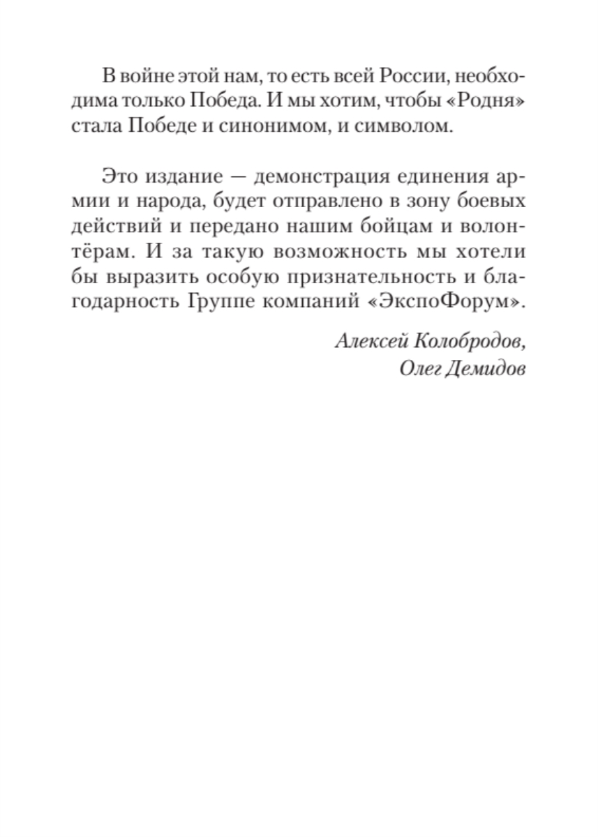 В войне этой России необходима только Победа. А «Родня» для Победы — и синоним, и символ.