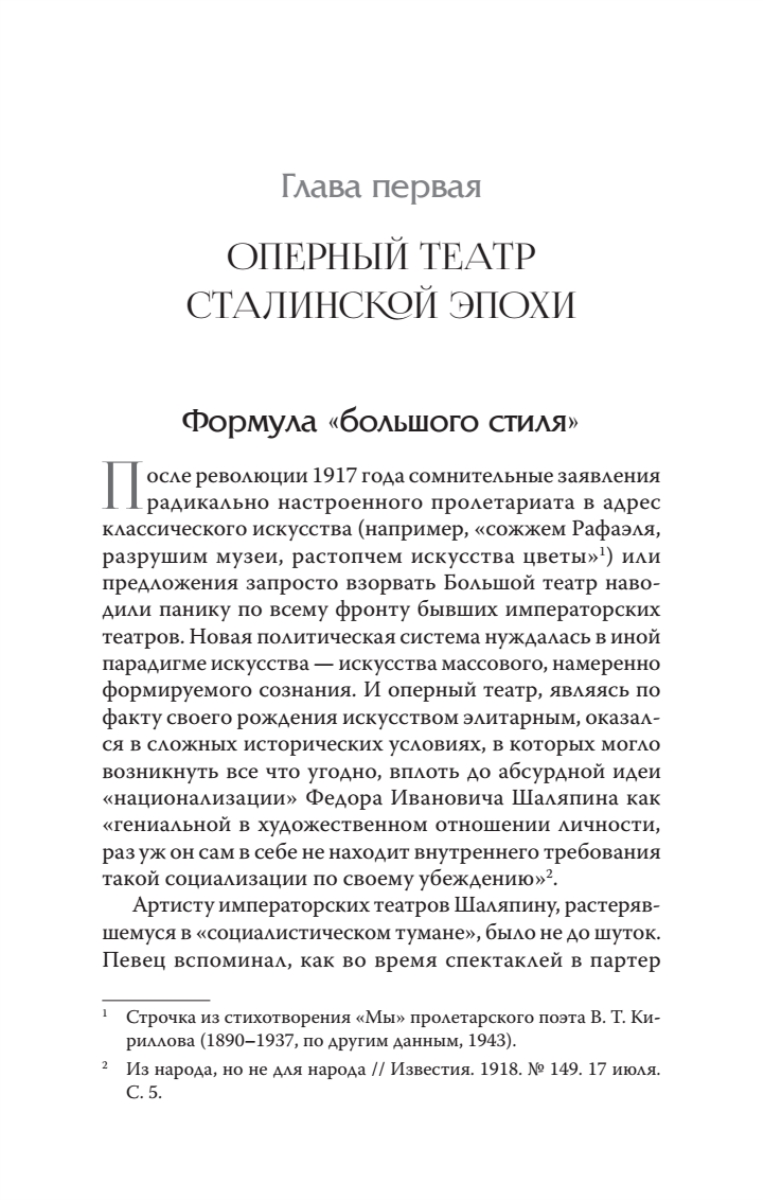 Чем примечательно творчество режиссера, создающего свой спектакль в строгих рамках идеологических запросов советского государства? Может ли быть оригинальным и самобытным художник в сталинскую эпоху? На каком языке говорят со зрителем оперные постановки 1930–1950-х годов? В поисках ответа на эти вопросы книга приглашает читателя совершить увлекательное путешествие по страницам истории музыкального театра периода «большого стиля». На примере постановок русских классических опер в Большом театре и Театре оперы и балета им. С. М. Кирова (Мариинском) автор прослеживает, как происходило разрушение старых и формирование новых традиций театральной культуры. Герои книги – не только режиссеры, декораторы, художники, дирижеры, без участия которых не состоялись бы премьеры, но и само оперное искусство во всем его многообразии.