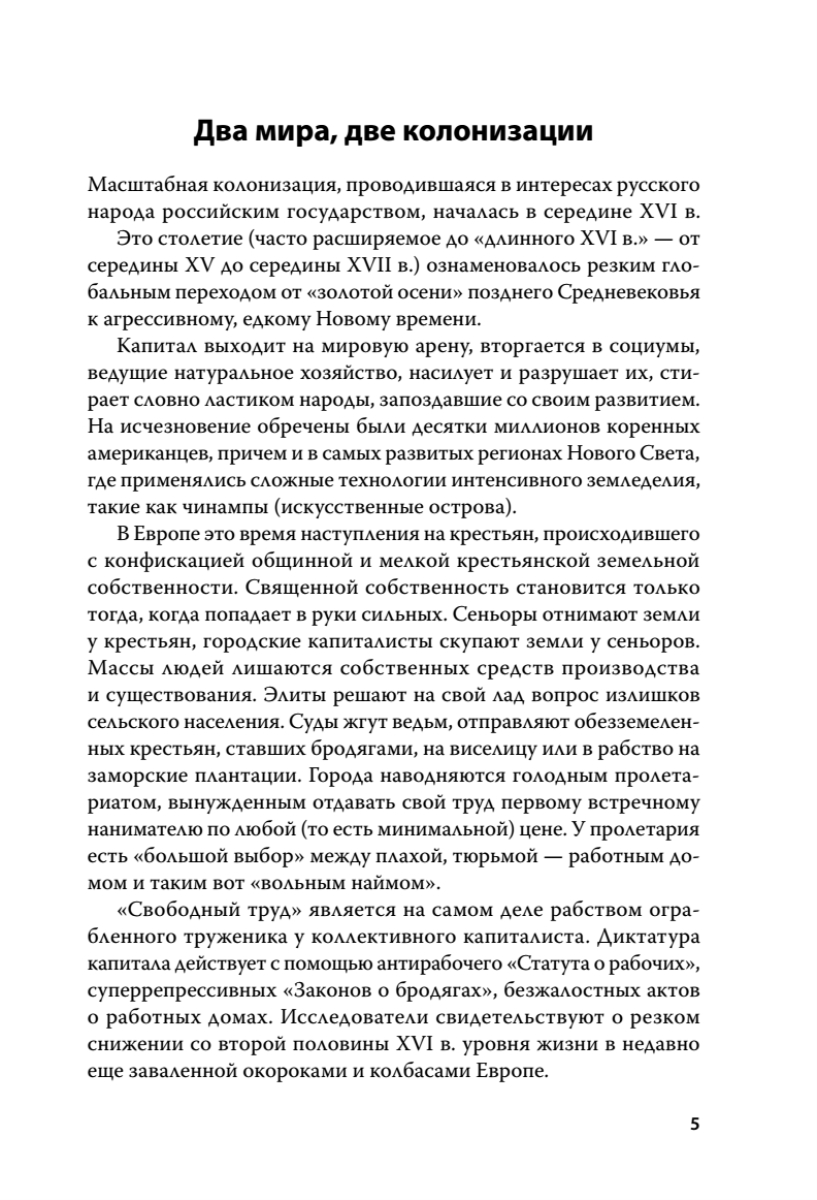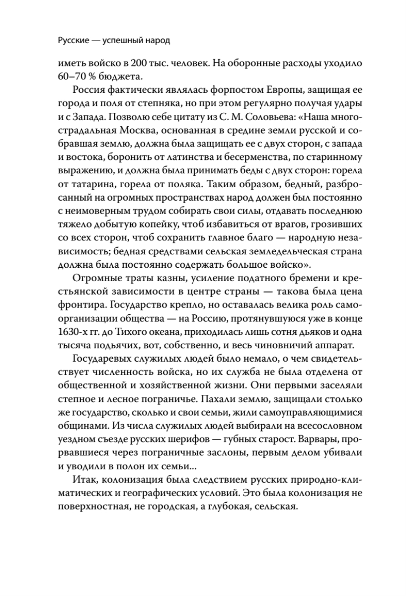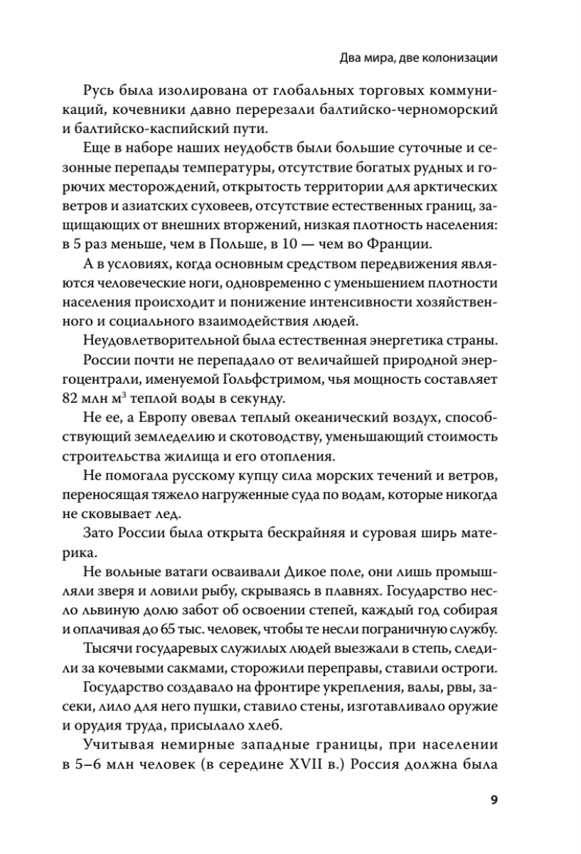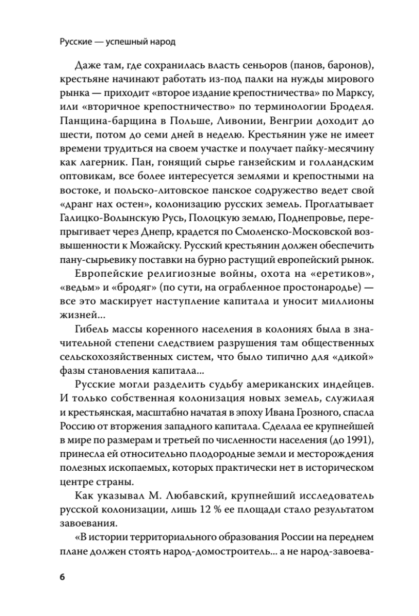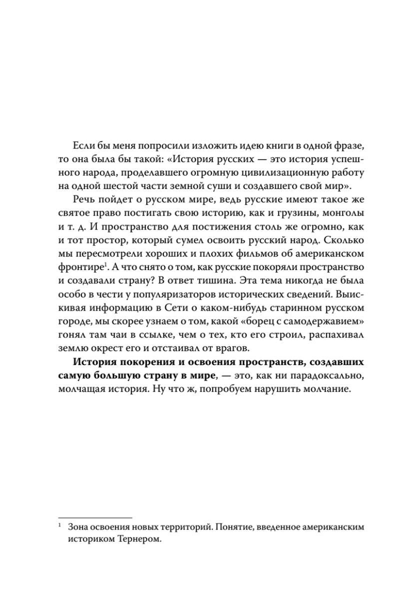 История русских - это история успешного народа, проделавшего огромную цивилизационную работу на одной шестой части земной суши и создавшего свой мир. Речь в книге пойдет о русском мире, ведь русские имеют такое же святое право постигать свою историю, как и другие народы. И пространство для постижения столь же огромно, как и тот простор, который сумел пройти русский народ. Мы живем в самой большой стране мира. Но история того, как русские покоряли пространства – забытая и молчащая. О людях, создававших Россию, не снимают фильмы, подвиги наших первопроходцев преданы забвению. Зато в общественное сознание внедрено немало примитивных клише насчет «агрессивной колониальной политики царизма». Автор этой книги прорывает молчание и разбивает клише. В книге вы найдете ответы на вопросы:Чем русская колонизация отличалась от западной?Как земледельцы вернули себе степь?Зачем русские шли в горы?Как Волга стала великой русской рекой?Что предшествовало покорению Сибири?Как самые трудные пути оказались для русских самыми быстрыми?Чем обернулся для России распад СССР?Грозит ли колонизация современной России?Книга дает картину того, как русский народ расселялся на материковой шири северной Евразии, шел в «дикое поле» и «черный лес», ставил крепости, рубил засеки и стерег врага на шляхах. А потом пахал землю и растил хлеб. И любой чужак, если присоединялся к русскому миру, становился русским по типу цивилизационной работы.Книга разоблачает сепаратистские мифы – на самом деле выходцы из самых разных русских областей сходились на новых землях. Освоение пространств был делом единого государства и единого народа. Предки построили для нас огромный дом – Россию, к которому последние двадцать лет мы относимся без должной ответственности. Но другого дома у нас не будет. Книга Александра Тюрина, рассказывая о деяниях предков, взывает к тому, чтобы мы сохранили для потомков наше общее достояние – российскую землю и русский мир.