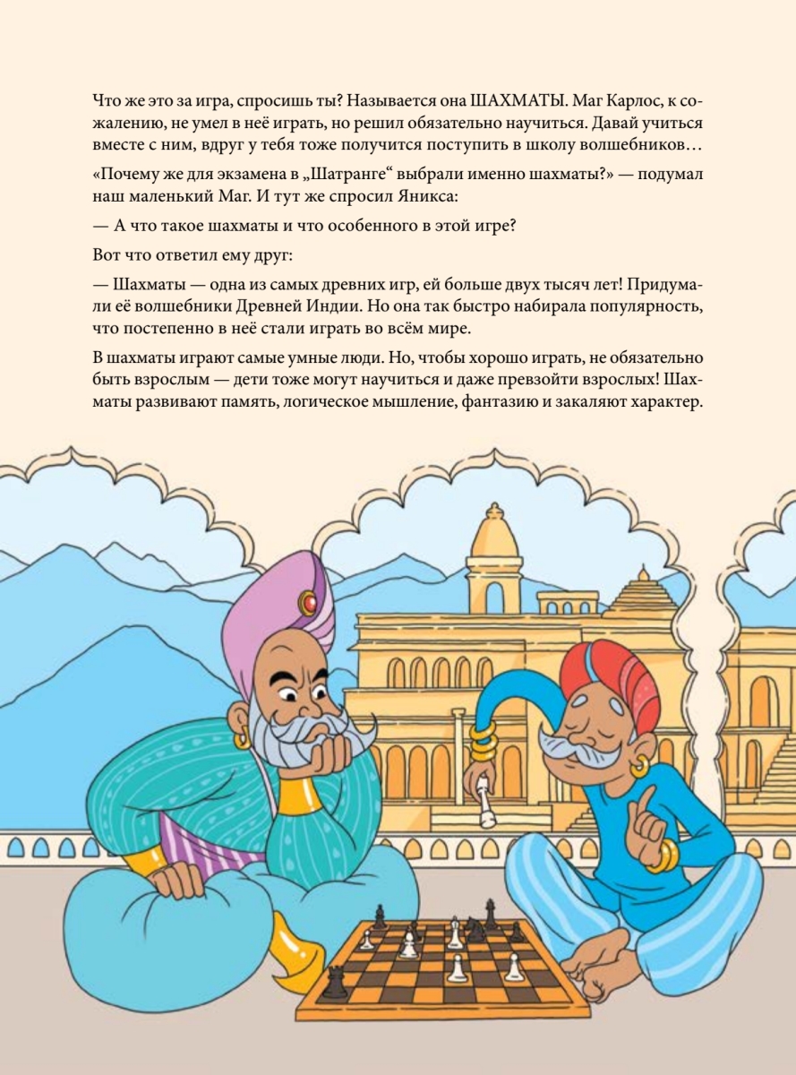 Мария Фоминых — международный гроссмейстер, чемпионка России и Европы среди девушек, автор детских книг по шахматам, тренер, организатор шахматных турниров, журналист. ...Жил-был на свете один волшебник по имени Маг Карлос. Правда, был он ещё совсем маленький и мало что умел. Больше всего на свете он хотел учиться в школе волшебства «Шатранг», но брали туда только тех, кто смог сдать экзамен — сыграть в волшебную игру шахматы с учителем и решить 10 специальных задач… Вместе с ребёнком пройдите этот увлекательный путь в мир шахмат. Вы сможете поиграть в интересные игры, раскрасить картинки и научиться играть в шахматы. И, конечно, стать самым настоящим чемпионом. Вы узнаете: • как ходят шахматные фигуры; • что такое шах и мат; • как сделать рокировку; • что такое взятие на проходе и многое другое. Книга предназначена для занятий с детьми от трёх лет дома и в студиях.
