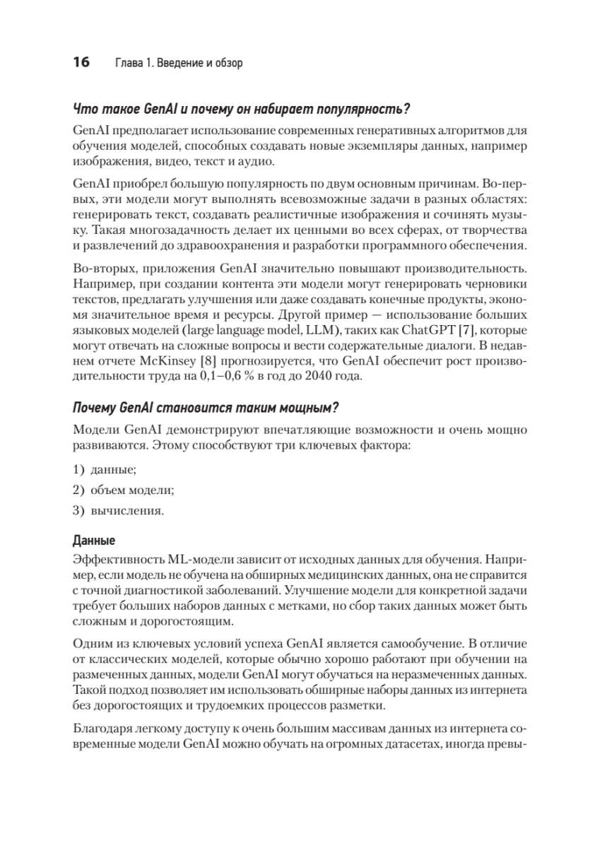 Интервью по System Design (проектированию ИТ-систем) очень популярны у работодателей, на них легко проверить ваши навыки общения и оценить умение решать реальные задачи. Интенсивный практикум по проектированию сложных ML-систем сфокусирован на самой горячей теме последних лет: генеративном искусственном интеллекте. Если вы датасайентист или ML-инженер, готовый перейти от теоретических знаний и изолированных моделей к созданию полноценных, масштабируемых и надежных продуктов, эта книга для вас. Авторы не просто рассказывают о трансформерах и диффузионных моделях — они проводят читателя через весь жизненный цикл системы: от сбора и очистки данных и выбора архитектуры до развертывания и мониторинга. Книга построена вокруг разбора реальных кейсов (Gmail Smart Compose, Google Translate, ChatGPT), что делает её бесценным ресурсом для подготовки к сложным интервью по System Design и для реальной работы.Что внутри?• О чем на самом деле спрашивают на собеседовании по проектированию GenAI-систем и почему (инсайдерская информация).• Фреймворк из 7 шагов для подготовки к вопросам по проектированию систем.• 10 реальных задач по проектированию GenAI-систем с подробными решениями.• Более 280 диаграмм, чтобы разобраться в сложных GenAI-системах.