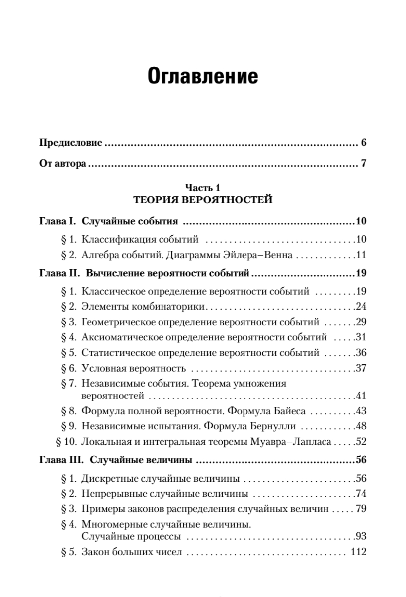 Учебное пособие написано в соответствии с действующими федеральными государственными образовательными стандартами и содержит теоретический материал и задачи для изучения алгебры событий, теории вероятностей и математической статистики. Многочисленные примеры и задачи могут использоваться также и на практических занятиях.