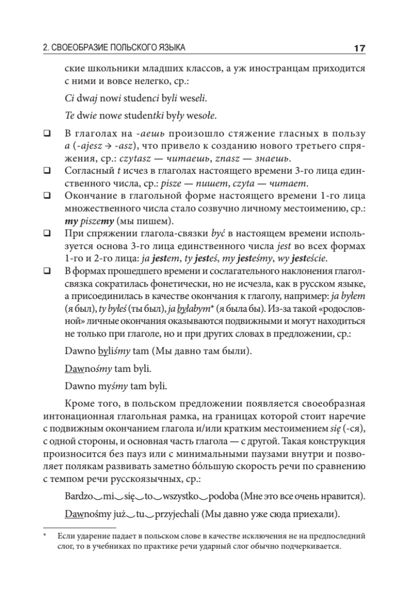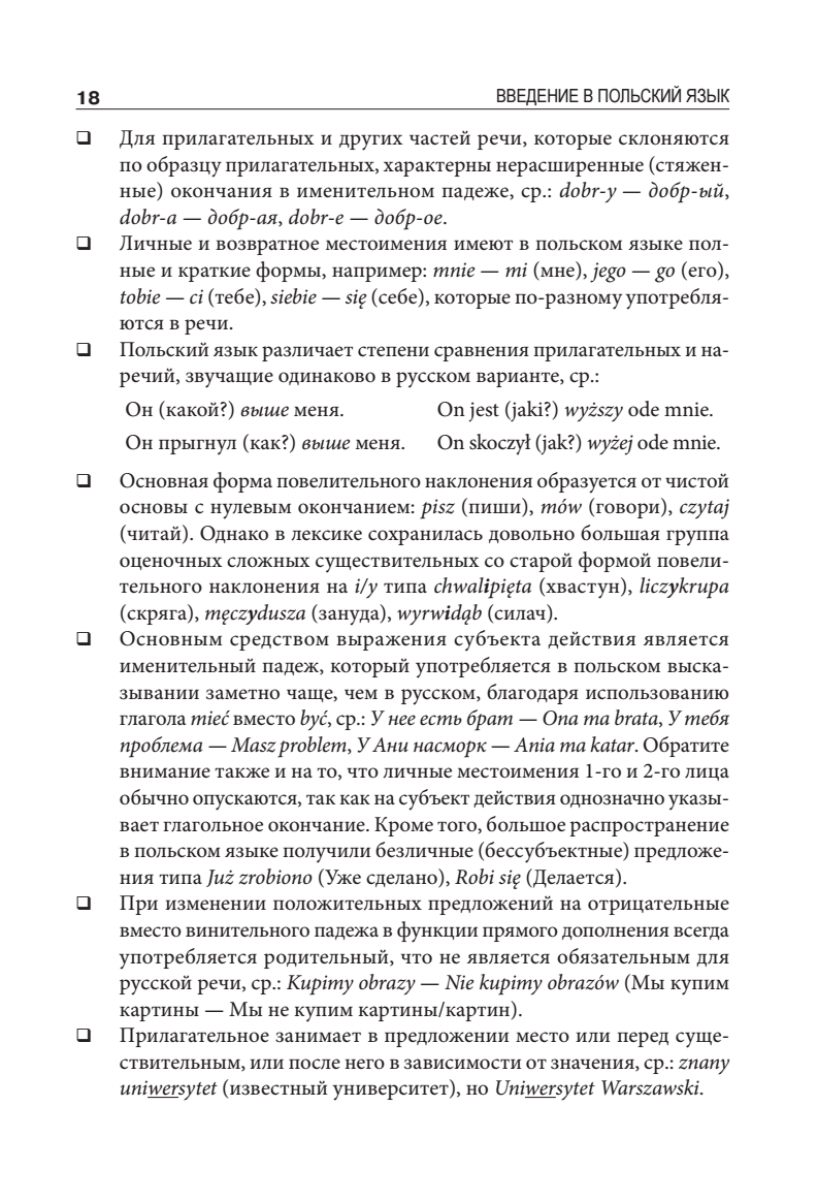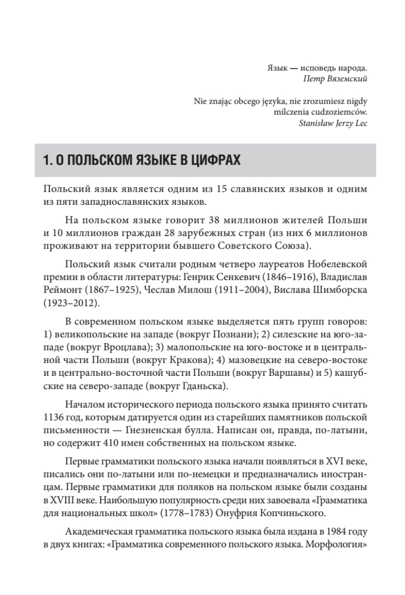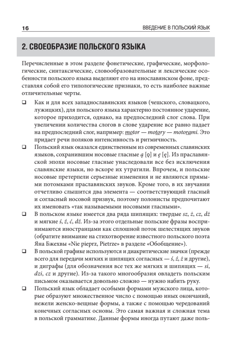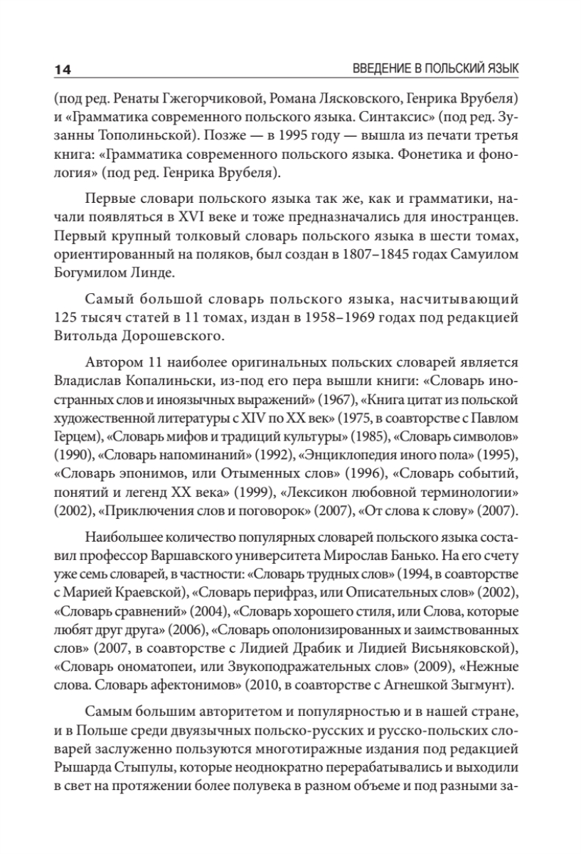 В данном сборнике сочетаются традиции классического образования, новые методы обучения, опыт полиглотов и логопедов. Вводный курс включает в себя теоретический материал и упражнения по практической фонетике (произношению), задания по аудированию, а также минимальный лексический багаж, азы сравнительной фонологии, грамматики и лексики польского и русского языков. Кроме того, в рамках опережающего обучения приводятся отдельные темы по грамматике, орфографии, речевому этикету, страноведению и практике перевода. Впервые вводно-фонетический курс польского языка разработан с учетом новейших научных исследований в области фонетики, фонологии и методики преподавания.Курс предназначен для занятий со студентами языковых и неязыковых факультетов вузов, старшеклассниками школ и гимназий и может быть использован для самостоятельного изучения польского языка.