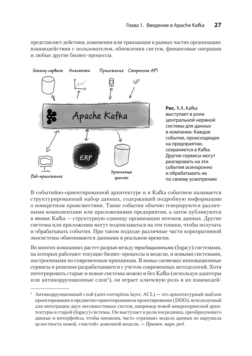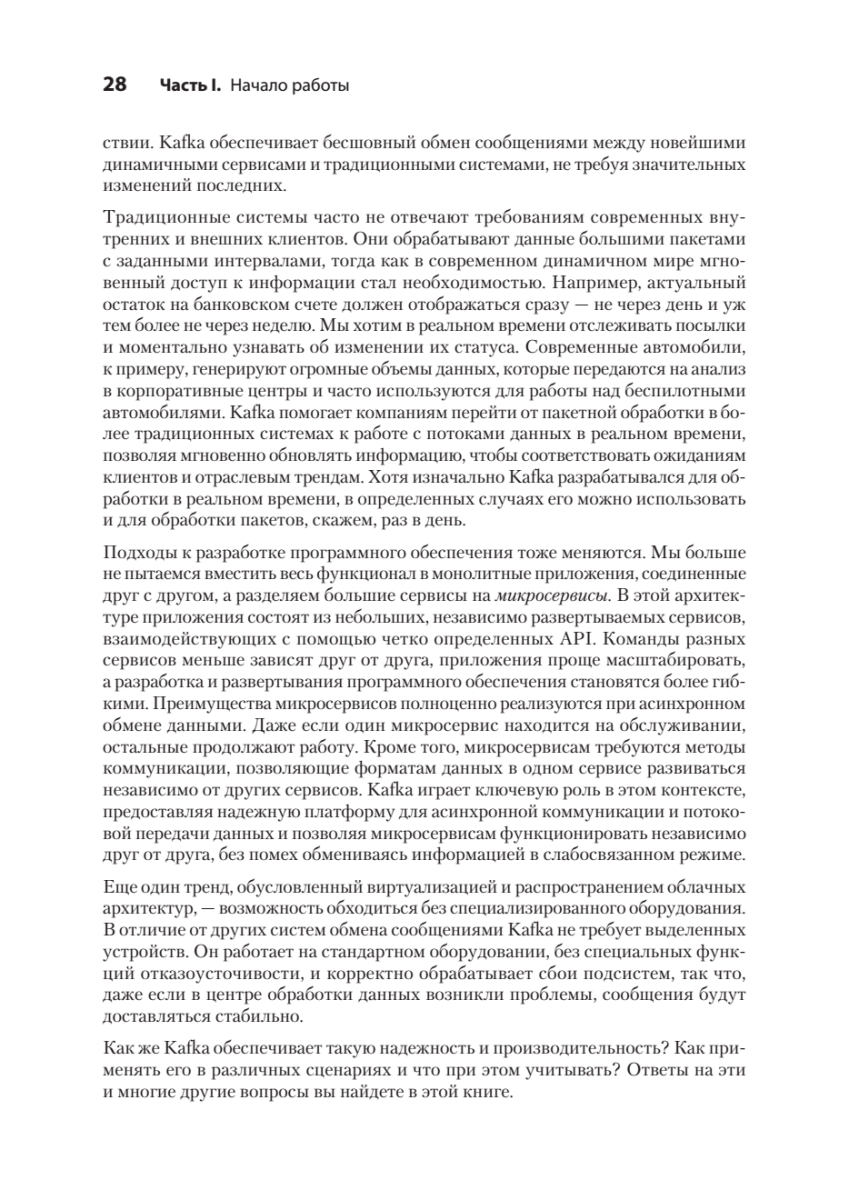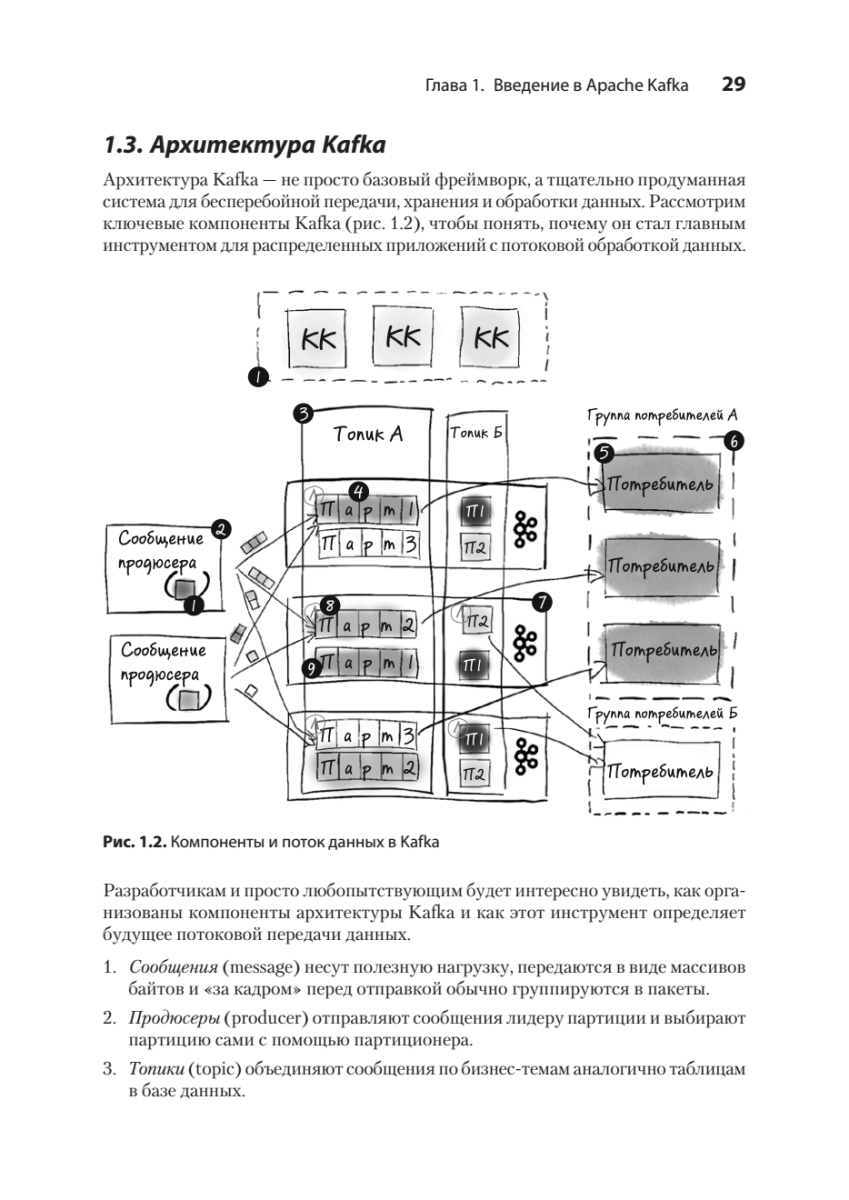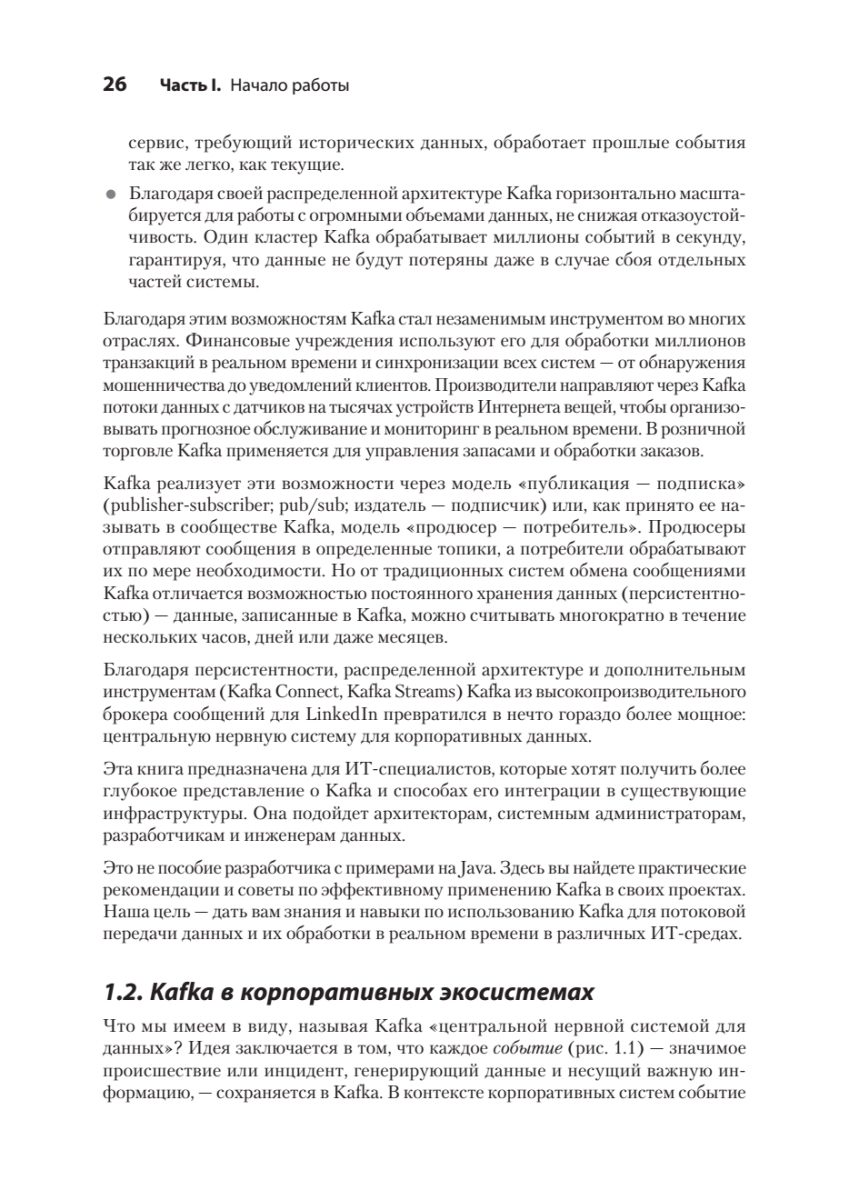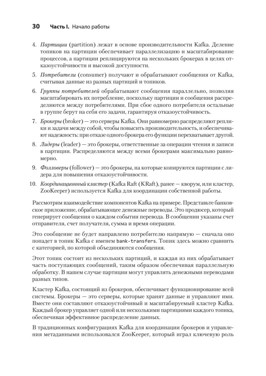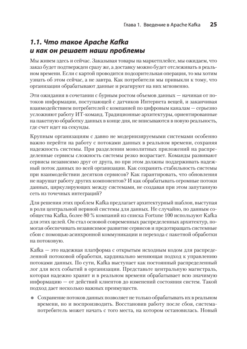Apache Kafka — это эталонная платформа для аналитики в реальном времени, передачи событий и потоковой обработки. Выступая в качестве центрального узла для распределенных данных, Kafka обеспечивает беспрепятственный обмен между продюсерами и потребителями по модели «издатель — подписчик». Kafka легко обрабатывает миллионы событий в секунду, а его надежная архитектура гарантирует высокую отказоустойчивость и масштабируемость.«Apache Kafka в действии» — это практическое руководство для ИТ-специалистов, которые внедряют Kafka в приложения и инфраструктуры, обрабатывающие огромные объемы данных. Издание охватывает все ключевые темы — от основ Kafka до продвинутых операций, а теория дополнена наглядными иллюстрациями и примерами из ежедневной практики. Читатели научатся настраивать кластеры Kafka, производить и потреблять сообщения, обрабатывать потоковые данные в реальном времени, а также интегрировать Kafka в корпоративные системы. В книге доступно изложены принципы создания надежных приложений Kafka и преимущества распределенной архитектуры для масштабируемости и устойчивости.