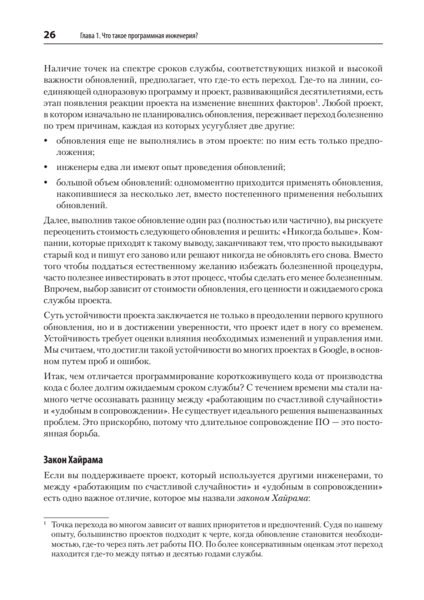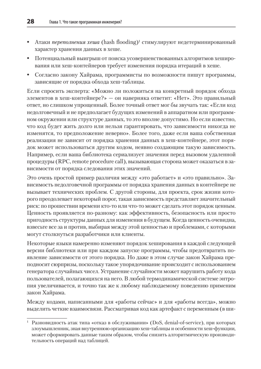 Современные программисты должны не только эффективно программировать, но и знать надлежащие инженерные практики, позволяющие сделать кодовую базу стабильной и качественной. В чем же разница между программированием и программной инженерией? Как разработчик может управлять живой кодовой базой, которая развивается и реагирует на меняющиеся требования на всем протяжении своего существования? Основываясь на опыте Google, инженеры-программисты Титус Винтерс и Хайрам Райт вместе с Томом Маншреком делают откровенный и проницательный анализ того, как ведущие мировые практики создают и поддерживают ПО. Речь идет об уникальной инженерной культуре, процессах и инструментах Google, а также о том, как эти аспекты влияют на эффективность разработки.Вы изучите фундаментальные принципы, которые компании разработчиков ПО должны учитывать при проектировании, разработке архитектуры, написании и сопровождении кода.
