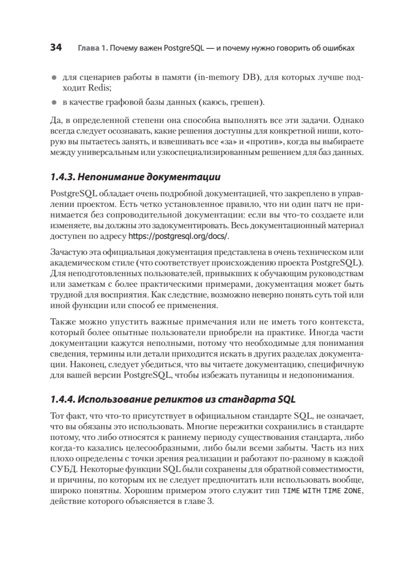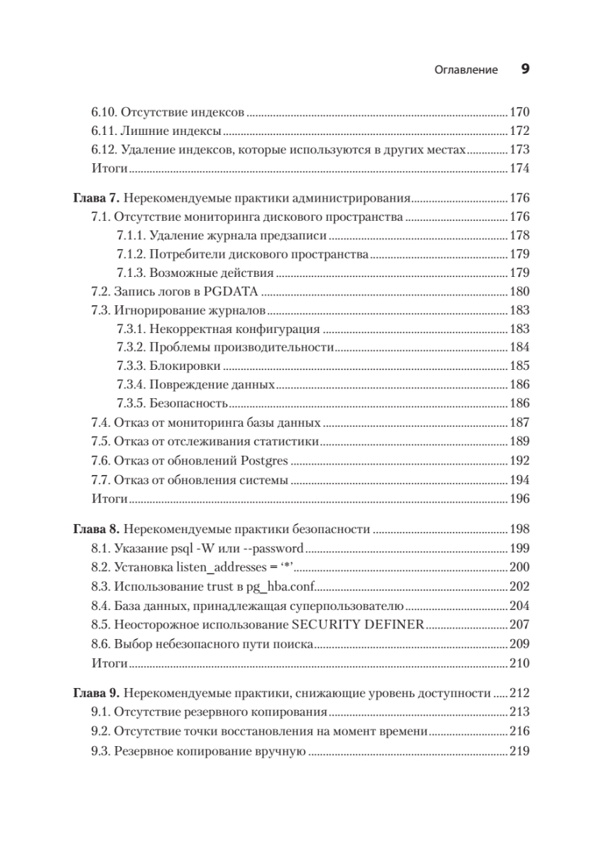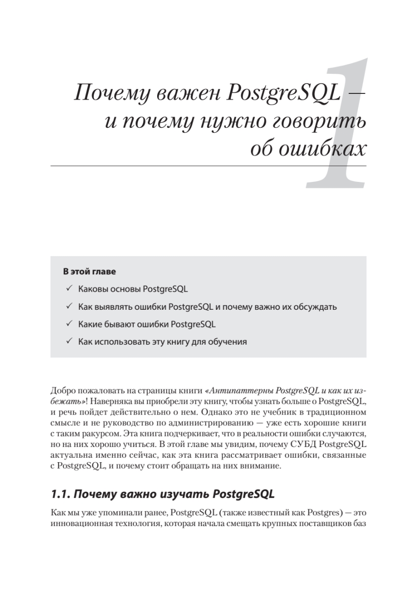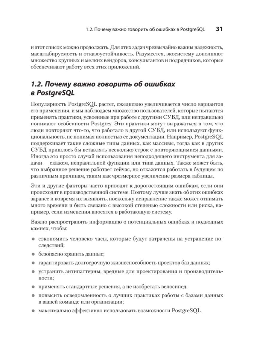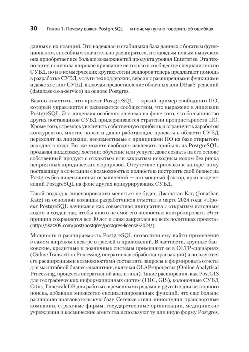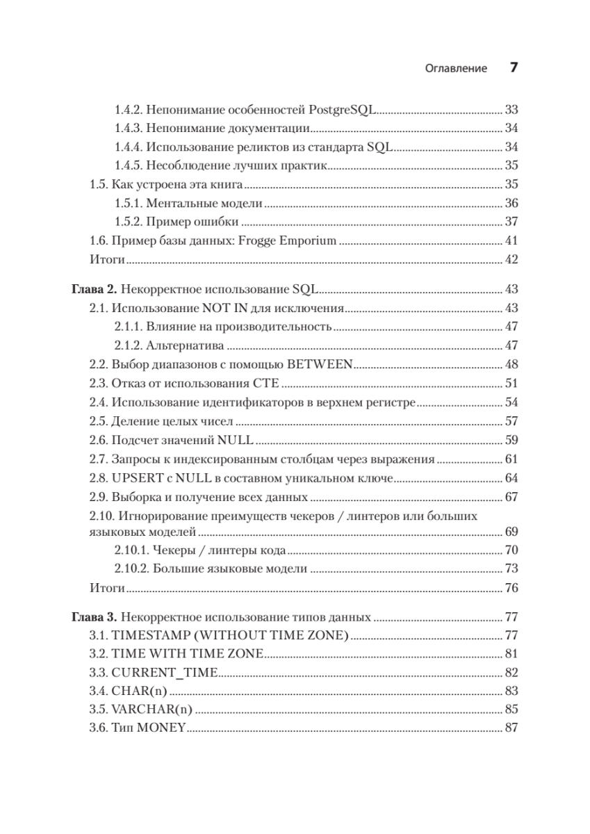 Исправление ошибок в базах данных PostgreSQL может быть трудоемким и рискованным процессом — особенно при внесении изменений в работающую систему в реальном времени. К счастью, можно учиться на ошибках, которые уже совершили другие! Автор подробно описывает, как выявлять и предотвращать самые распространенные, опасные и скрытые антипаттерны проектирования при работе с PostgreSQL. Узнайте, откуда берутся ошибки в таких ключевых областях, как типы данных, функции, безопасность и обеспечение высокой доступности СУБД. Для каждой ошибки вы найдете реальный кейс, иллюстрирующий истоки проблемы, и получите конкретные рекомендации по ее устранению. Особую ценность представляют наглядные примеры кода, схемы и сравнительные таблицы преимуществ и недостатков различных подходов.