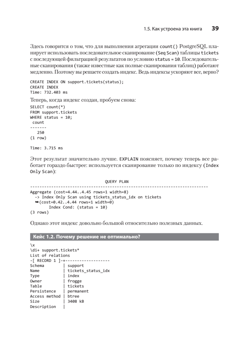 В работе над книгой принимал участие ReadIT Club. О научном редакторе. Сергей Гонцов более 25 лет в ИТ — 25 лет интереснейшей работы в интеграторах, где каждый ИТ-проект — это новое испытание и новые смежные области знаний. Прошел путь от инженера поддержки одной из сложных государственных автоматизированных систем (ГАС) до технического владельца продуктов OrionSoft Proxima DB и Arenadata Prosperity (российских СУБД на базе PostgreSQL), участвовал во многих сложных и распределенных ИТ-проектах, постоянно сталкиваясь с разными вызовами использования реляционных СУБД, принимал участие в проектировании и создании инфраструктуры ЕМИАС, инженер по духу и увлеченный исследователь.