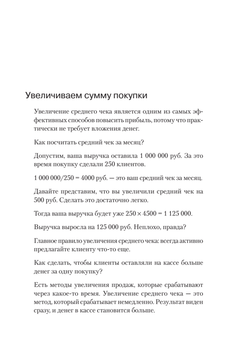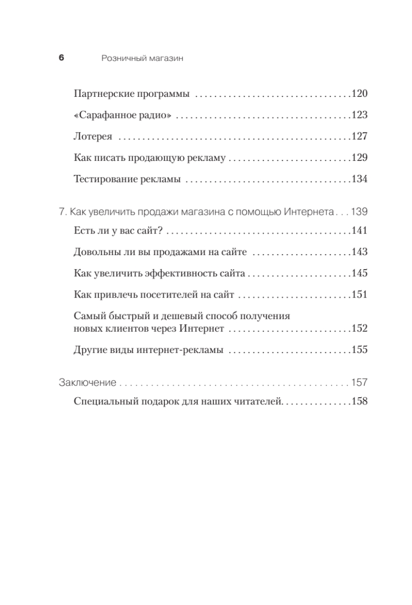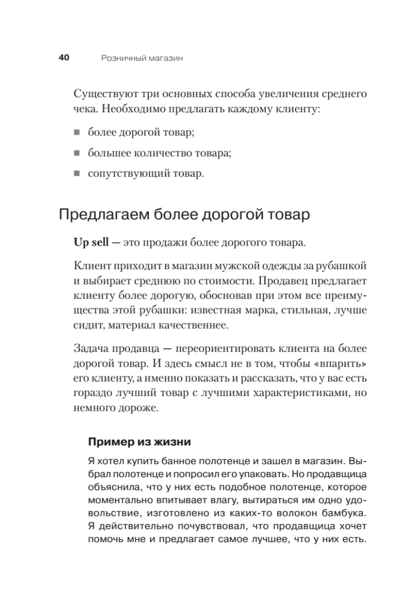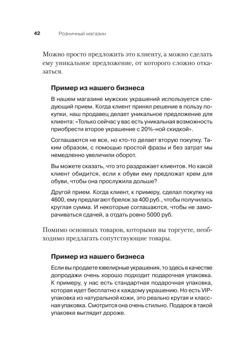 В этой книге собраны самые сильные методы увеличения продаж, которые могут вывести розничный магазин на принципиально новый уровень. Как брать за каждый товар больше денег? Как потенциальных клиентов превращать в реальных? Как продавать больше товаров каждому? Как делать больше повторных продаж? Как привлекать больше новых клиентов? Как писать продающую рекламу? Как найти «золотого» продавца? Об этом и о многом другом – в настоящем издании. Книга написана специально для владельцев и управляющих розничными магазинами, а также будет полезна всем, кто только планирует открыть свой первый магазин.