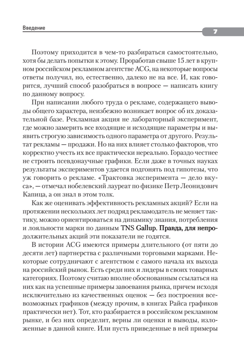 В книге дана краткая оценка состояния рекламной отрасли и ее возможностей в России в настоящее время. Также рассматриваются эффективные методы формирования потребительского отношения, то есть методы, в первую очередь, выращивания брендов, а не их сохранения.Что такое маркетинговые коммуникации сегодня, за что платить рекламным агентствам, какой вид рекламы выбрать для своего продукта? Ответы на эти и другие вопросы подробно освещены в книге и иллюстрированы примерами из практики маркетинговых кампаний.Издание будет полезно российским владельцам брендов, руководителям и сотрудникам отделов маркетинга и рекламы, а также студентам университетов всех специальностей по дисциплинам «Связи с общественностью», «Реклама», «Маркетинг», «Введение в маркетинговые коммуникации».