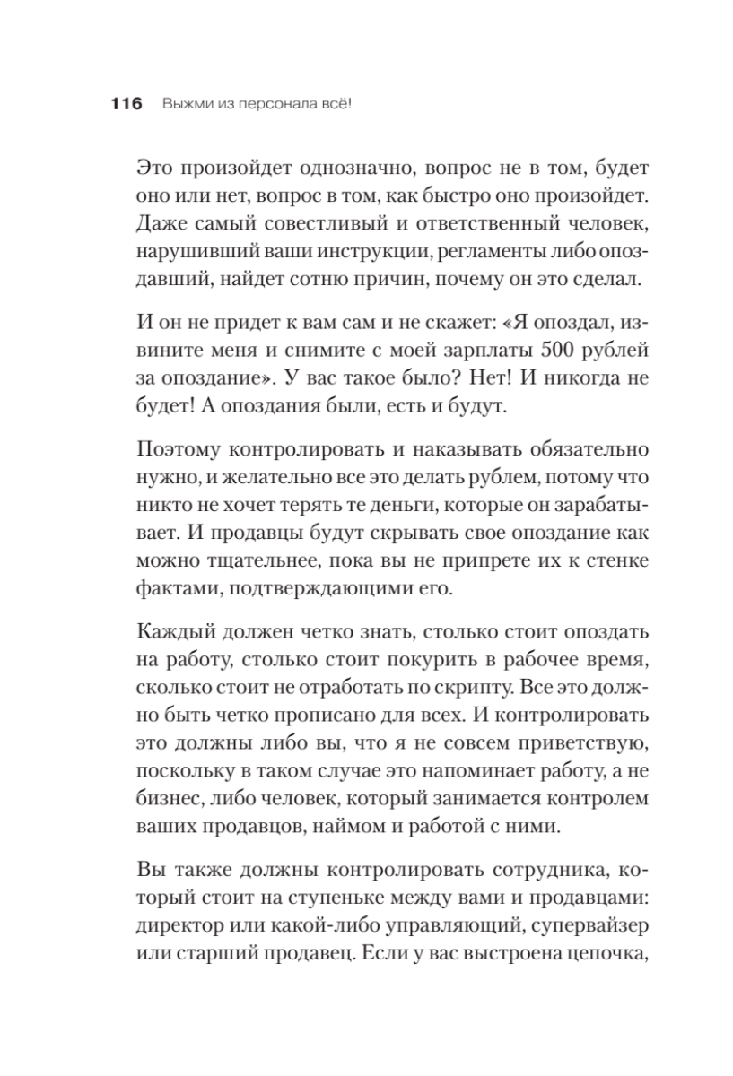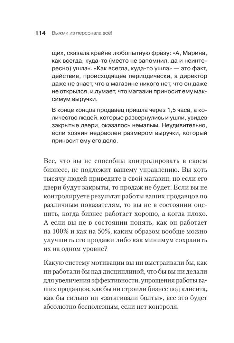 Если вы хватаетесь за голову, не зная, как увеличить продажи, потому что ваши клиенты уходят к конкурентам, задумайтесь: с кем вы работаете? Снимите, наконец, розовые очки и разберитесь в том, как эффективно управлять своими продавцами. Эта книга вам поможет. В ней вы не увидите типичной модели мотивации продавцов в розничном магазине. Более того, практически все методы, о которых вы узнаете, покажутся вам странными и порой жесткими. Но без них вы уже не сможете обойтись. Управляя продавцами, авторы перепробовали огромное количество моделей мотивации. Получали разные результаты и в итоге пришли к самому эффективному способу управления, который описали в данной книге. Здесь вы не найдете теории, только практика, работающие и эффективные технологии, протестированные в разных сферах бизнеса. Издание рекомендовано владельцам, руководителям и управляющим розничных магазинов. Также оно будет полезно тем, кто только планирует открыть свой первый небольшой магазин. Желаем вам больших продаж!