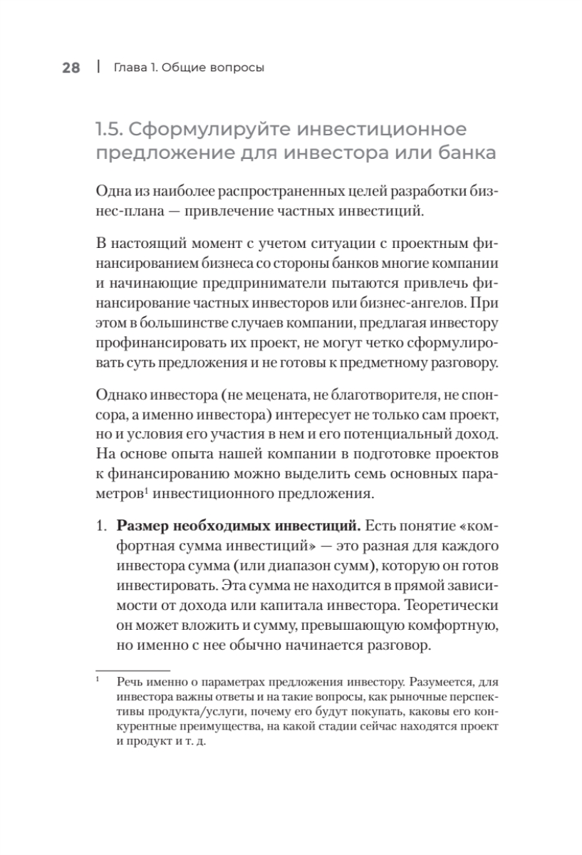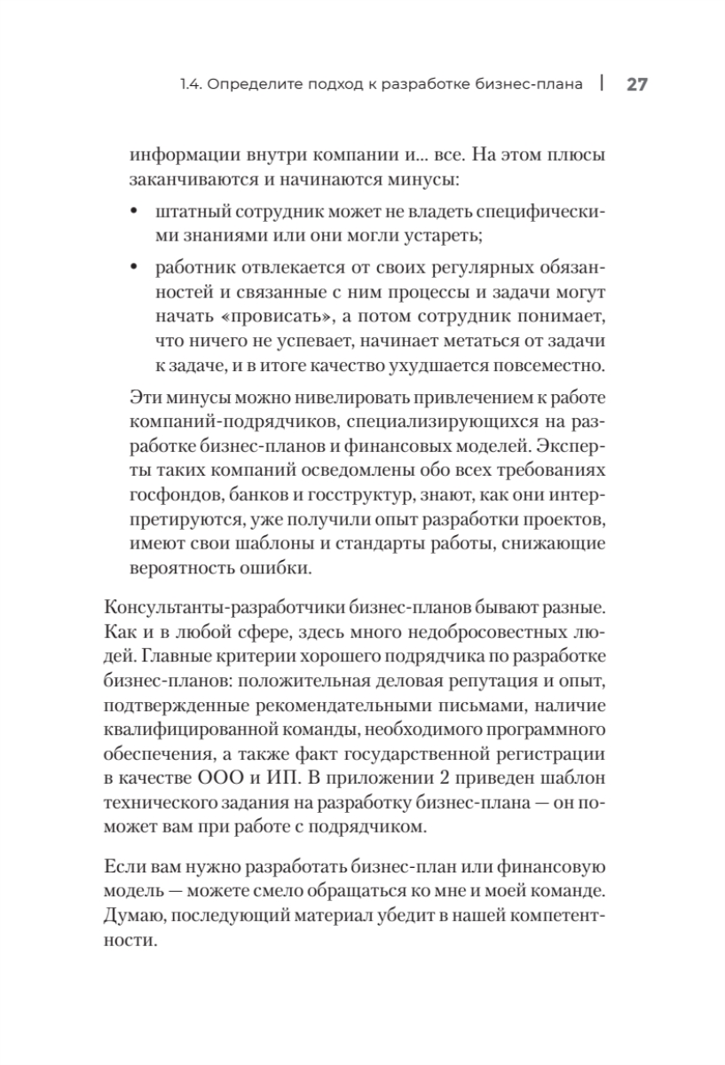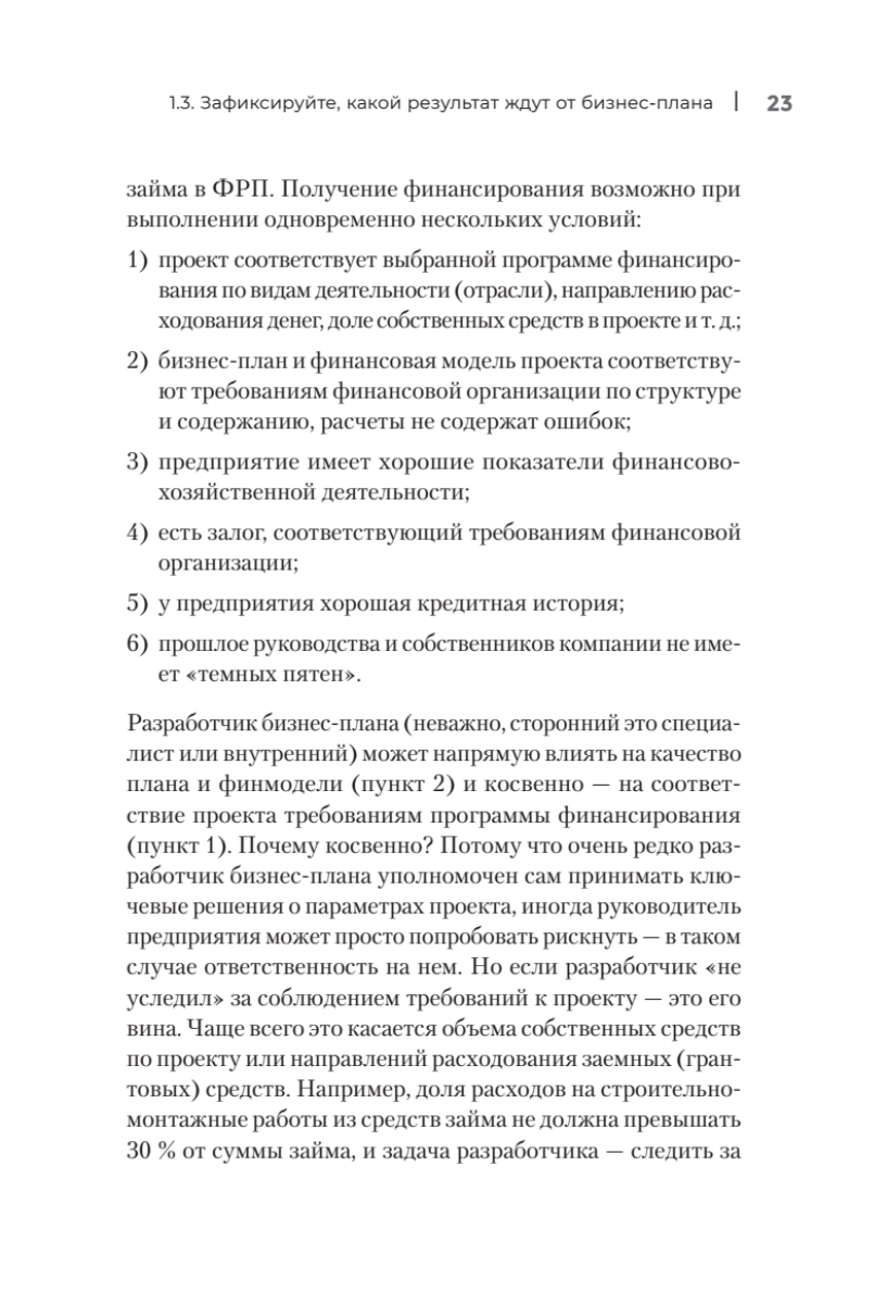 Сборник практических инструментов для создания бизнес-плана.Наличие и качество бизнес-плана напрямую влияют на успех компании, поскольку это эффективный инструмент привлечения финансирования, господдержки и решения иных задач. Бизнес-план — не просто формальный документ, это процесс изучения рынка, финансовых моделей, составления стратегий и графиков. В книге представлены примеры из российской практики, шаблоны, приемы и способы расчетов, которые помогут облегчить планирование для лиц, принимающих решения. Издание поможет разобраться, где взять и как лучше отразить информацию для каждого пункта бизнес-плана. Книга адресована предпринимателям, самозанятым, экономистам и финансистам, которых «нагрузили» работой по подготовке бизнес-плана для привлечения финансирования или господдержки или которым нужно проконтролировать привлеченного специалиста, представителям консалтинговых, аудиторских и аутсорсинговых компаний, а также студентам бизнес-направлений.Валентин Богомолов — владелец и генеральный директор ООО «Сибирская финансовая система», имеет более 18 лет профессиональной практики по разработке и экспертизе бизнес-планов для привлечения финансирования и господдержки. Эксперт федеральных и региональных институтов развития, член Экспертной комиссии Правительства Красноярского края, сопредседатель Красноярского регионального отделения «Деловой России».