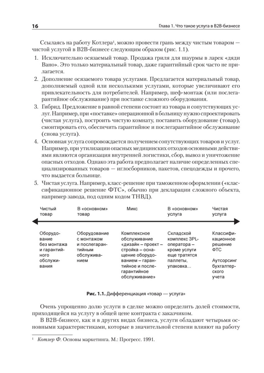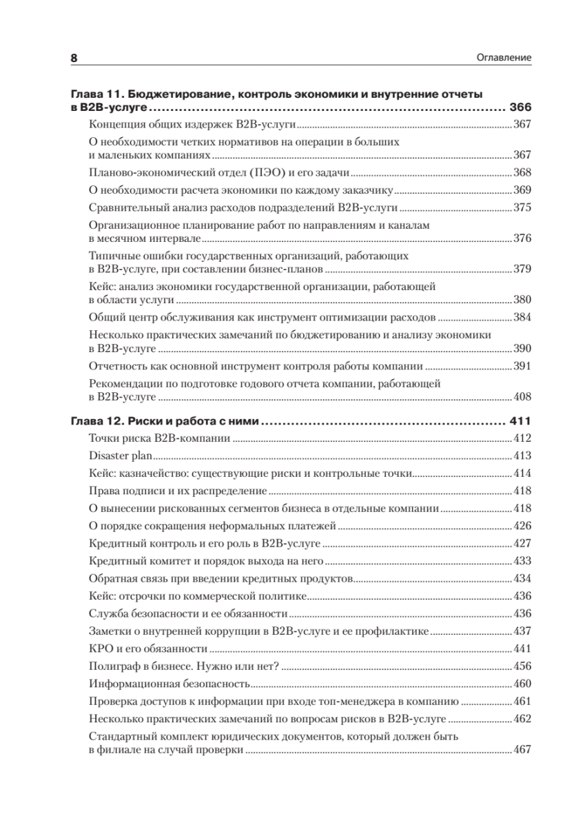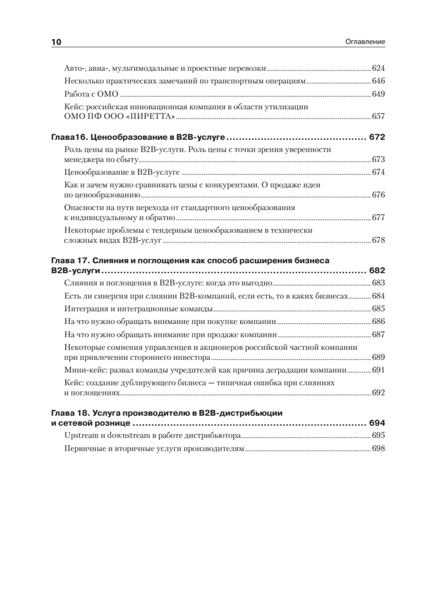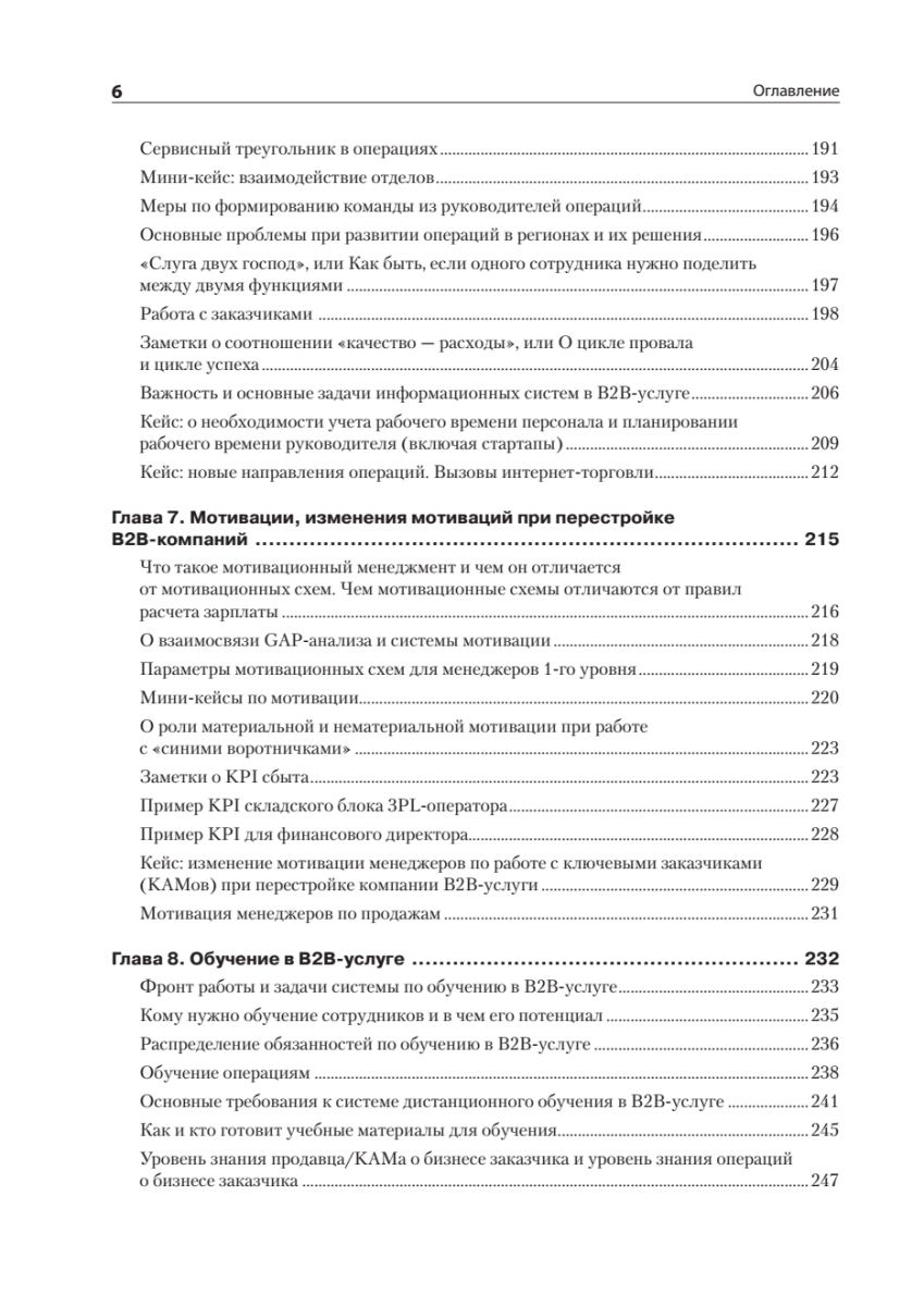Доля бизнеса В2В-услуг, известного как «бизнес для бизнеса», в мировой экономике и экономике России растет каждый год, что связано в первую очередь с усложнением производства и влиянием научно-технического прогресса на появление новых видов деятельности, в том числе в сфере услуг. В то же время управление В2В-услугами, особенно технически сложными, существенно отстает по управлению от других видов бизнеса, и, чтобы не оказаться за бортом, компании вынуждены менять свои подходы к управлению.В этой книге вы найдете комплексные организационные решения и технологии, которые позволят качественно управлять сложными B2B-услугами.Перед вами книга практика, охватывающая все основные блоки управления В2В-услугой:• маркетинг, продажи, работа с заказчиком;• операции и технологии;• имидж, мотивация и обучение;• преобразование компаний;• бюджетирование, контроль экономики, оценка рисков;• слияния и поглощения как развитие сервисной компании.Рассмотренные темы актуальны не только для развития В2В-услуг, но и для многих направлений В2В-дистрибьюции и ритейла.В издании описан личный 20-летний управленческий опыт автора в разных сегментах В2В-услуги: 3PL-логистике, комплексном оснащении объектов HoReCa, медицинских учреждений, уничтожении опасных медицинских отходов и других бизнесов. Приведенные решения и технологии подкреплены десятками проведенных аудитов и консалтинговых проектов в сервисных, розничных, дистрибьюторских и производственных компаниях.Книга подойдет руководителям компаний, работающих в секторе В2В; а также всем тем, кто на стратегическом, тактическом или операционном уровне управляет большим количеством людей в сложных бизнесах.