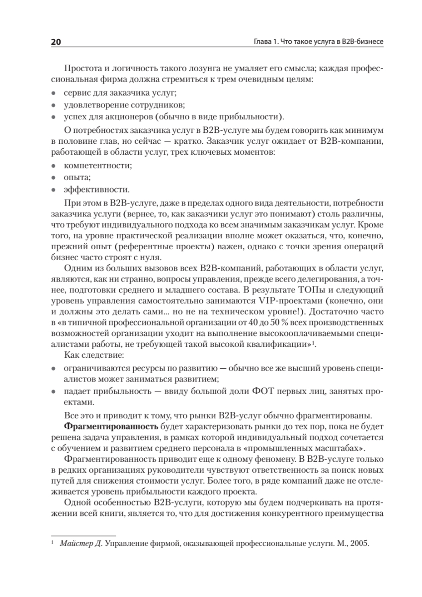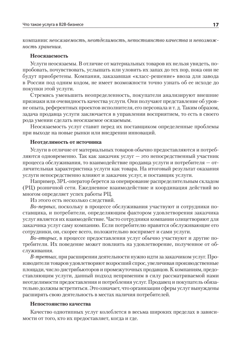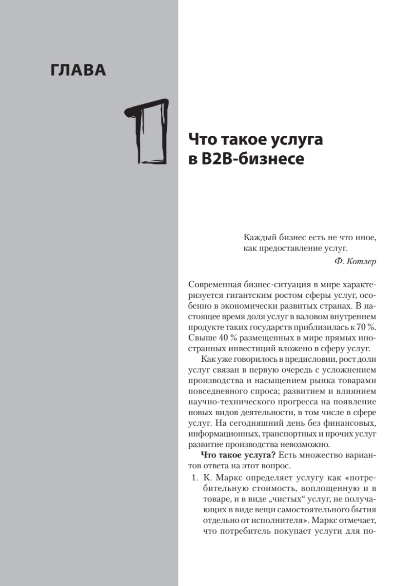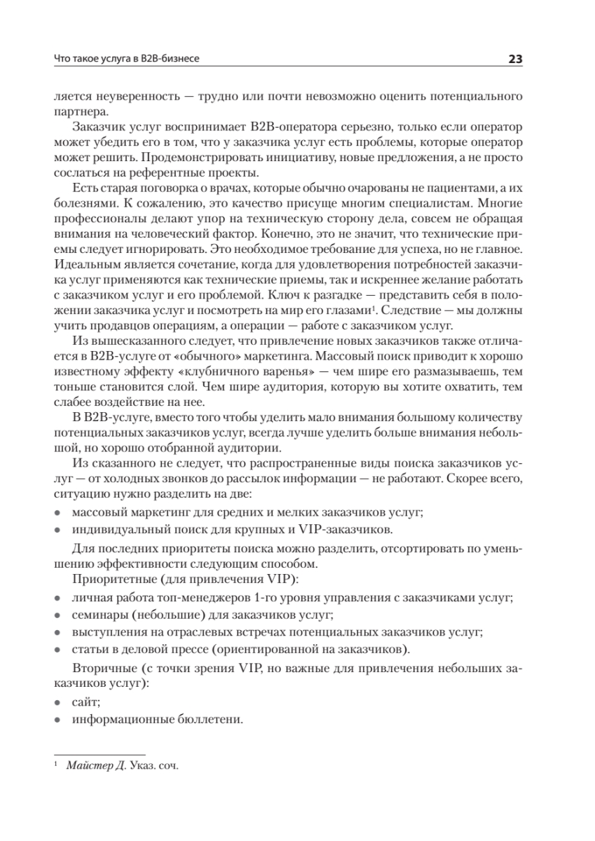 Доля бизнеса В2В-услуг, известного как «бизнес для бизнеса», в мировой экономике и экономике России растет каждый год, что связано в первую очередь с усложнением производства и влиянием научно-технического прогресса на появление новых видов деятельности, в том числе в сфере услуг. В то же время управление В2В-услугами, особенно технически сложными, существенно отстает по управлению от других видов бизнеса, и, чтобы не оказаться за бортом, компании вынуждены менять свои подходы к управлению.В этой книге вы найдете комплексные организационные решения и технологии, которые позволят качественно управлять сложными B2B-услугами.Перед вами книга практика, охватывающая все основные блоки управления В2В-услугой:• маркетинг, продажи, работа с заказчиком;• операции и технологии;• имидж, мотивация и обучение;• преобразование компаний;• бюджетирование, контроль экономики, оценка рисков;• слияния и поглощения как развитие сервисной компании.Рассмотренные темы актуальны не только для развития В2В-услуг, но и для многих направлений В2В-дистрибьюции и ритейла.В издании описан личный 20-летний управленческий опыт автора в разных сегментах В2В-услуги: 3PL-логистике, комплексном оснащении объектов HoReCa, медицинских учреждений, уничтожении опасных медицинских отходов и других бизнесов. Приведенные решения и технологии подкреплены десятками проведенных аудитов и консалтинговых проектов в сервисных, розничных, дистрибьюторских и производственных компаниях.Книга подойдет руководителям компаний, работающих в секторе В2В; а также всем тем, кто на стратегическом, тактическом или операционном уровне управляет большим количеством людей в сложных бизнесах.