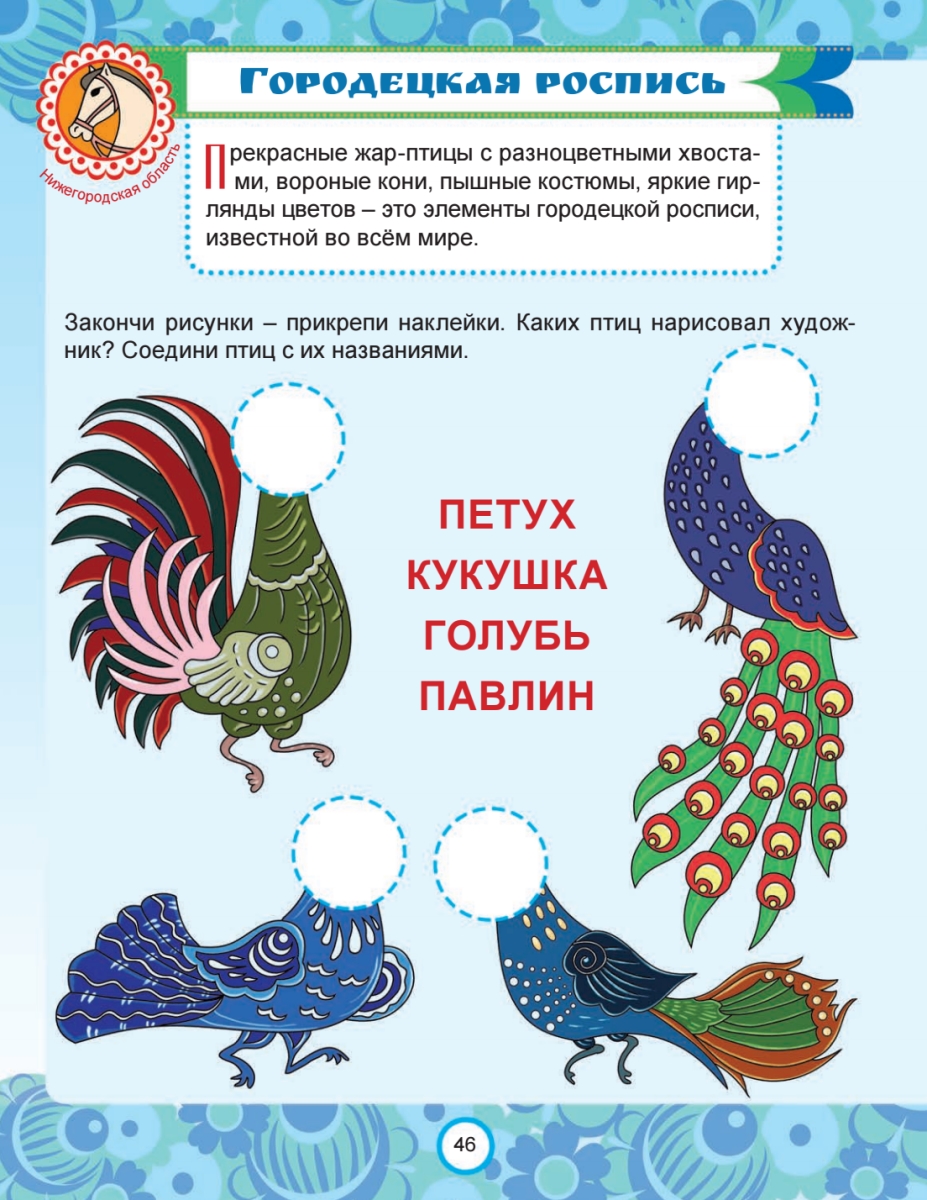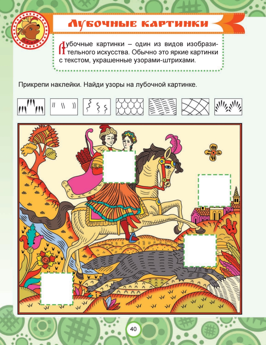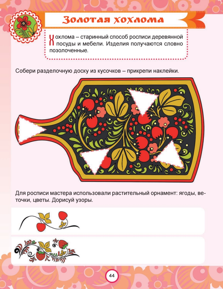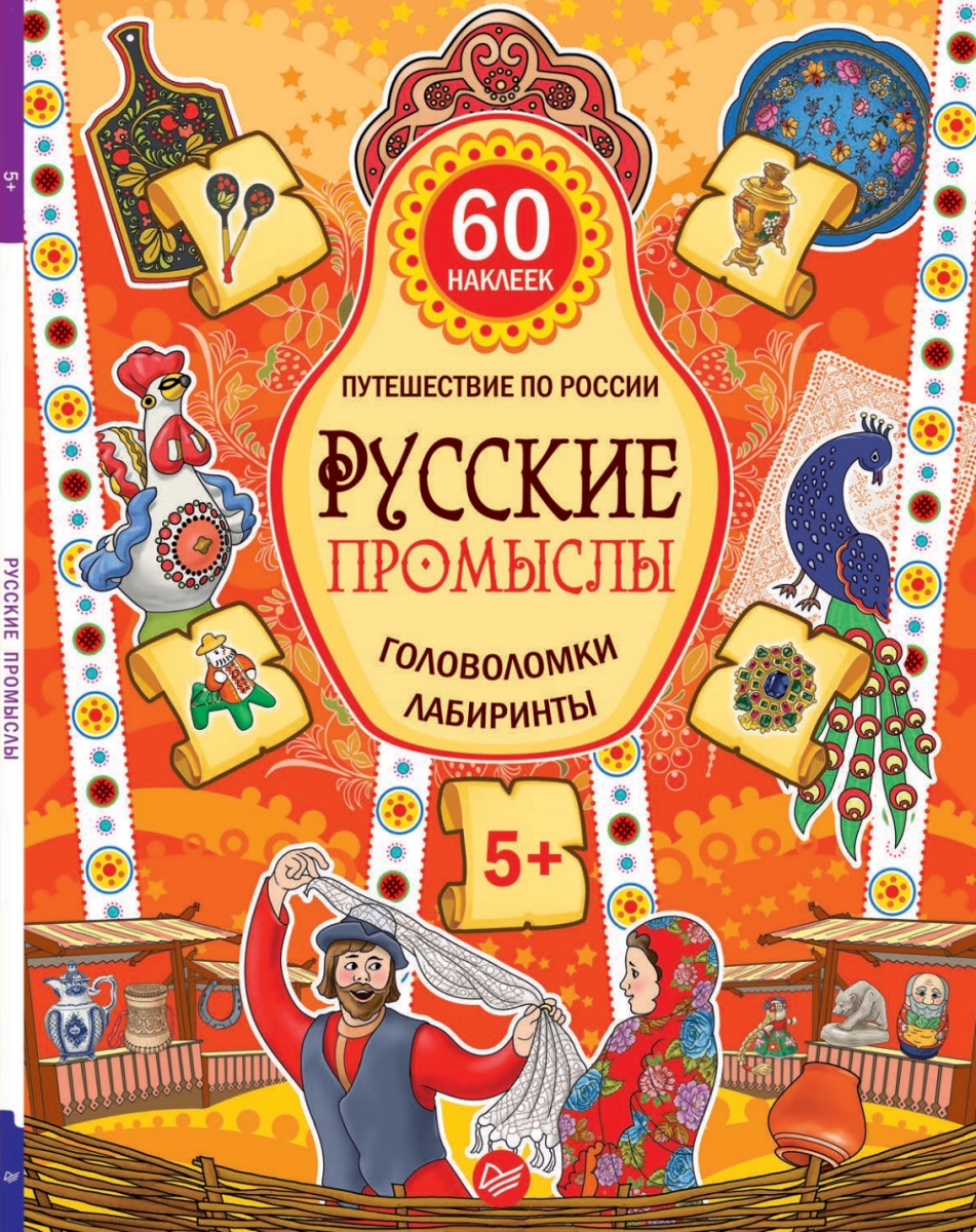 Славится Россия своими мастерами-умельцами. Русская матрёшка, дымковская игрушка, гжель, хохлома, деревянные ложки и расписные самовары, ларцы и шкатулки! Каждый путешественник находит тут сувенир по душе и непременно увозит с собой частичку земли русской. Как из бересты делали посуду на Руси? Из чего плели лапти? Чем отличается паутинка от палантина? Что такое писанка? Решай головоломки, проходи лабиринты, выполняй задания с наклейками. Играй и изучай культуру великой России.