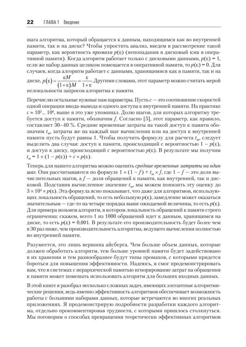 Большинство книг об алгоритмах фокусируются на нотации «О большое» и основных принципах проектирования, однако эта книга предлагает уникальный подход, выводя разработку и анализ на уровень предсказуемой практической эффективности. В ней обсуждаются базовые и классические алгоритмические задачи, возникающие при создании приложений больших данных, для которых демонстрируются элегантные решения постепенно возрастающей сложности. Анализ решений дается в рамках как классической RAM-модели, так и более значимой с практической точки зрения модели с использованием внешней памяти, позволяющей оценивать сложность ввода-вывода.В книге рассматриваются различные типы данных, включая целые числа, строки, деревья и графы, разные алгоритмические инструменты, такие как выборка, сортировка, сжатие данных и поиск по словарям и текстам. Наконец, вы найдете здесь информацию о последних разработках, связанных со сжатыми структурами данных. Алгоритмические решения сопровождаются подробным псевдокодом и множеством работающих примеров, что позволит обогатить инструментарий студентов, исследователей и профессионалов, заинтересованных в результативной и экономичной обработке больших данных.
