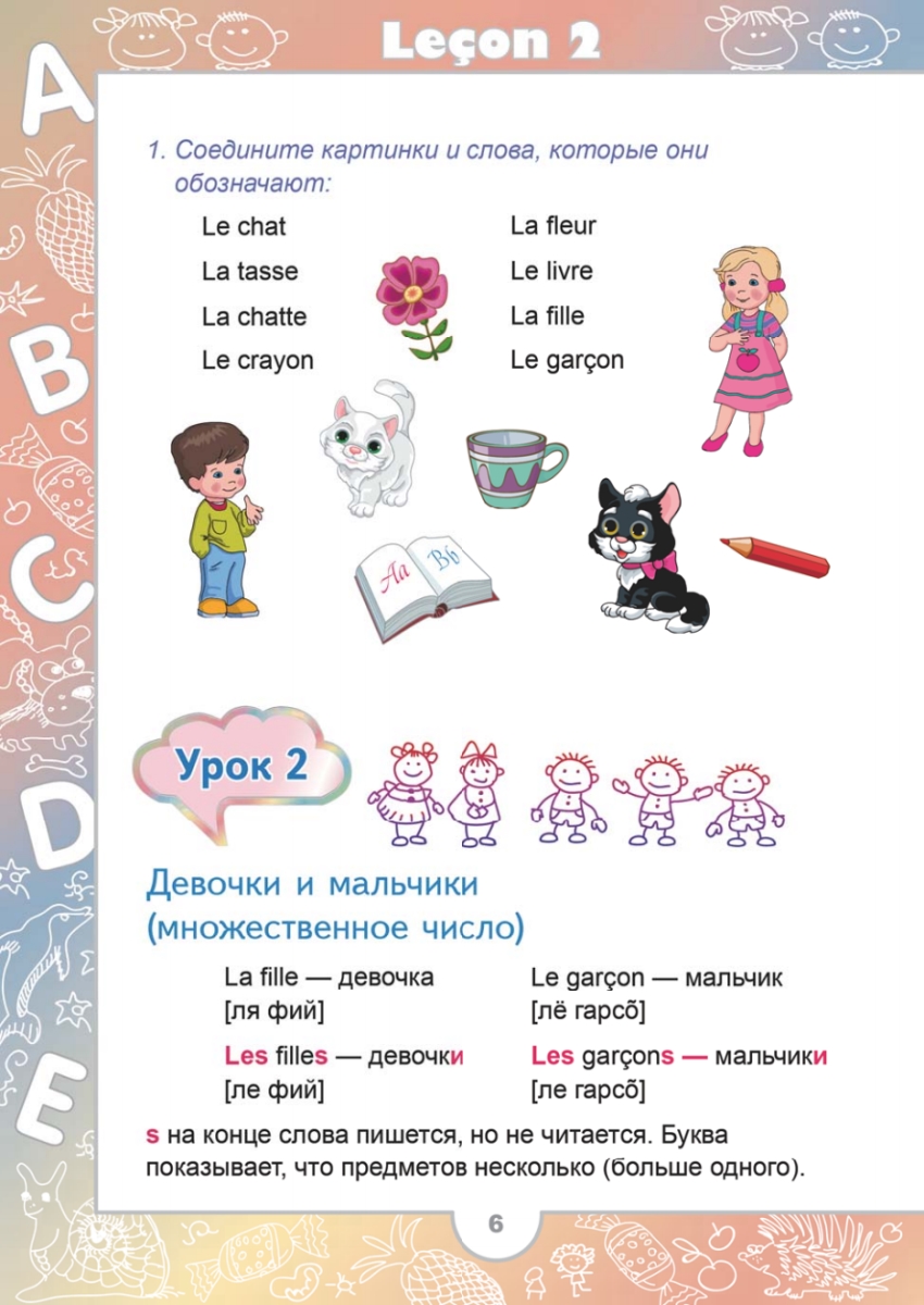 Учебник французского языка Виктории Килеевой создан специально для детей младшего школьного возраста и направлен на быстрое освоение разговорной речи. В простой игровой форме ребенок научится французскому произношению и правилам чтения, познакомится с основами грамматики языка. Уже после первых уроков он сможет составлять предложения из выученных слов. Запись всех уроков на CD поможет ему научиться правильно произносить фразы по-французски, а цветные иллюстрации, игры и ребусы сделают уроки веселее и интереснее.