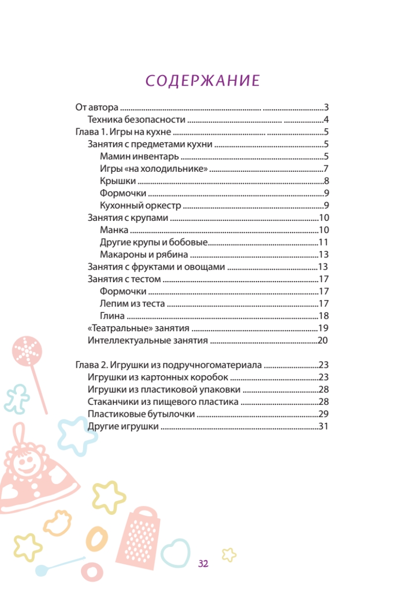 Марина Жуковская — мама двоих малышей-погодок, которая успевает воспитывать детей, заниматься хозяйством, вкусно готовить и успешно работать дизайнером. Вы считаете, что совместить все это невозможно, и уж точно не получится вырастить из ребенка гения, если мама много времени проводит на кухне? Вот и напрасно. На самом деле кухня — настоящая кузница талантов.В этой книге Марина Жуковская предлагает множество вариантов всесторонне развивающих занятий и способов изготовления игрушек из подручных материалов: • картины манкой;• игрушки из соленого теста;• пирамидки из контейнеров;• фрукты-зверюшки;• игрушечные домики из коробок и еще более ста необычных и простых идей для всестороннего развития ребенка… на кухне!Отзывы с vk.com/knigomamiya:Екатерина: Спасибо за превосходное мощнейшее вдохновение!Настасья: «Игрушки из ничего» оказались самыми занимательными в нашем доме, большое спасибо!
