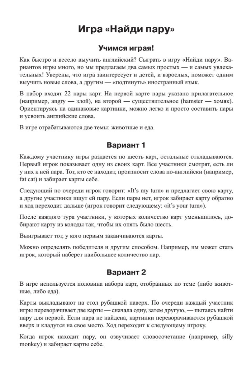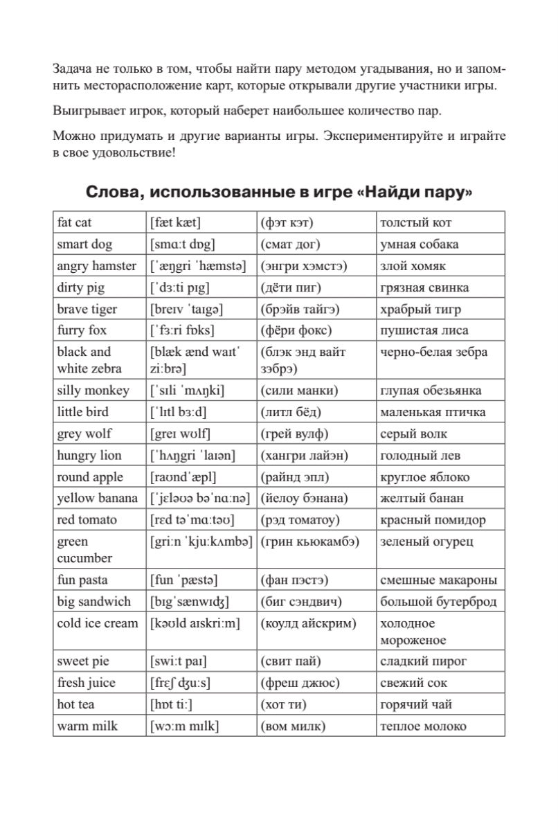 Как быстро и весело выучить английские слова? Сыграть в игру «Найди пару». Выкладывайте карты на стол и ищите для каждой пару — вы легко запомните множество английских слов и словосочетаний. Взрослые играют вместе с детьми!Рисунки: Таня Задорожняя