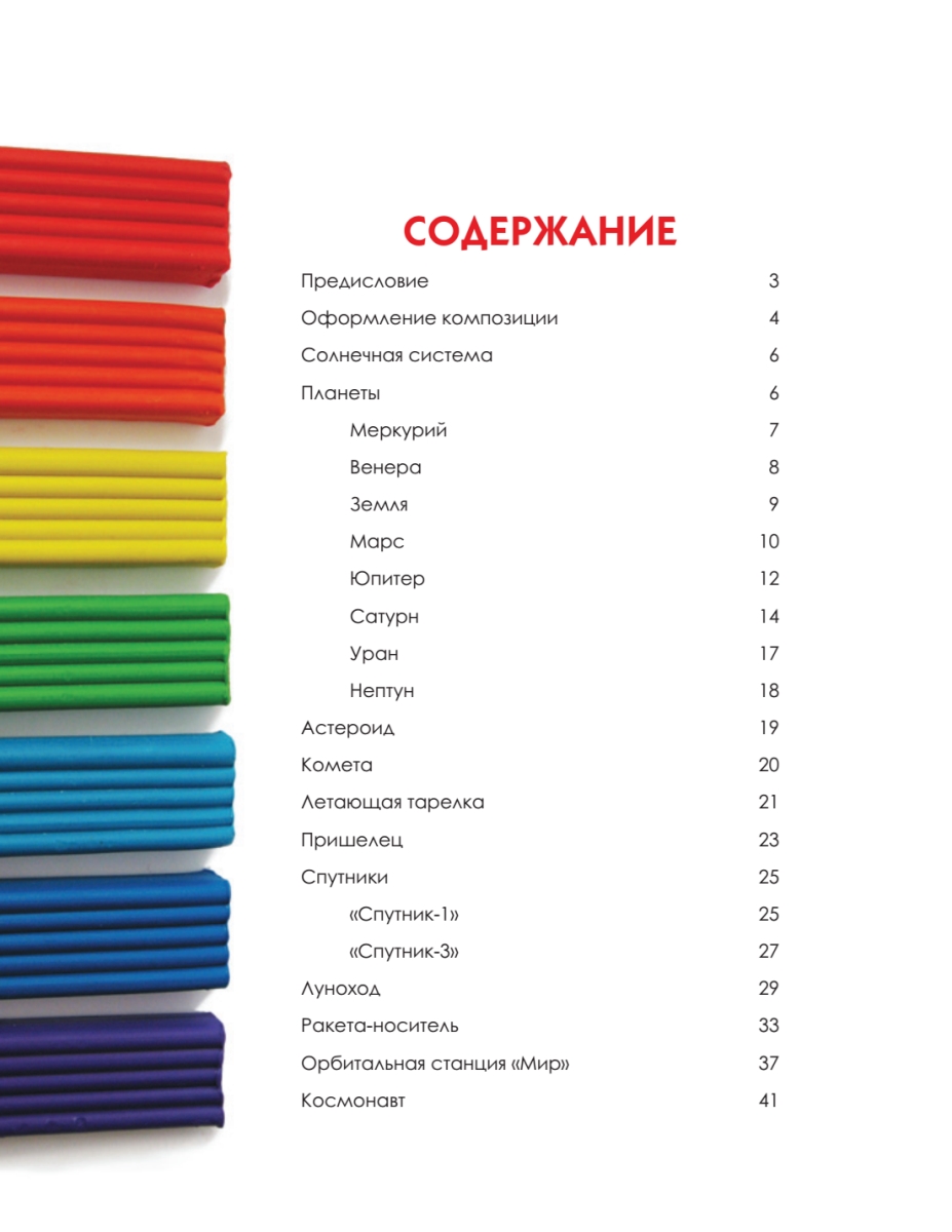 Замечательная книга. Спасибо автору и издательству! Когда покупала думала там только инструкции по лепке. А когда стали с дочерью читать, то оказалось, что там ещё и замечательное описание планет и космических объектов. Дочку (5лет) теперь очень заинтересовала тема космоса и просит ещё более подробно рассказывать и читать про нашу солнечную систему.