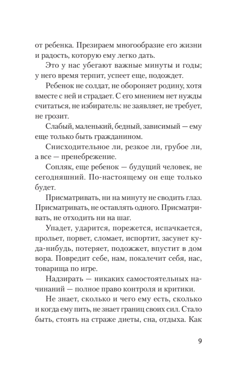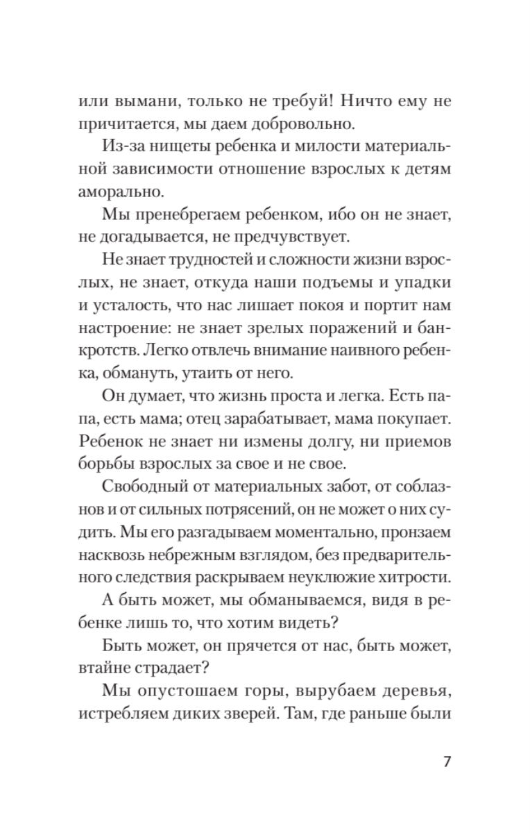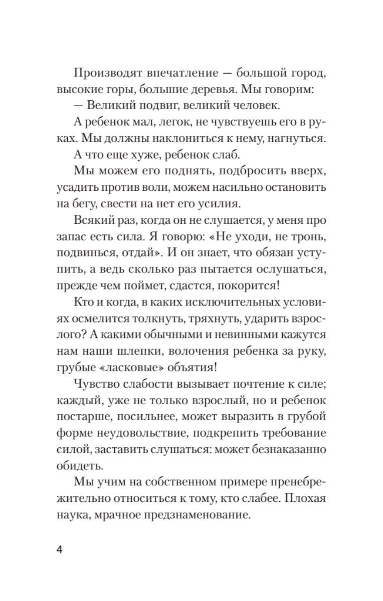 Трогательные, открытые, нежные и глубокие книги Януша Корчака никого не оставляют равнодушными. Прочитанные один раз, они не забываются, а требуют возвращения к себе, обдумывания, заставляют сверять жизнь с теми истинами, которые великий педагог так просто и естественно открыл нам в своих небольших историях. Корчак – один из немногих, кто говорит о воспитании детей без патетики и назидания, как старый друг, знающий сокровенные тайны вашей семьи. Свет доброты и правды, идущий из его книг, согреет вас и ваших детей на многие годы. В издание включены работы Я. Корчака "Право ребенка на уважение", "Правила жизни" и педагогические статьи.