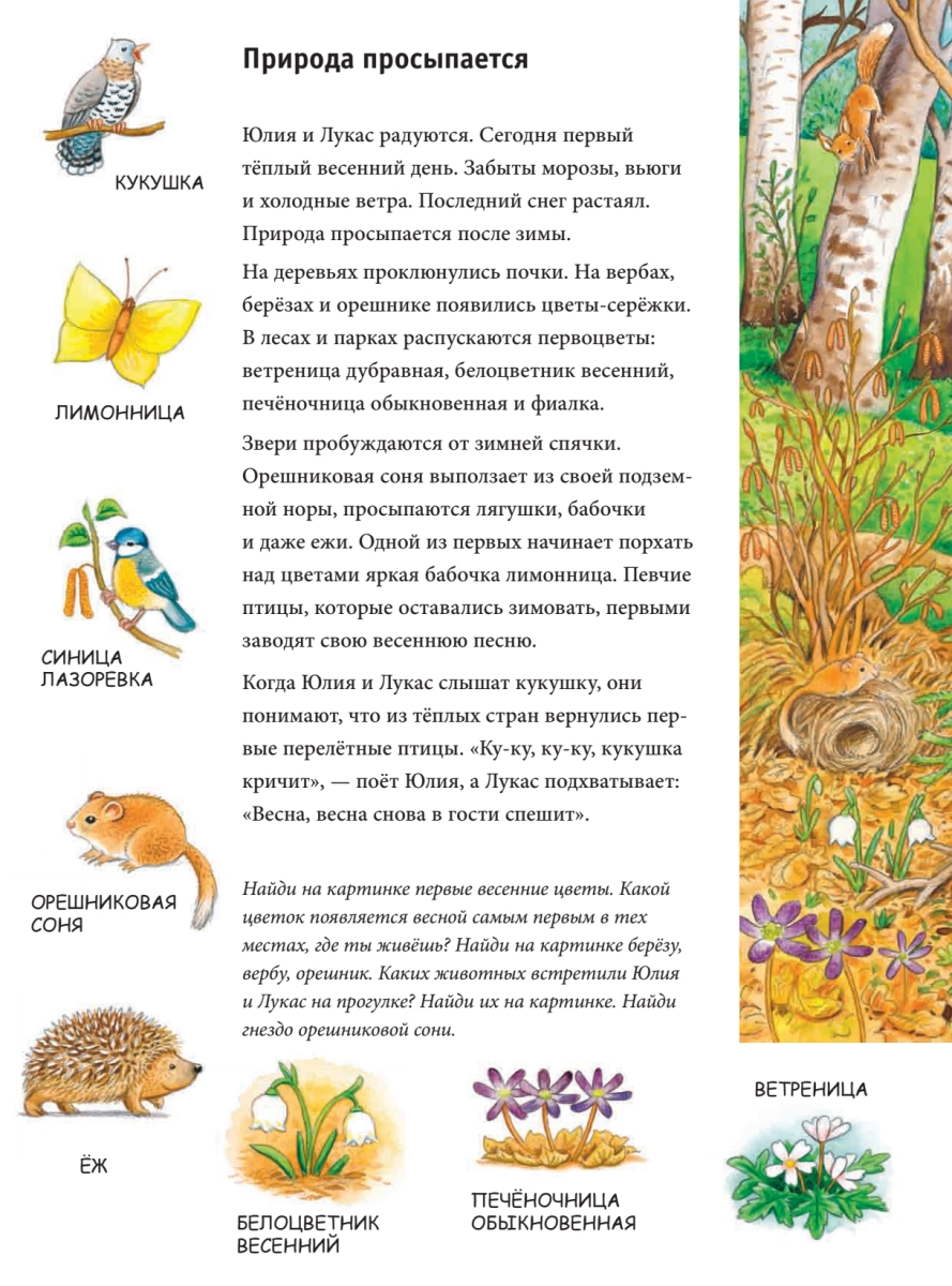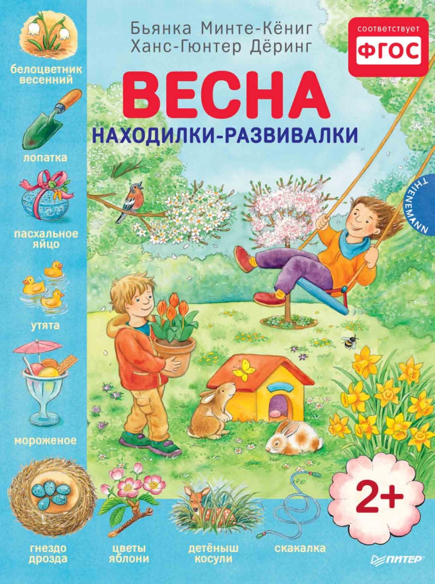 В новой серии «Находилки-развивалки» выходят книги, посвящённые четырём временам года, предназначенные для детей от двух лет. Они познакомят малышей с окружающим миром, помогут развить детскую наблюдательность, внимание и любознательность.Во второй книге серии — «Весна. Находилки-развивалки» — дети познакомятся с весенними явлениями в природе, узнают о весенних праздниках и традициях России и Германии, смогут самостоятельно вырастить гиацинт, голубой тюльпан и провести интереснейшие опыты и эксперименты. Возьмите книгу на прогулку. Она поможет вам узнать много нового: вы сможете рассказать ребёнку о первых весенних цветах, показать гнёзда птиц и даже определить, кому они принадлежат. А ещё с помощью этой книжки можно побывать на весенней ферме, в весеннем лесу, на даче.Книга предназначена для семейного чтения и для работы в ДОУ. Развивает внимательность, зрительную память и прекрасно готовит ребёнка к школе.Текст этой книги написала известная немецкая писательница Бьянка Минте-Кёниг. Она родилась в Берлине, а сейчас живет в собственном доме недалеко от Брауншвейга и природного заповедника. Несмотря на то, что она самый настоящий профессор педагогики средств массовой информации и методики преподавания литературы, Бьянка работает в детском театре и руководит различными проектами для детских садов и театральных обществ. Дополнительную информацию об авторе можно узнать на её страничке www.biankaminte-koenig.deРисунки нарисовал известный немецкий художник Ханс-Гюнтер Дёринг. С 1991 года он иллюстрирует книги для детей и школьников. Больше всего он любит рисовать природу. В 2005 году художник был отмечен премией за вклад в детскую и юношескую литературу об окружающей среде. Дополнительную информацию об авторе можно найти на его страничке www.hansguentherdoering.de