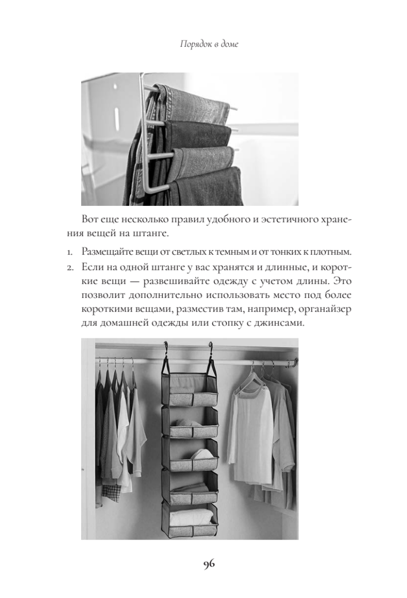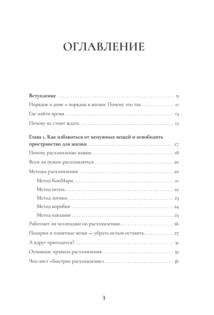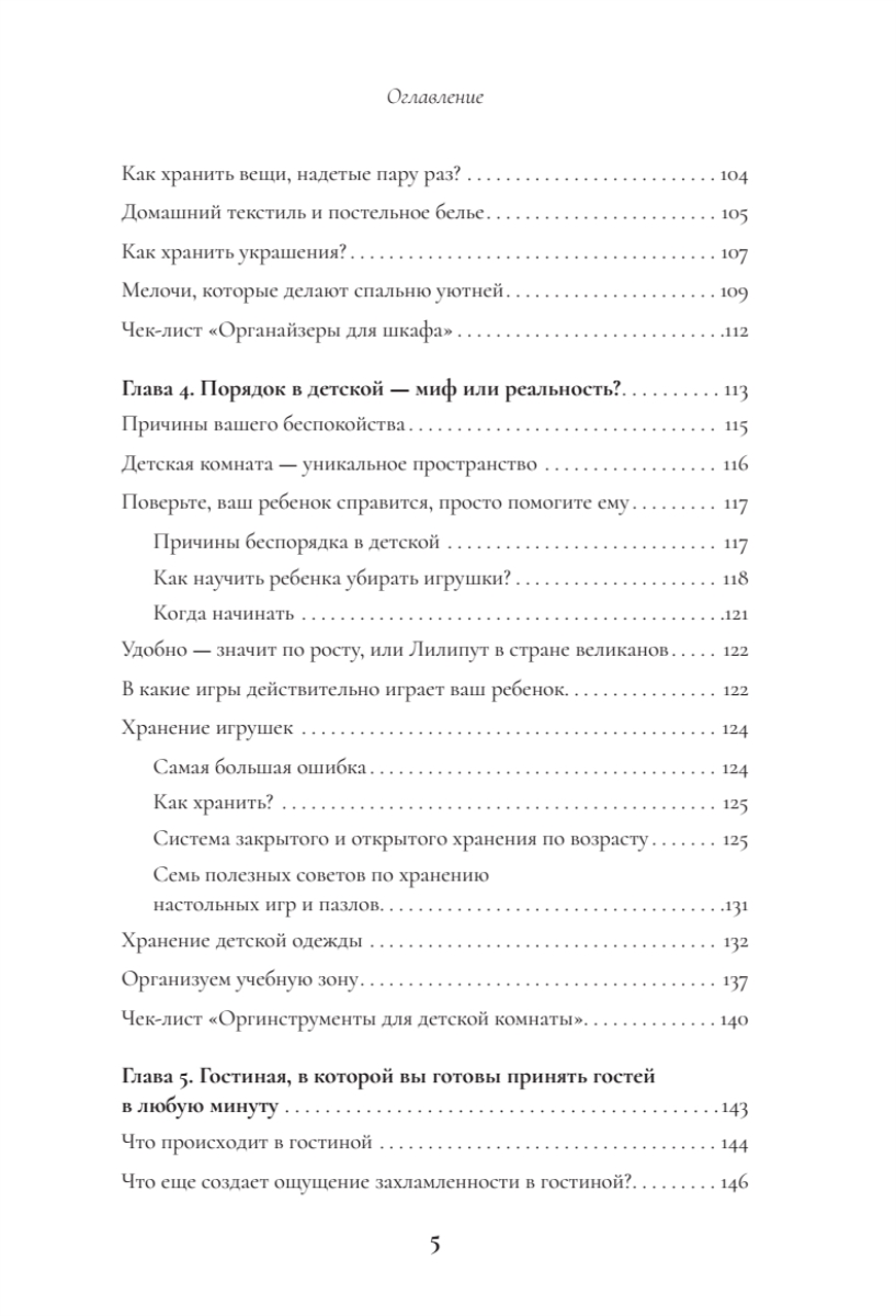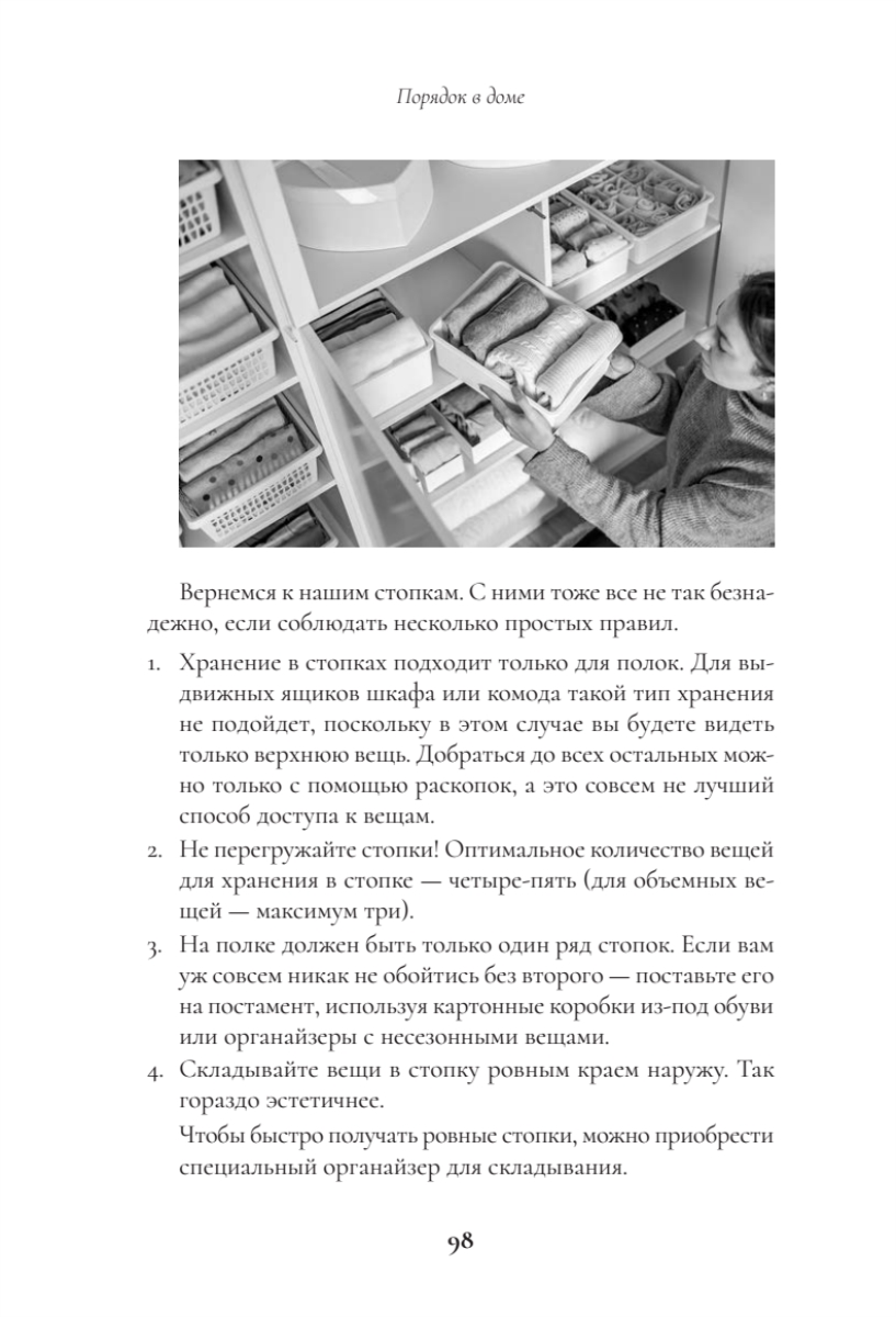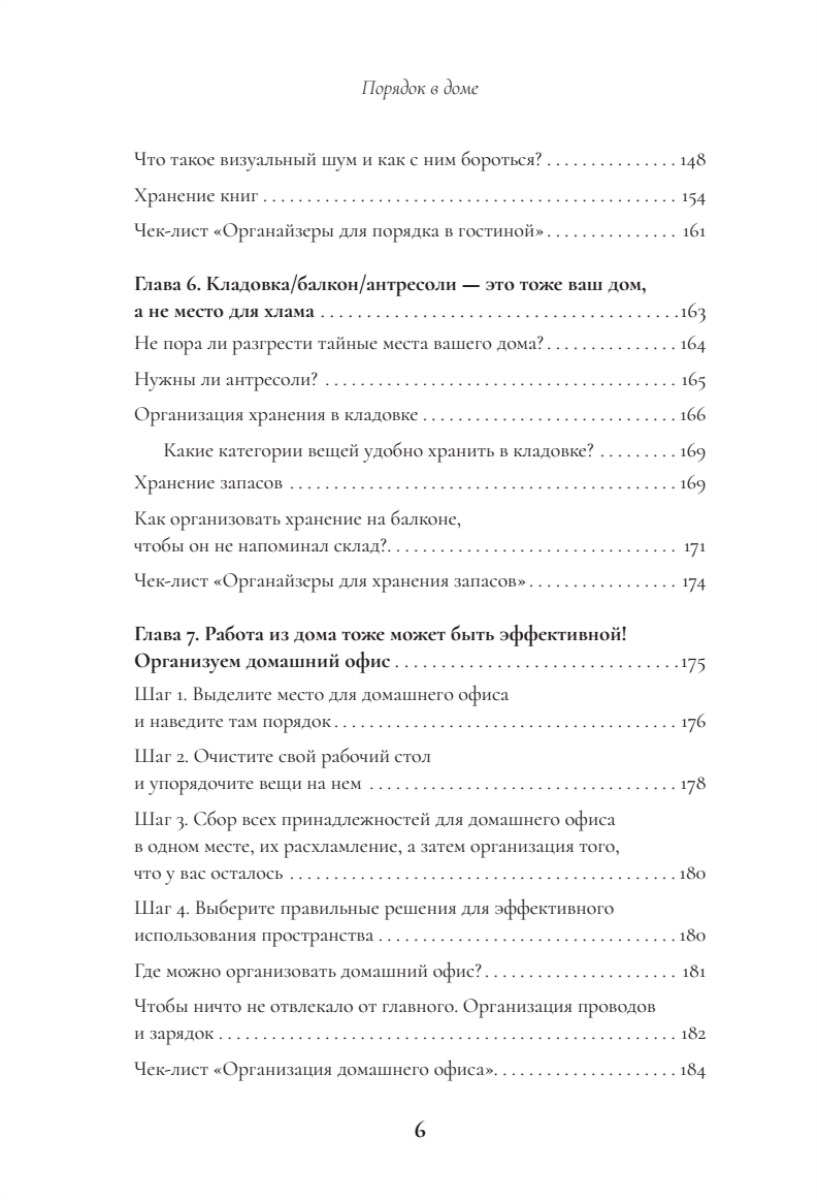 Поддержание порядка. Книга не только помогает навести порядок, но и учит полезным привычкам (правило “вход-выход”, календарь уборки, метод 15 минут), чтобы сохранить результат надолго.