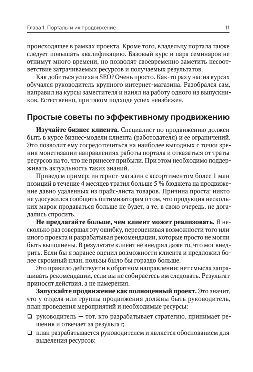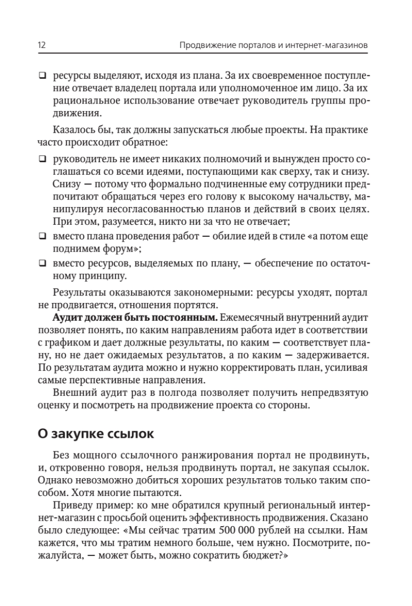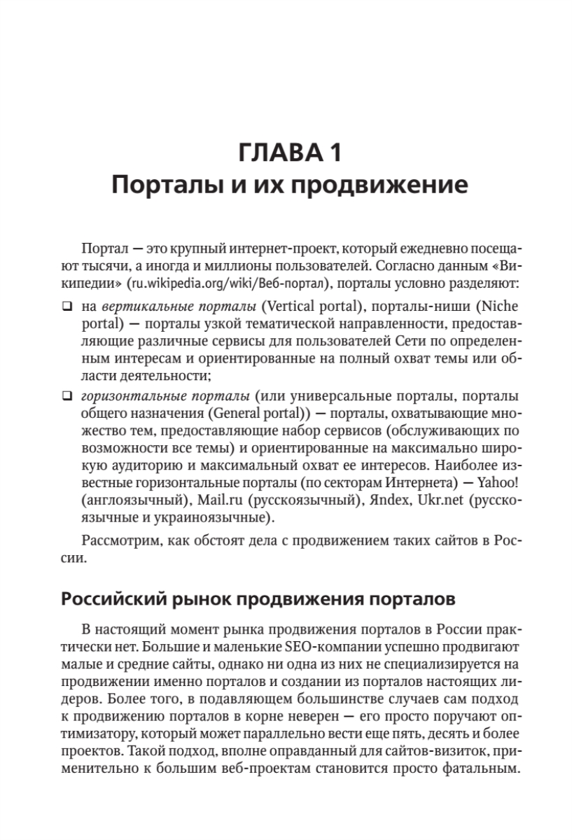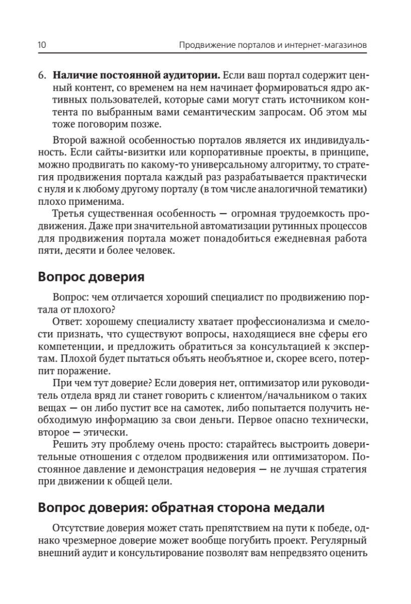 Эта книга о том, как продвигать большие сложные проекты. Здесь рассмотрено SEO в самом широком понимании, включая не только информационный поиск, но также PR, маркетинг и работу с контентом вообще. Подробно описываются технологии и подходы, которые непопулярны на рынке. Она о том, как продвигать сайт командой, провести исследование, разработать стратегию и внедрить разработанные технологии в работу. Книга будет интересна настоящим и будущим владельцам или руководителям больших интернет-магазинов и порталов, руководителям отделов продвижения, специалистам, а так же всем кто интересуется SEO.
