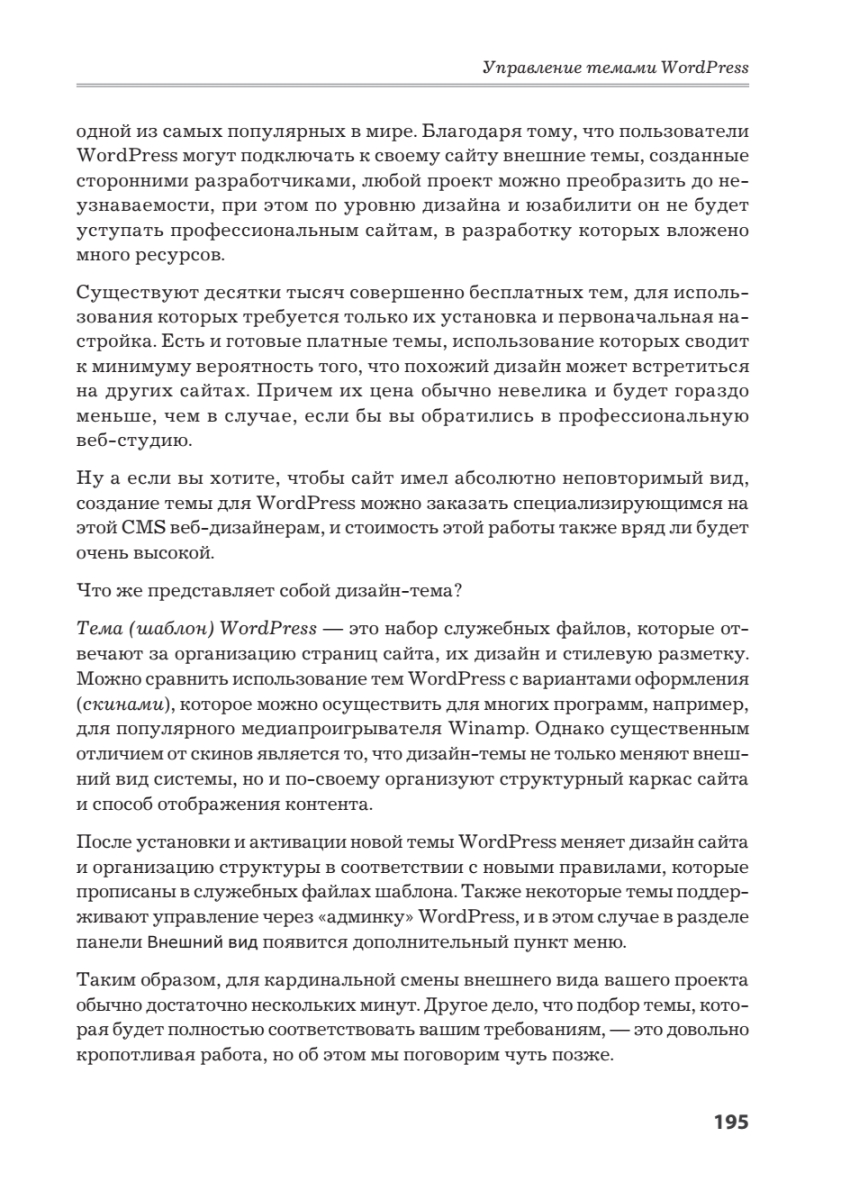 С помощью этой книги вы сможете самостоятельно создать собственный сайт на базе популярной системы WordPress 3.5. Использование CMS WordPress не потребует от вас знания языков программирования и навыков интернет-разработок, что делает веб-строительство доступным для всех пользователей Сети. В книге рассмотрены такие вопросы, как регистрация доменного имени и приобретение хостинга, установка и первичная настройка WordPress, подбор дизайна и его совершенствование, функциональная настройка сайта и установка дополнительных модулей, публикация новых материалов и управление контентом сайта. Кроме того, здесь освещаются базовые принципы «раскрутки» вашего сайта и его продвижения в поисковых системах, а также некоторые наиболее распространенные способы заработка на интернет-проектах.Существует сайт поддержки книги www.wordpressbook.ru, на котором вы найдете все необходимые для работы файлы, а также дополнительную информацию, которая поможет усовершенствовать ваш сайт на WordPress.