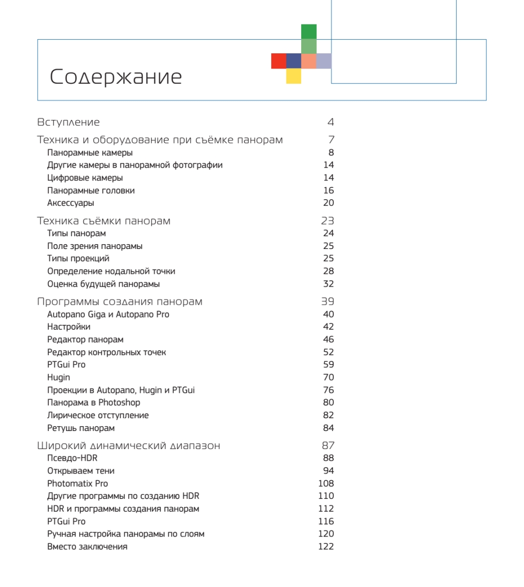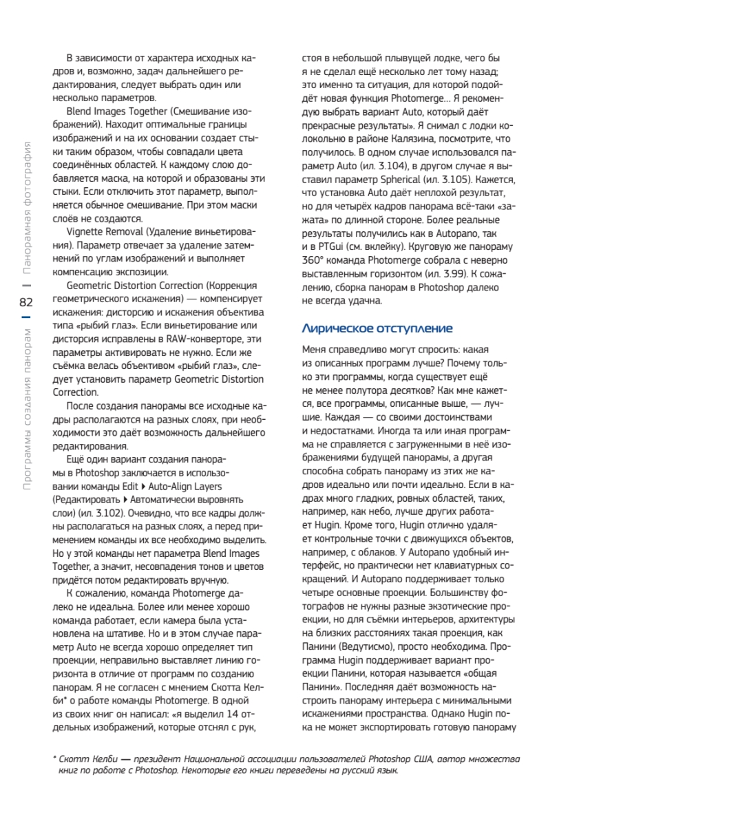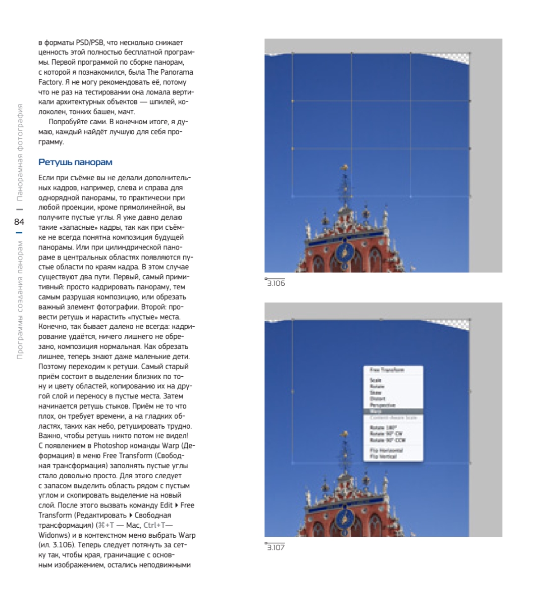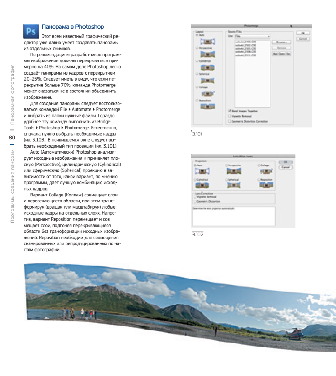 Новая книга известного московского фотографа Александра Ефремова, члена Гильдии рекламных фотографов, Европейской ассоциации профессиональных фотографов и Союза фотохудожников России, посвящена современной панорамной фотографии.Описаны различные методы создания панорамных фотографий; рассказано как о специальных камерах, так и о стандартных зеркальных, которые используются в панорамной фотографии; рассмотрены специальные панорамные головки и показано, как собрать панорамную головку своими руками из готовых фирменных узлов. Отдельный раздел книги посвящён работе в специальных программах по созданию панорам. В книге описывается техника HDR и использование этой техники в панорамной фотографии.С помощью этого издания читатель сможет освоить практические приемы создания панорамных фотографий, которые используют в своей работе профессиональные фотографы.