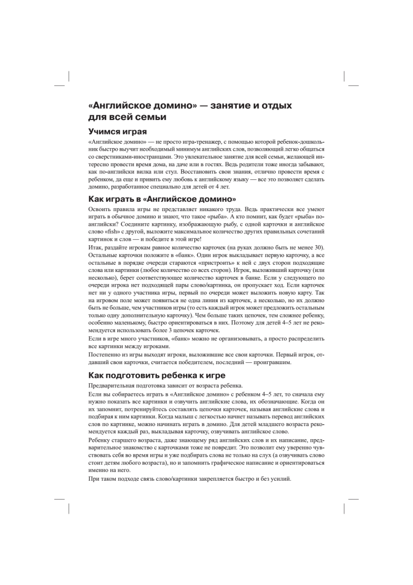 Как ребенку легко и весело выучить английский язык? Конечно, в игре! Играя в "Английское домино", ребенок быстро запомнит и научится произносить основные слова английского языка. Карточки не только способствуют визуальному запоминанию предметов, но и развивают диалоговую речь и коммуникационные навыки.