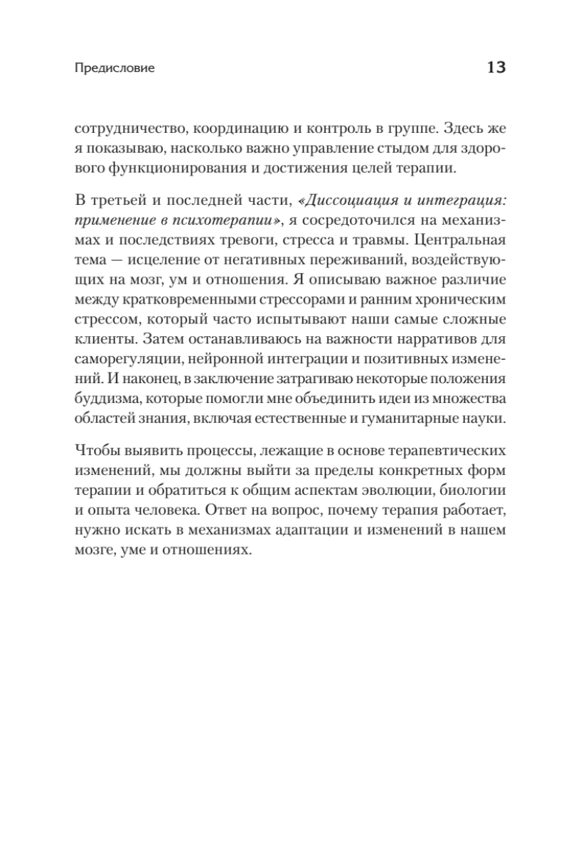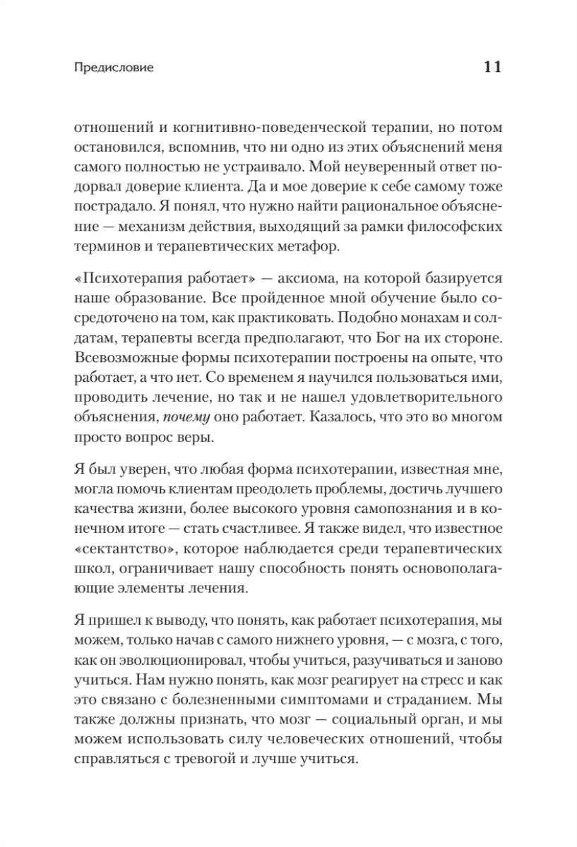 Психотерапия помогает — это аксиома. Но почему она помогает? Дело в «правильном методе», таланте терапевта или вере клиента? Луис Козолино, один из ведущих американских психологов и специалистов по нейробиологии, предлагает убедительный ответ: понять, как работает психотерапия, можно только начав с мозга — органа, который эволюционировал, чтобы уметь учиться, разучиваться и заново учиться. Именно эти процессы лежат в основе устойчивых психологических изменений. Козолино показывает, что разные направления психотерапии, при всей их внешней несхожести, опираются на общие механизмы: эволюцию, биологию и опыт. Книга помогает увидеть психотерапию не как набор техник, а как естественный, основанный на работе мозга процесс исцеления и роста.Эта книга для тех, кто:- уже проходил психотерапию и хочет понять, что именно с ним произошло - думает, стоит ли начинать терапию, и ищет рациональное объяснение, а не только отзывы и обещания - работает психотерапевтом, психологом или коучем — и хочет лучше понимать механизмы изменений - интересуется нейробиологией и хочет знать, как происходит глубокая трансформацияПока нет отзывов