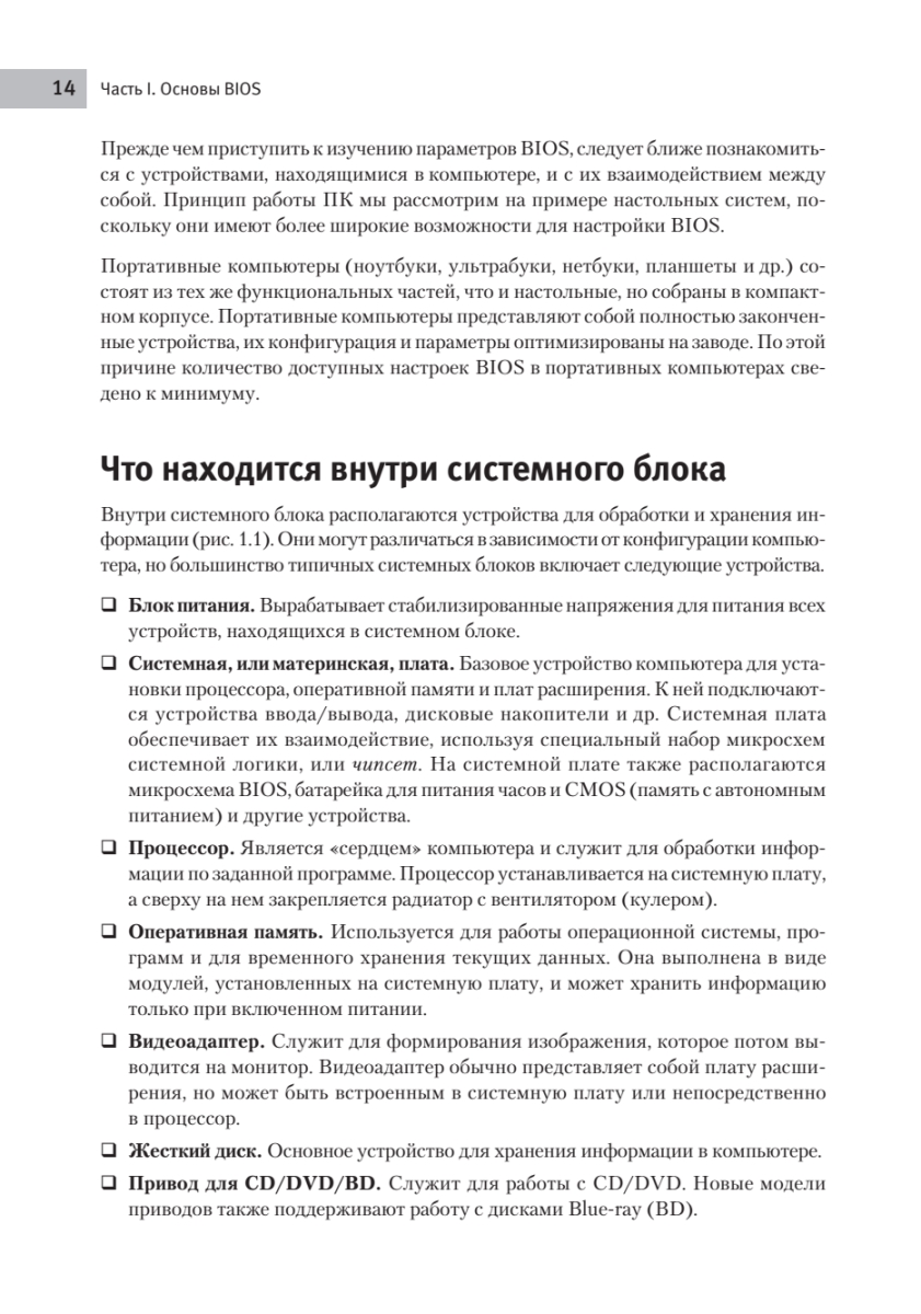 Данная книга предназначена для тех, кто имеет общее представление об устройстве и работе компьютера и хочет научиться настраивать ПК самостоятельно с помощью BIOS. В новом издании вы познакомитесь с принципами работы и параметрами базовой системы ввода-вывода (BIOS), включая новейшую версию UEFI BIOS с графическим интерфейсом. На практических примерах вы узнаете множество приемов конфигурирования, тонкой настройки, диагностики, устранения неполадок системы и разгона компьютера с помощью изменения параметров BIOS.