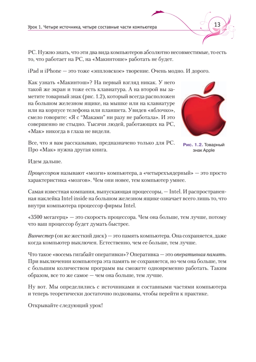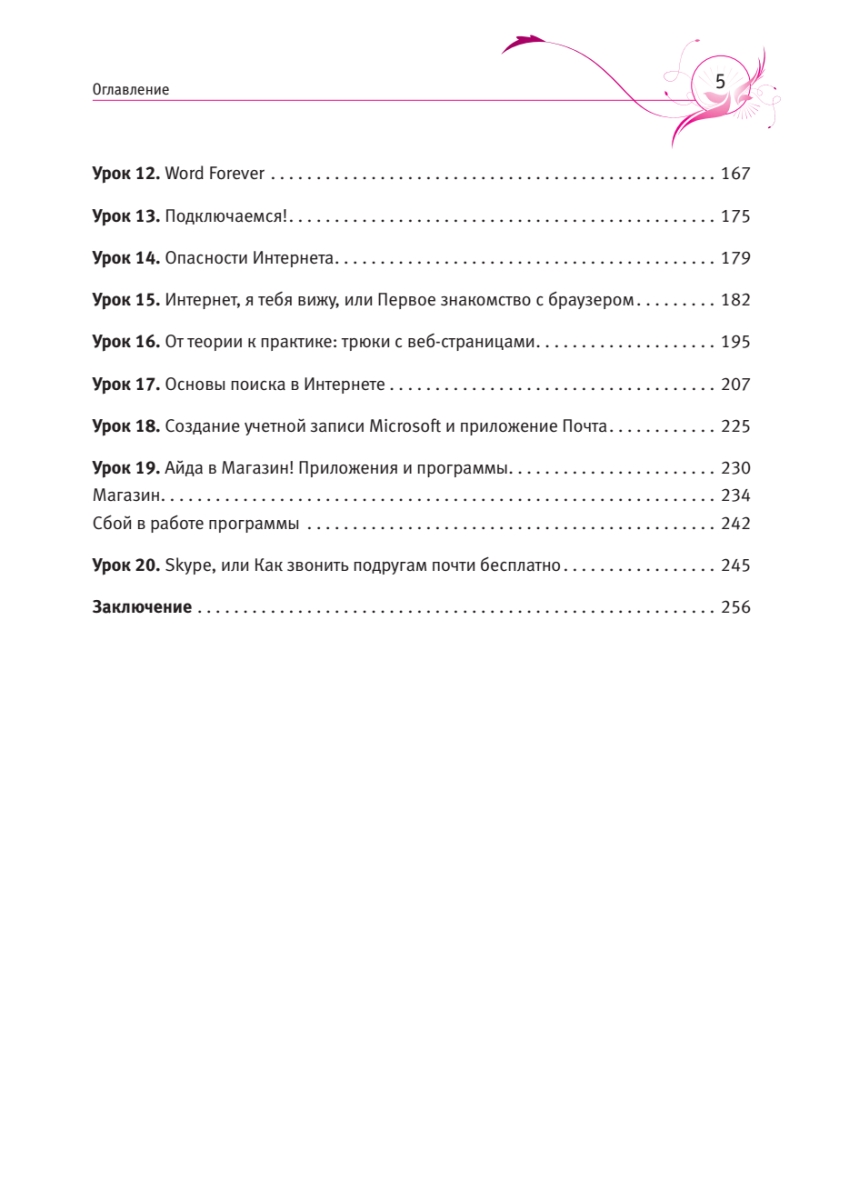 Книга написана специально для женщин в легкой, доступной форме. В ней рассказано, как включить и выключить компьютер, как работать с файлами и папками, описаны возможности нового пользовательского интерфейса Windows, популярная программа Microsoft Word 2013, рассмотрено, что такое Интернет и как в него попасть, как можно общаться с помощью Интернета и работать с электронной почтой. Книга написана по новой операционной системе — Windows 8! Самоучитель будет полезен не только женщинам, но и мужчинам, которые помогают окружающим их дамам в нелегком (на первый взгляд) деле освоения компьютера.