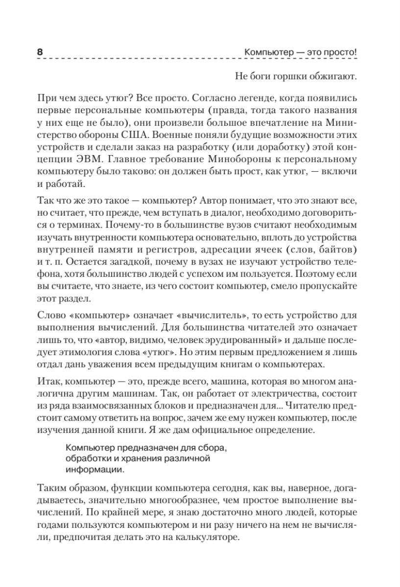 Компьютер является неотъемлемой частью современного мира. Можно ли освоить компьютер за несколько дней? Автор данной книги доказывает, что в этом нет ничего сложного. Прочитав ее, вы будете легко обращаться с компьютером: изучите возможности программ Word и Excel, научитесь пользоваться Интернетом и почтовыми программами. Книга написана по принципу «просто и ничего лишнего», благодаря чему доступна для самого широкого круга читателей.