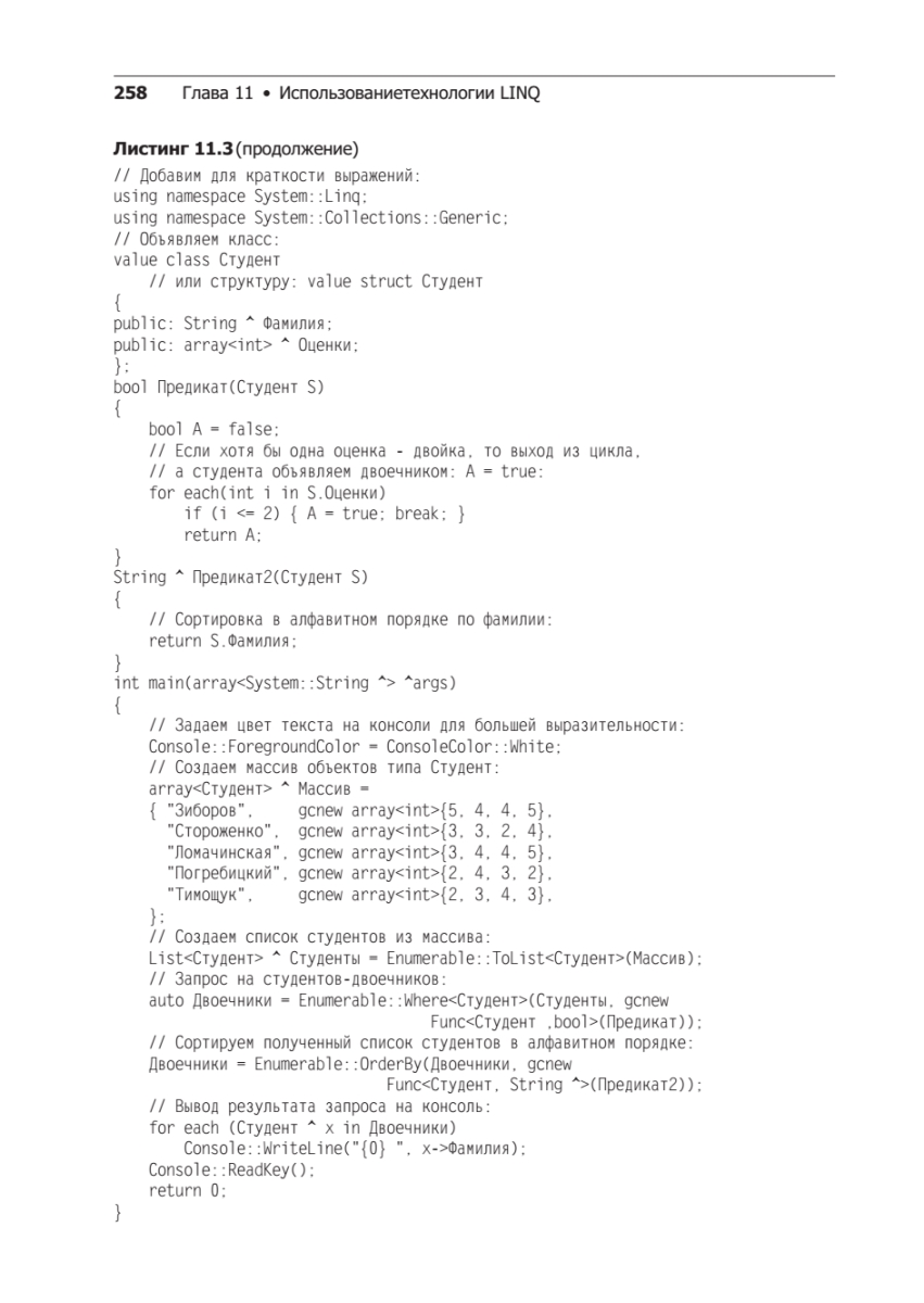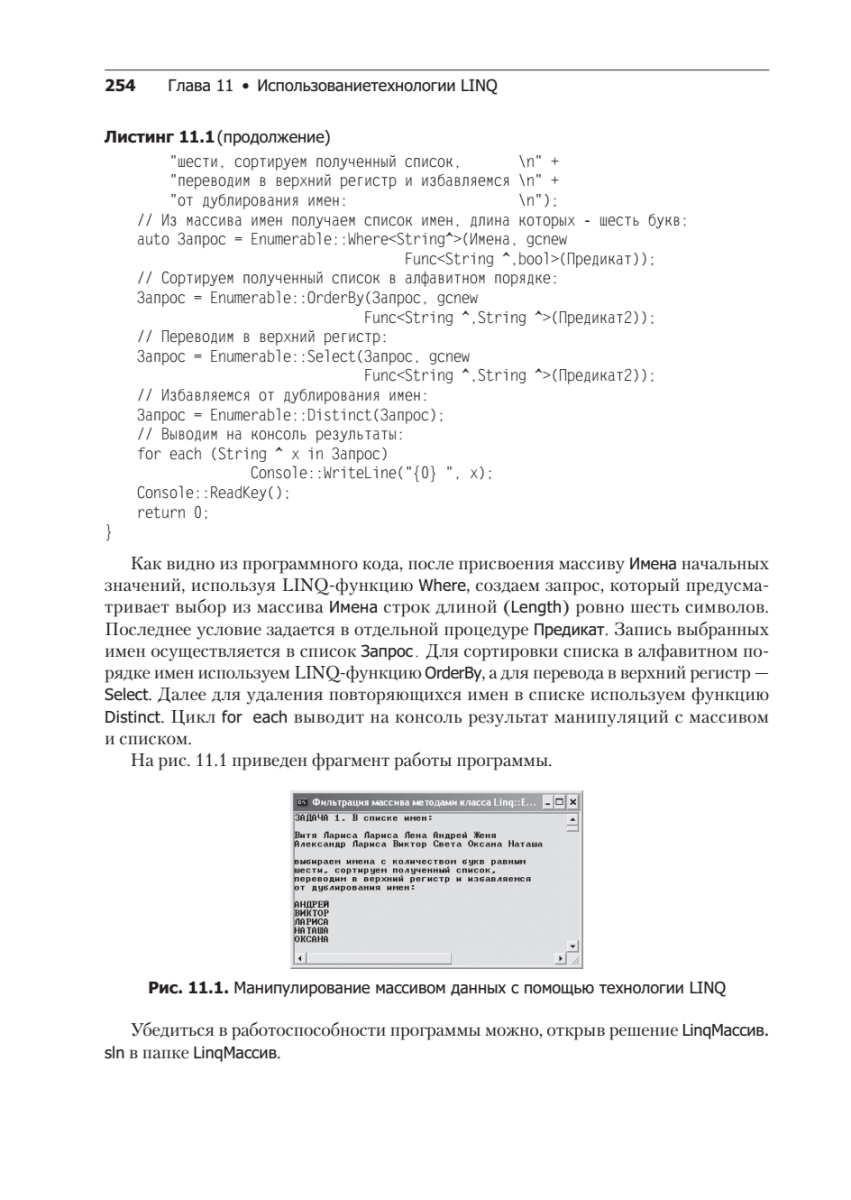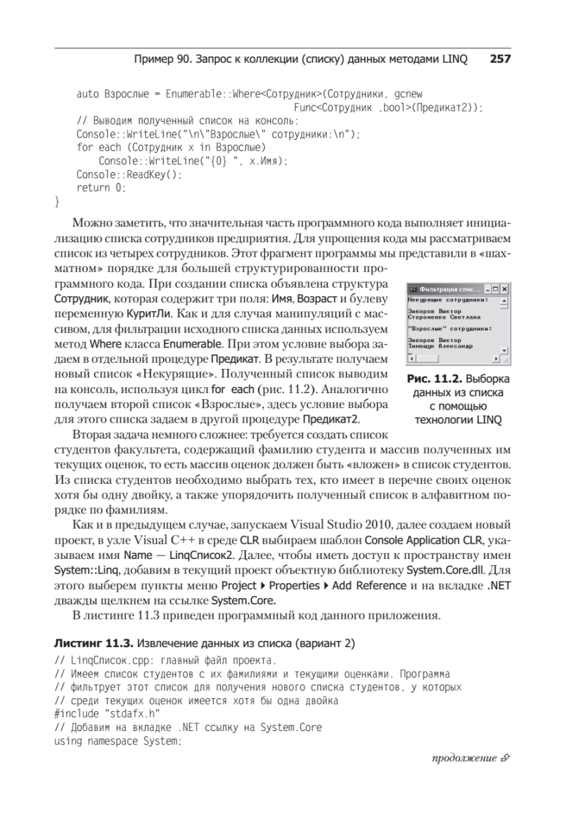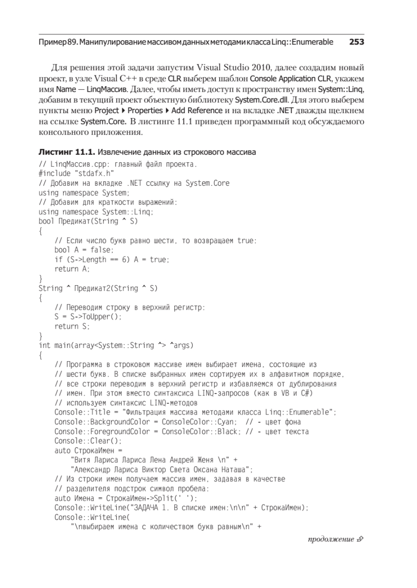 Книга посвящена программированию в среде Visual Studio 2010 на языке программирования C++/CLI. Автор выделил наиболее типичные и актуальные задачи, которые обычно стоят перед программистами, и представил их готовые решения. Разобрано более сотни конкретных примеров и алгоритмов. Рассмотрены программы с экранной формой и элементами управления в форме. Приведены примеры чтения и записи файлов в долговременную память. Описана работа с графикой и буфером обмена. Приведено несколько подходов к выводу диаграмм. Рассмотрены манипуляции табличными данными, в том числе организация связанных таблиц. Показан принцип использования элемента управления WebBrowser для отображения различных данных, а также для программного заполнения веб-форм. Обсуждены примеры программирования с применением функций объектных библиотек систем MS Excel, MS Word, AutoCAD и MATLAB. Описано создание PDF-файлов. Разобраны вопросы обработки баз данных SQL Server и MS Access с помощью технологии ADO.NET. Представлено много различных авторских оригинальных решений задач программирования, которых читатель не сможет найти в интернете. Издание предназначено для начинающих программистов, программистов среднего уровня, а также для программистов, имеющих опыт разработки на других языках и желающих ускоренными темпами освоить новый для себя язык MS Visual C++/CLI.