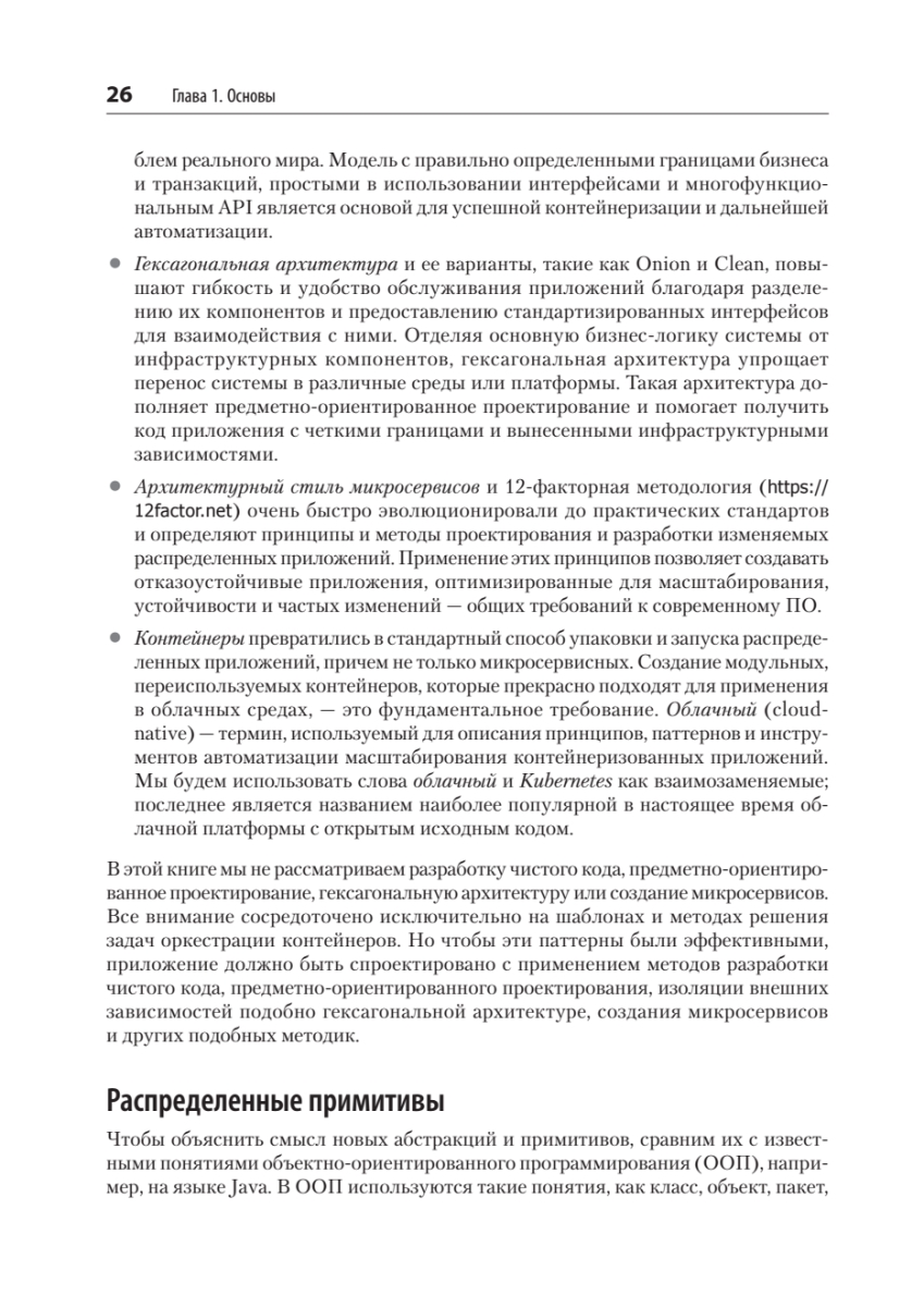 «Паттерны Kubernetes» — это не очередное справочное руководство по настройке кластеров или описанию API. Это фундаментальный труд, который отвечает на самый главный вопрос: «Как эффективно проектировать и строить приложения, предназначенные для работы в Kubernetes?». Билджин Ибрам и Роланд Хасс систематизировали лучшие практики сообщества, преобразовав их в паттерны. Книга учит не просто использовать Kubernetes, а мыслить категориями платформы, правильно комбинируя примитивы для создания отказоустойчивых, масштабируемых и удобных в эксплуатации систем. Это must-read для любого разработчика, который хочет выйти за рамки простого деплоя контейнеров и овладеть всеми возможностями Kubernetes.Каждый паттерн включает описание проблемы и решение с использованием Kubernetes. Все паттерны сопровождаются конкретными примерами кода. Это обновленное издание идеально подходит для разработчиков и архитекторов, которые знакомы с базовыми концепциями Kubernetes, но хотят узнать, как решать задачи проектирования с помощью проверенных паттернов.Вы изучите:• Базовые паттерны, охватывающие основные принципы и практики создания и запуска облачных приложений на основе контейнеров.• Поведенческие паттерны для управления различными типами взаимодействий контейнеров и платформ.• Структурные паттерны для организации контейнеров под конкретные сценарии использования.• Паттерны конфигурации, которые дают представление о том, как конфигурации приложений могут обрабатываться в Kubernetes.• Паттерны безопасности для усиления защиты приложений, работающих в Kubernetes, и повышения их безопасности.• Продвинутые паттерны, охватывающие более сложные сценарии, такие как операторы, автомасштабирование и сборки образов в кластере.