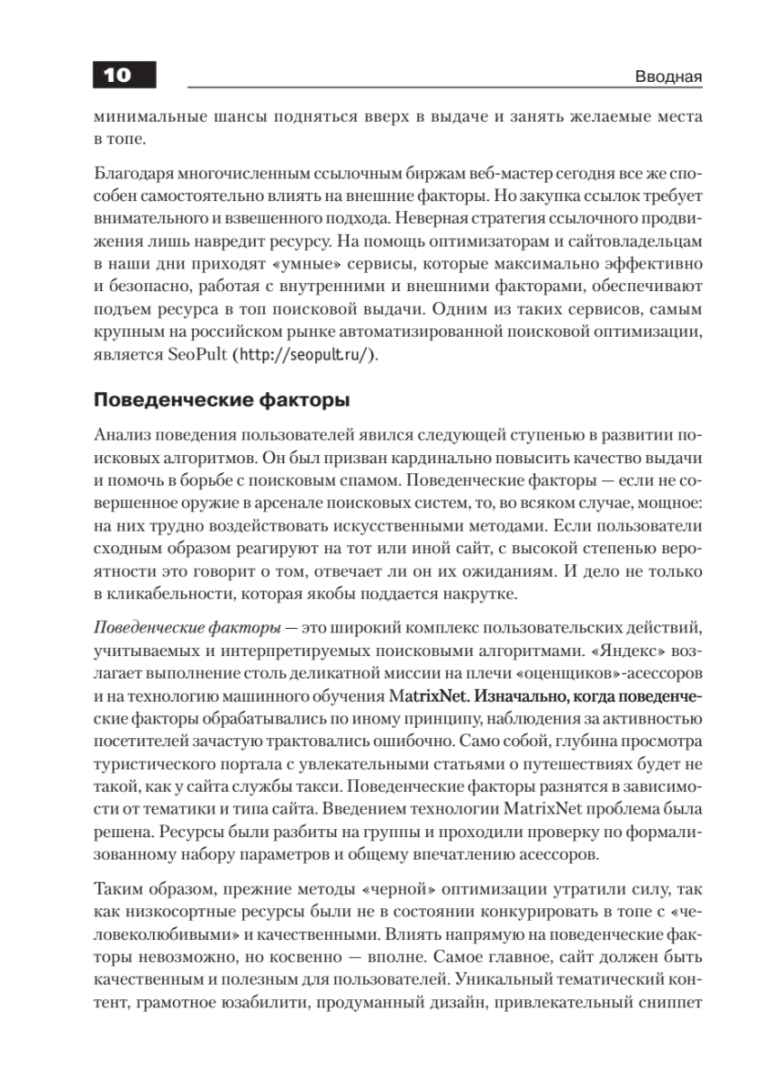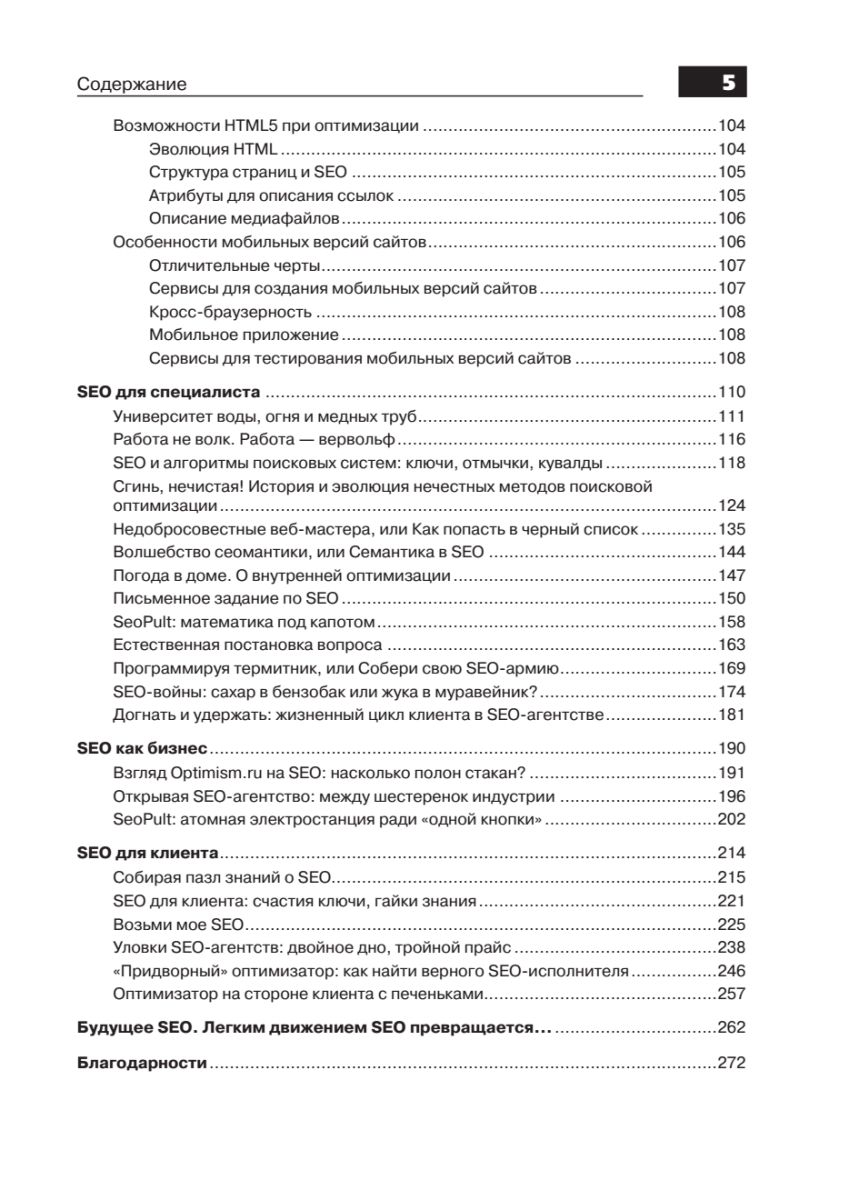 Издание представляет собой самое полное и подробное руководство по поисковой оптимизации (SEO) от практикующих специалистов данной области.Из книги вы узнаете основы SEO – алгоритмы, цели, принципы, особенности оптимизации. Отдельные главы посвящены специалистам, всем, кто желает построить собственную компанию и организовать SEO-бизнес, а также клиентам, использующим данный вид сервиса.В приведенных интервью своим опытом делятся известные в Интернет-сфере личности, эксперты в области SEO: Сергей Людкевич (Корпорация РБС), Алексей Жуков (UnMedia), Илья Зябрев (AlterTrader Research Ltd.), Роман Клевцов (Optimism), Елизавета Трибунская (SearchEngines.ru), Леонид Гроховский (ТопЭксперт).Издание адресовано всем, кто начинает постигать основы поисковой оптимизации, и специалистам, желающим повысить свой профессиональный уровень, благодаря практическому опыту авторов и приведенным рекомендациям от ведущих российских компаний по разработке интернет-решений.