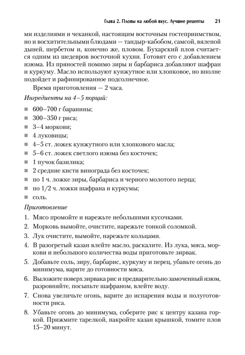 Блюда из риса — основная составляющая многих национальных кухонь. И этому есть объяснение. Ведь рис не только вкусный, но и очень полезный продукт. В мире существует тысячи рецептов кушаний из риса. А какие блюда готовите вы? Гарниры? Молочную рисовую кашу? Запеканки? Хотите освоить новые?На страницах этой книги собраны лучшие рецепты пловов, ризотто и паэльи. Настоящие среднеазиатские и турецкие пловы с сочными ломтиками мяса и потрясающим запахом пряностей, изысканное итальянское ризотто с вином и пармезаном, традиционная испанская паэлья, насыщенная ароматом шафрана и морепродуктов, — все это вы приготовите без труда, следуя подробным инструкциям, приведенным в книге.