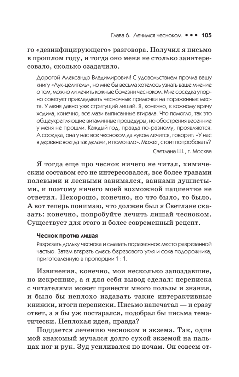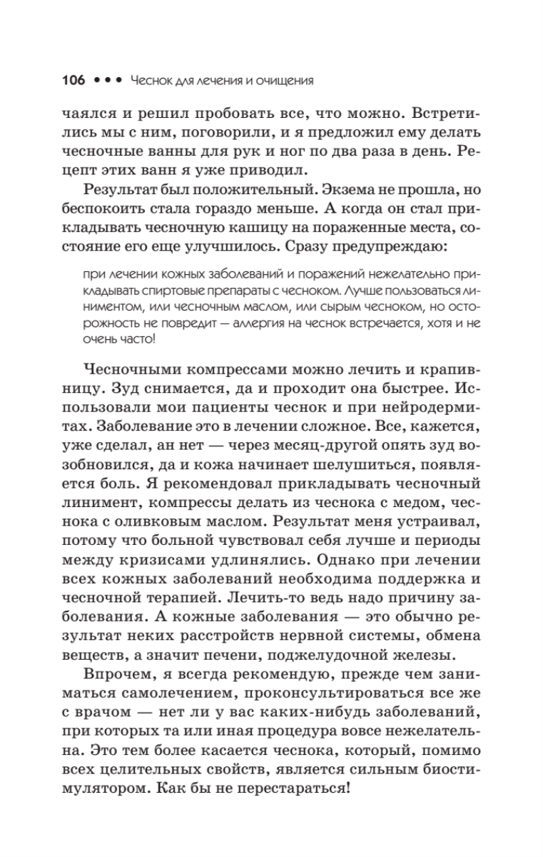 Одна из первых книг известного петербургского целителя-фитоэнергетика Александра Кородецкого. Она не только написана живо и интересно, но и раскрывает такие возможности чеснока, о которых читатель и не подозревает!Вы узнаете, почему чеснок способен излечить практически все заболевания, как приготовить чесночный эликсир для омоложения организма, как почистить печень и кровеносное русло, какие рецепты помогут улучшить цвет лица и восстановить здоровье волос. Автор рассказывает об общеукрепляющей чесночной терапии, об избавлении от инфекций и паразитов с помощью чеснока и даже о чесночных рецептах против энергетических вампиров и нечистой силы. Это и многое другое вы найдете на страницах интересной и, как всегда, чрезвычайно полезной книги Александра Кородецкого, всегда готового прийти к вам на помощь в трудную минуту.