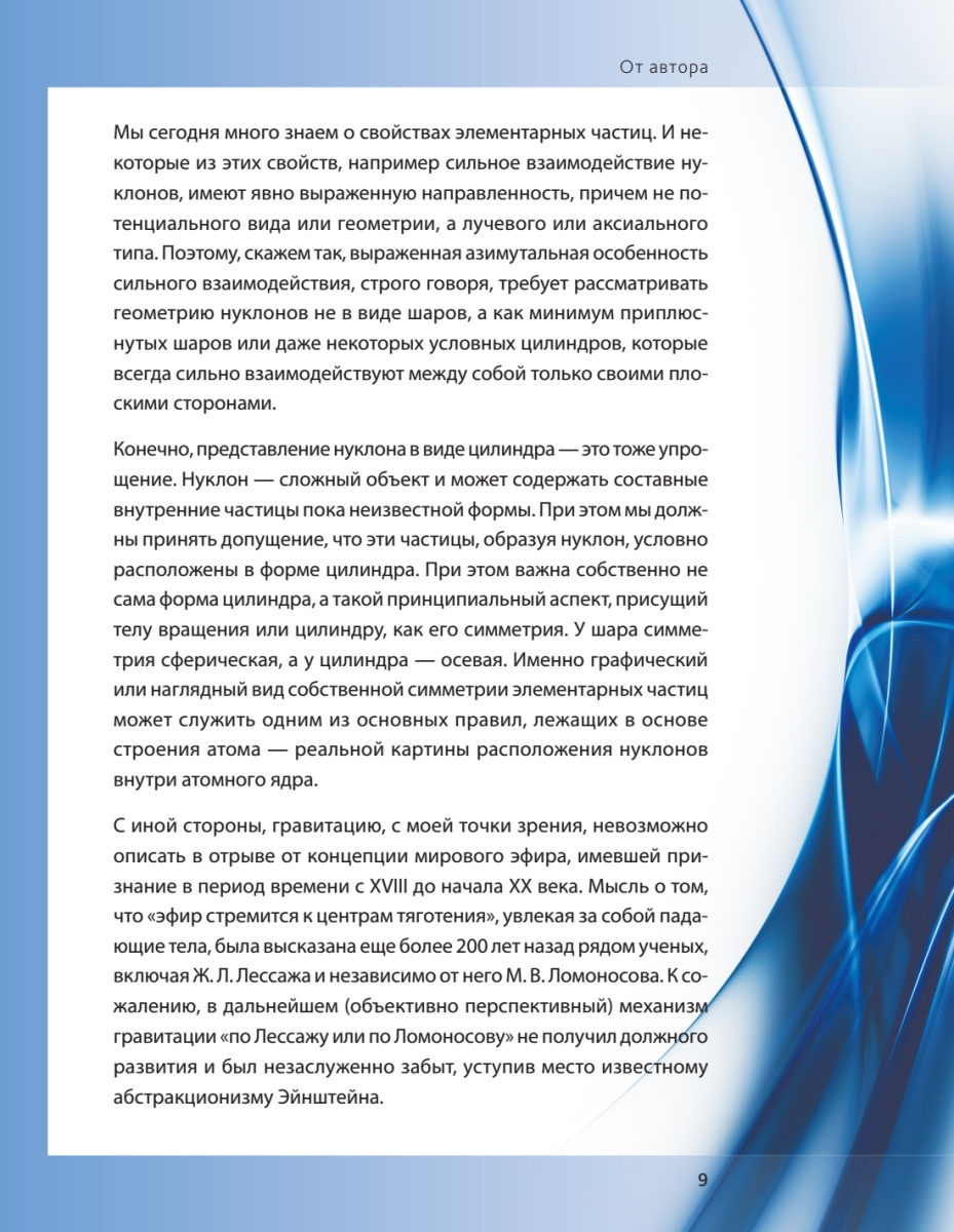 В современной физике инерция и гравитация всегда были, есть и будут наиболее «загадочными» явлениями. Вместе с автором вы рассмотрите данные понятия с иной точки зрения, объединяющей как традиционные физические концепции атомного ядра и гравитации, так и совершенно новые исследования в этой недостаточно изученной области науки.В простой и доступной форме автор излагает многие принципиальные вопросы фундаментальной физики, включая теорию относительности и структуру атомного ядра, сопровождая тезисы несложными аналитическими расчетами, понятными наглядными моделями и таблицами.Приводятся новые закономерности в области гравитации, единой теории поля, стабильности и радиоактивности атомов, нуклонной структуры атомных ядер. Конструктивной критике подвергнута планетарная модель атома, вместо которой предлагается и подробно описана так называемая аксиальная модель. Впервые в физику вводятся понятия двухзонного ядра атома и периодической системы основных нуклидов.Книга адресована физикам и математикам – научным сотрудникам, преподавателям, студентам и ученикам старших классов школы. Издание также будет полезно всем читателям, интересующимся современной теорией относительности и гравитации, моделированием атома и атомного ядра.
