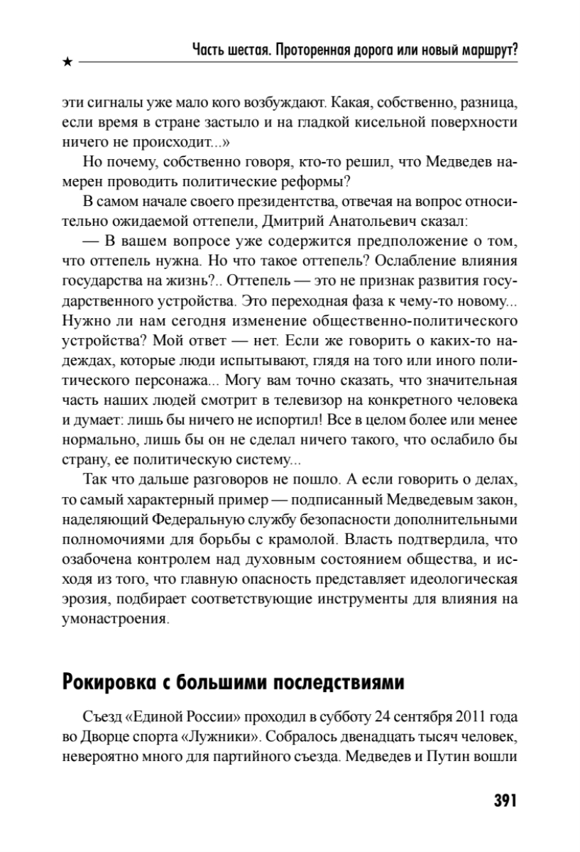 Новая книга Леонида Млечина — не только биография Владимира Путина, но и попытка разобраться в том, как изменилась Россия за последние годы. История страны не заканчивается на президентских выборах 2012 года. Нас подстерегает экономический кризис, Россия находится перед серьезными социальными вызовами. И перед лидером государства неизбежно встает вопрос: что дальше? Что делать в ситуации, когда даже мыслящая публика не знает, что предпринять?
