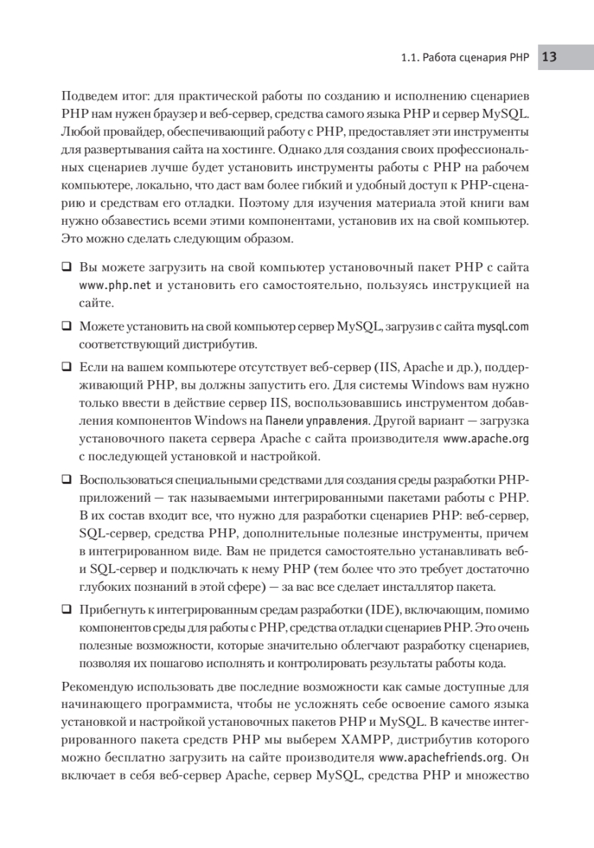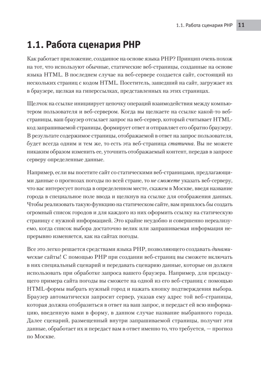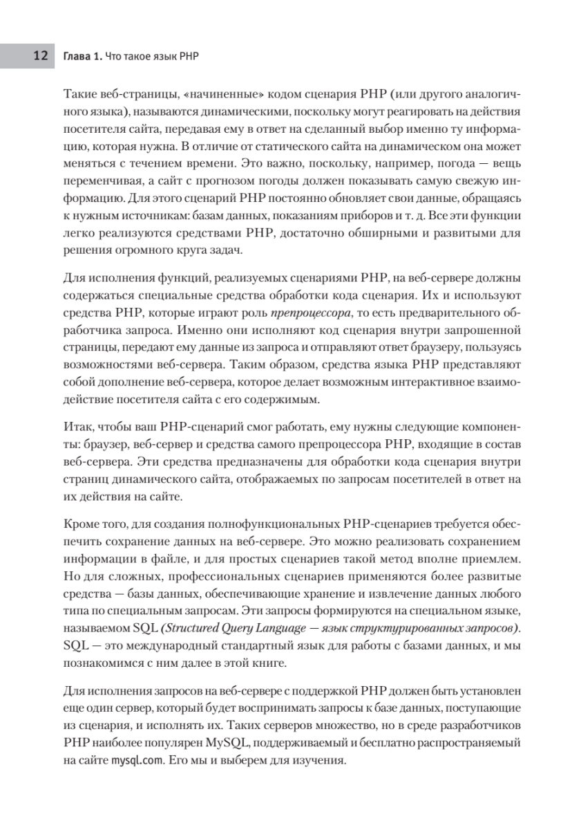 Если у вас есть опыт верстки веб-страниц и вы хотите перейти на новый уровень разработки, то эта книга для вас. Вы познакомитесь с наиболее популярным языком программирования для создания веб-приложений — PHP. Благодаря практическим примерам в книге вы научитесь разрабатывать веб-приложения, превращать статические сайты в динамические, использовать веб-технологию AJAX для загрузки больших объемов данных на сайт. Кроме того, узнаете, как управлять базами данных с помощью MySQL, и познакомитесь с концепциями объектно-ориентированного программирования.