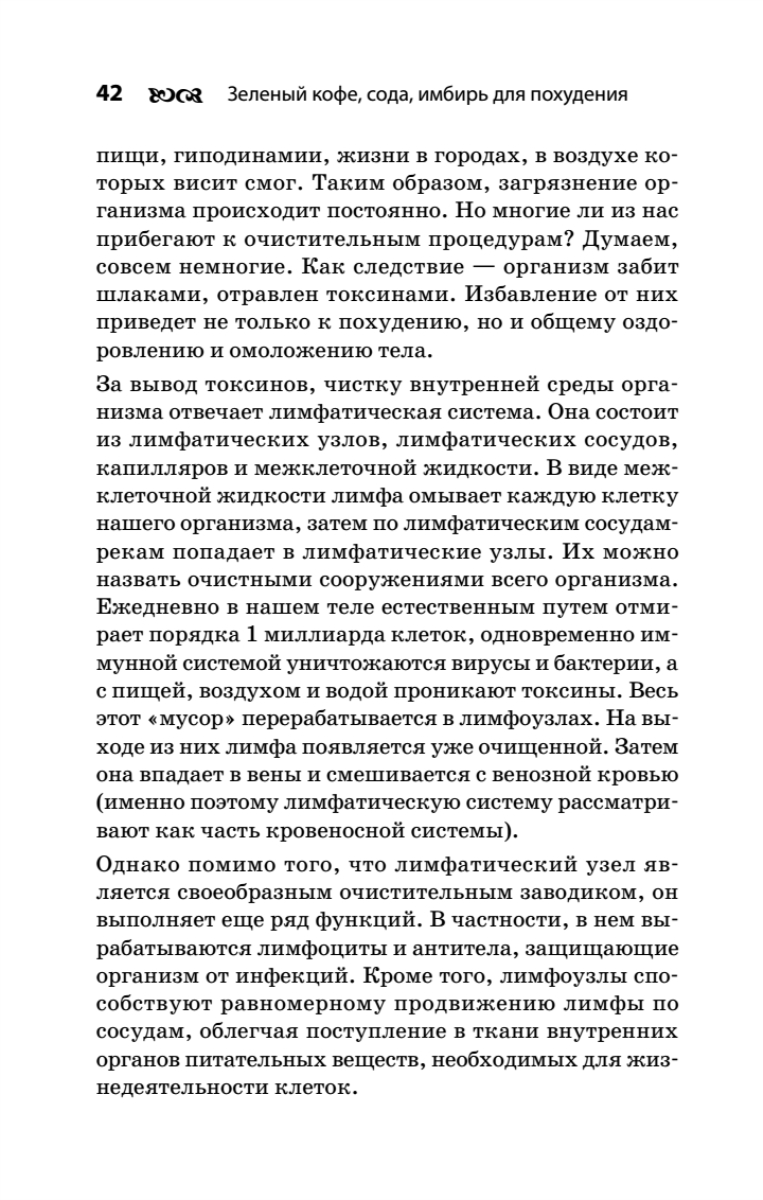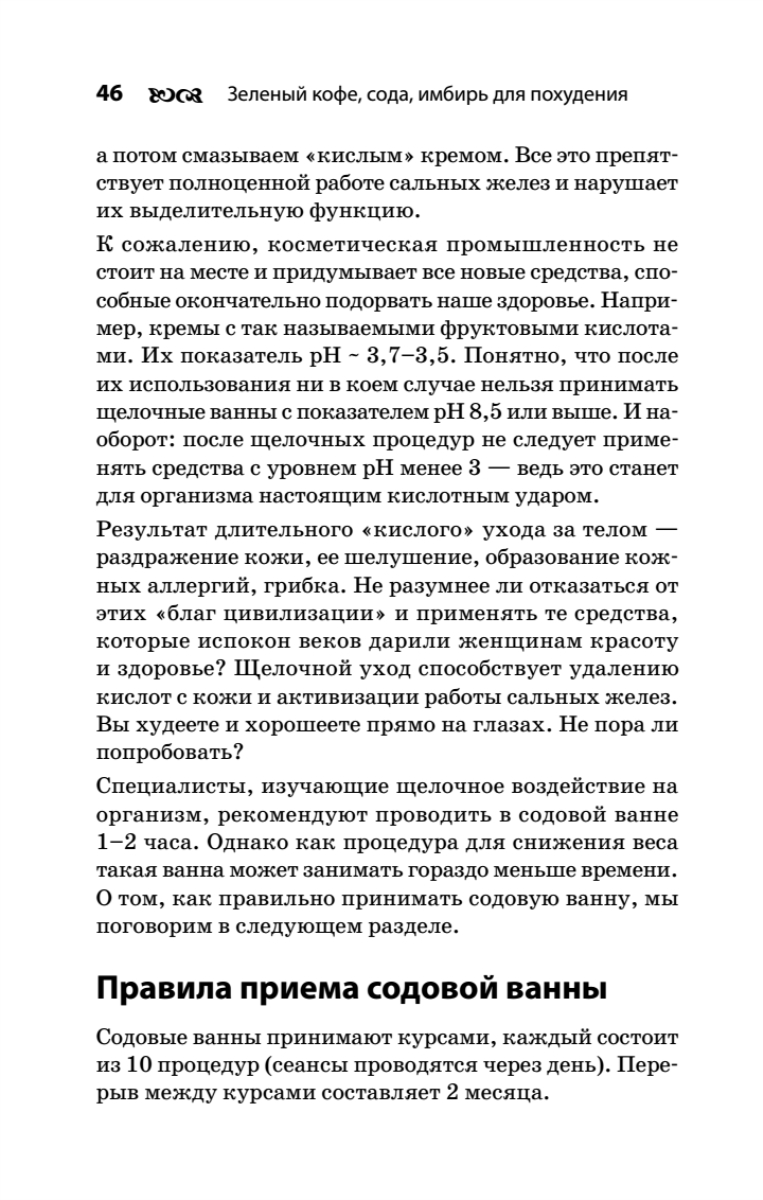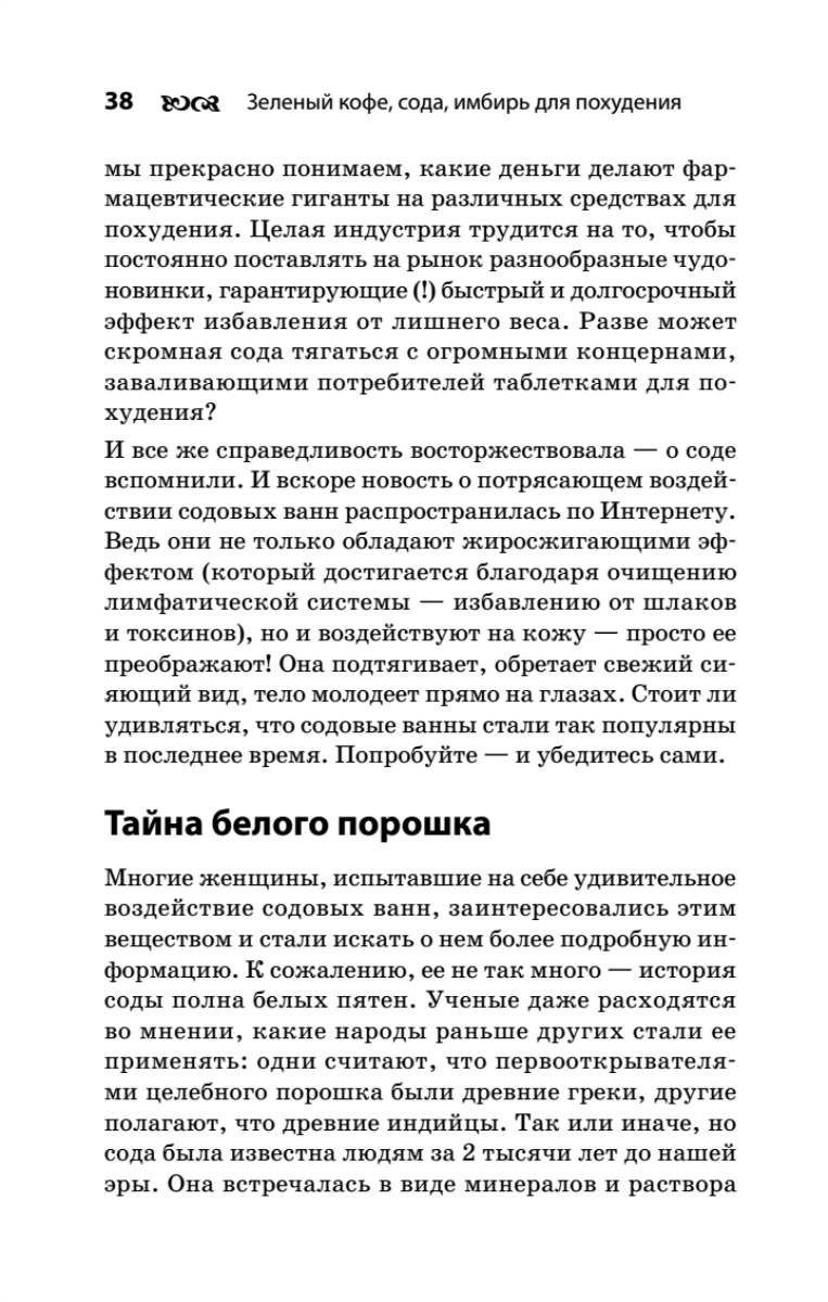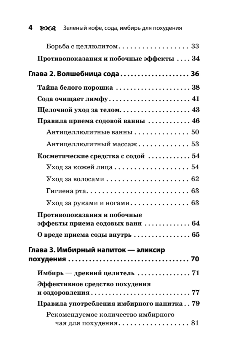 Зеленый кофе, сода и имбирь — натуральные и безопасные средства борьбы с лишним весом. Результат, который можно получить благодаря их применению, не поражает воображение — вы не сбросите 20 килограммов за неделю. Однако постепенно, неделя за неделей, вы будете лишаться ненавистных лишних килограммов и уменьшать объемы тела — без страданий оттого, что вам нельзя съесть пирожное. И главное — эффект сохранится надолго. В результате длительного употребления зеленого кофе, имбиря и применения содовых ванн ваш организм перестроится — наладится обмен веществ, а значит, изменится и фигура.Найдите для себя идеальный способ обрести стройность!
