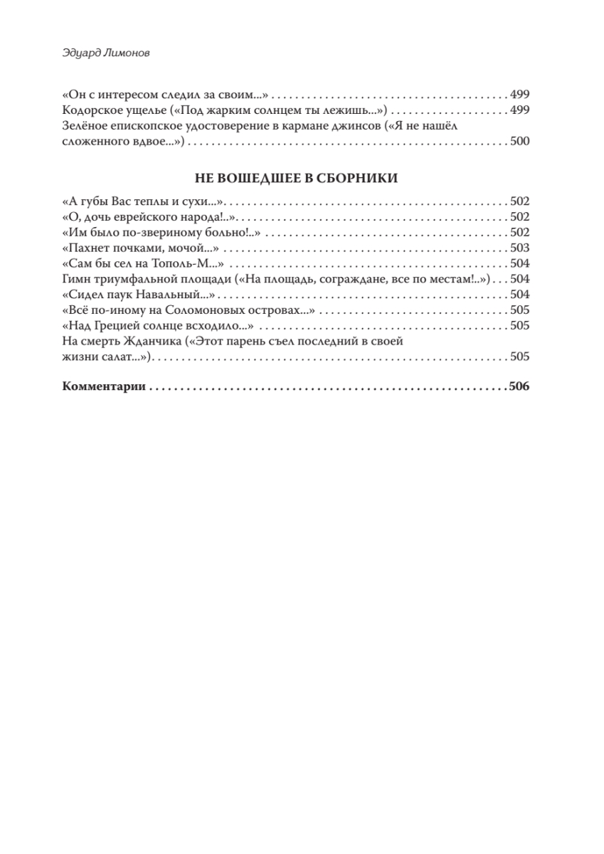Эдуард Вениаминович Лимонов известен как прозаик, социальный философ, политик. Но начинал Лимонов как поэт. Именно так он представлял себя в самом знаменитом своём романе «Это я, Эдичка»: «Я – русский поэт». О поэзии Лимонова оставили самые высокие отзывы такие специалисты, как Александр Жолковский и Иосиф Бродский. Поэтический голос Лимонова уникален, а вклад в историю национальной и мировой словесности ещё будет осмысливаться. Вернувшийся к сочинению стихов в последние два десятилетия своей жизни, Лимонов оставил огромное поэтическое наследие. До сих пор даже не предпринимались попытки собрать и классифицировать его.Помимо прижизненных книг здесь собраны неподцензурные самиздатовские сборники, стихотворения из отдельных рукописей и машинописей, прочие плоды архивных разысканий, начатых ещё при жизни Лимонова и законченных только сейчас.Более двухсот образцов малой и крупной поэтической формы будет опубликовано в составе данного собрания впервые. Читателю предстоит уникальная возможность уже после ухода автора ознакомиться с неизвестными сочинениями безусловного классика.Собрание сопровождено полновесными культурологическими комментариями.Публикуется с сохранением авторской орфографии и пунктуации.