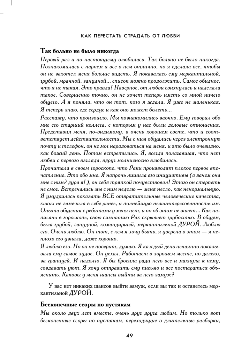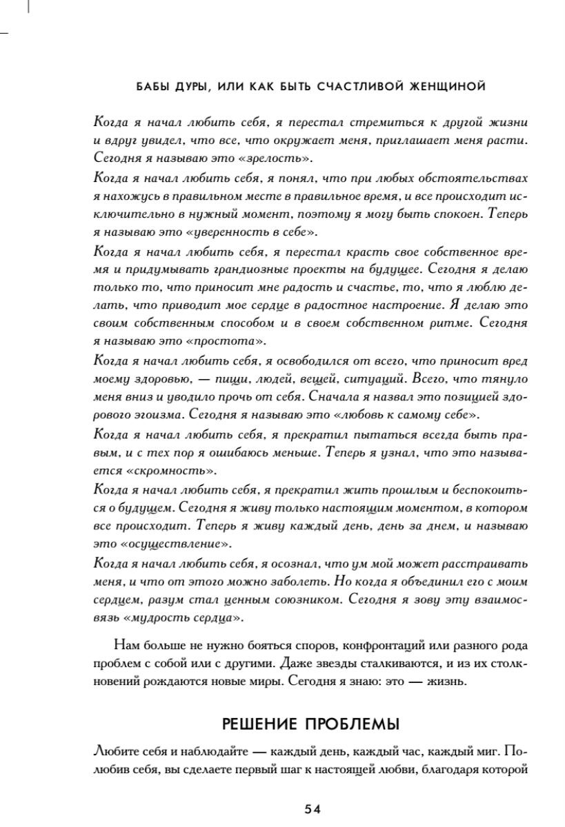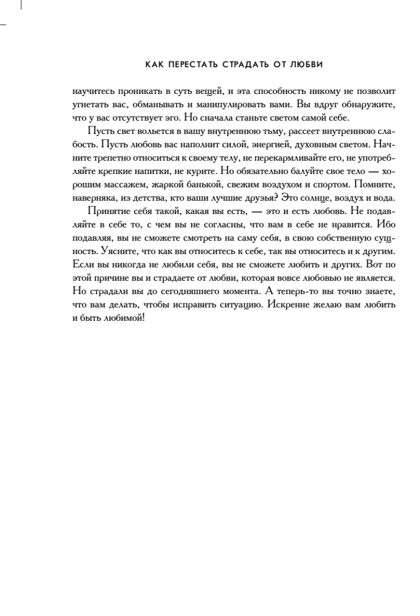 Вам нравится ваша жизнь? Или вы мечтали когда-то о большем, но потом почему-то остановились, удовлетворились тем, что есть, решили, что лучшее вам не суждено, или, может быть, вы его не достойны? Бирка с ценой, которую вы себе прикрепили, и является мерилом того, с каким мужем вы живете, какую работу имеете, в какие ситуации попадаете. Если вы склонны довольствоваться тем, что вам предлагают, а не выбирать то, что устраивает вас, то в этом случае вы сделали неправильный выбор. Боязнь идти на риск, незнание жизни и незрелость и приводят к тому, что мы живем совершенно не так, как хотели бы. Вы ведь не думаете, что постоянные жалобы и хныканье, если это делать достаточно долго, изменят ситуацию? Не надейтесь! Все останется по-прежнему, кроме вашего возраста. Если вы хотите изменить свою жизнь, достичь большего и жить с удовольствием, моя книга для вас. Давайте станем счастливыми!