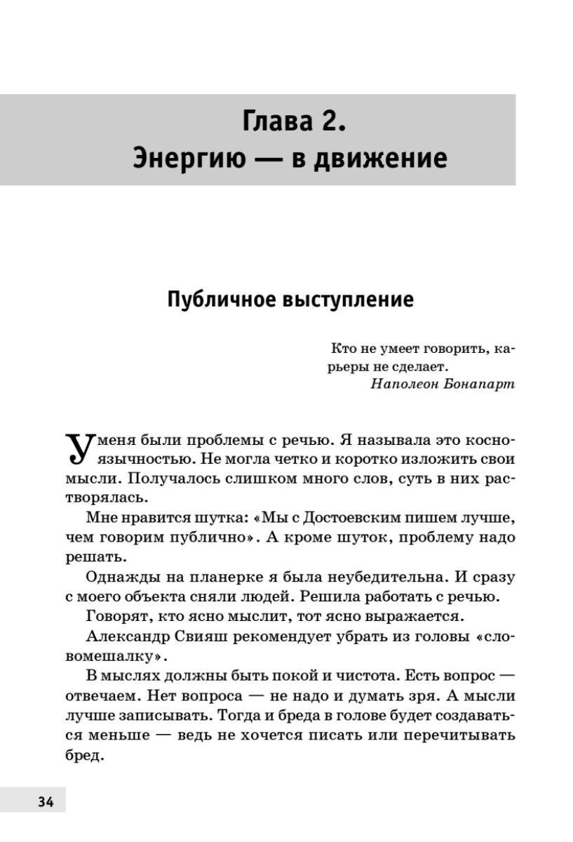 В багаже Надежды Командиной высшее строительное образование (МГСУ), МВА по управлению, факультет журналистики МГУ, стажировки в Англии и США, более 16 лет в строительном бизнесе. Сейчас она управляющий крупных строительных проектов.В книге собрана теоретическая и практическая база для:• эффективного управления своим временем; • подготовки публичных выступлений; • знакомства с основными законами логики;• овладения средствами вербальной и невербальной коммуникации;• получения «win-win» результата в переговорах; • ответа на вопрос: «Создать свое дело или сделать карьеру наемного сотрудника?»;• создания мотивации у себя и подчиненных, овладения дополнительными навыками, открытия в себе новых талантов.В книгу вошли материалы и идеи всемирно признанных гениев (Кови, Менегетти, Карнеги, Дилтс, Маслоу, Якокка и др.), полезные мысли и практические советы профессоров и успешных бизнесменов. А для поднятия настроения есть глава «Афоризмы менеджмента».Это шпаргалка для тех, у кого нет времени и желания перечитывать толстые тома профессионалов бизнес-мысли.«Характер нельзя унаследовать. Человек создает его каждодневно — тем, что он думает и что делает: мысль за мыслью, поступок за поступком». Элен Дуглас