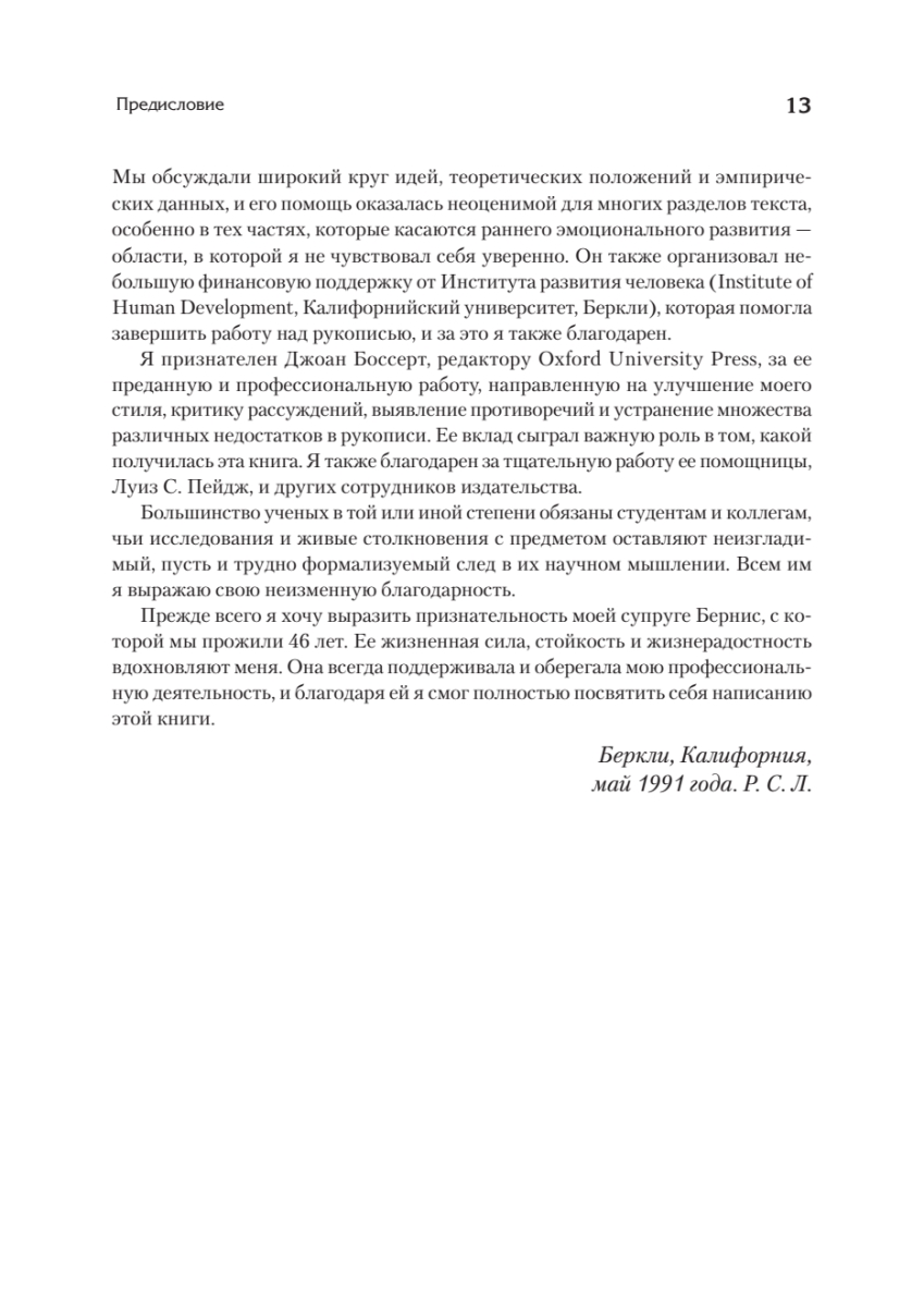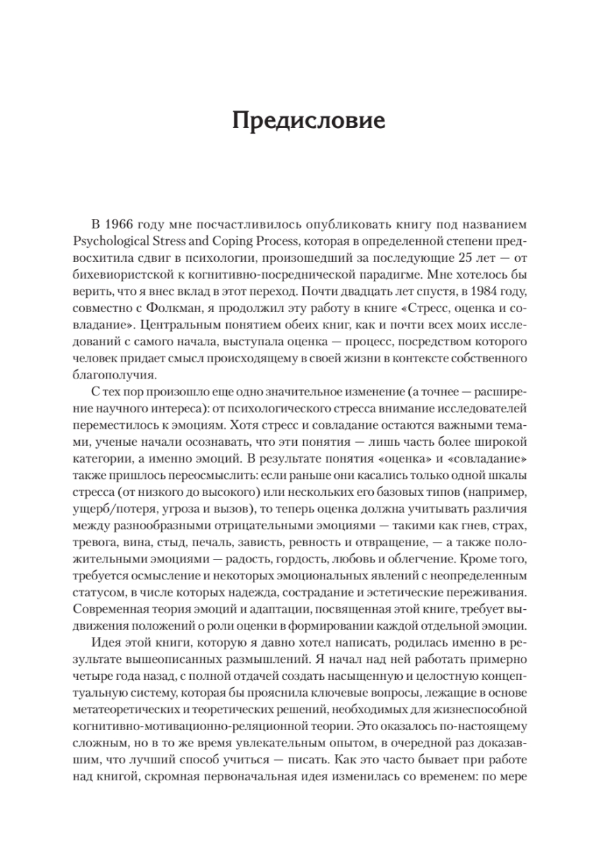 В этой эпохальной работе Ричард Лазарус предлагает всестороннее рассмотрение психологии эмоций и ее роли в адаптации. Эта работа представляет собой полную теорию эмоциональных процессов, объясняющую, как возникают и выражаются различные эмоции, а также как эмоциональный диапазон людей меняется в течение их жизни. Авторский подход отводит эмоциям центральную роль как сложной, структурированной, органичной реакции как на повседневные события, так и на долгосрочные усилия индивида по выживанию, процветанию и достижениям. По его мнению, эмоции неотделимы от других функций - биологических, социальных и когнитивных - и выражают сокровенный, личный смысл того, что испытывает человек. Лазарус рассматривает долгосрочные последствия эмоций для физического здоровья и благополучия, а также лечение и профилактику эмоциональной дисфункции. Книга представляет интерес для студентов, клиницистов и исследователей, занимающихся личностной, социальной и клинической психологией, а также когнитивной психологией и психологией развития. Она также может быть использована в качестве дополнительного пособия при изучении курсов по психологии адаптации, эмоций и чувств.