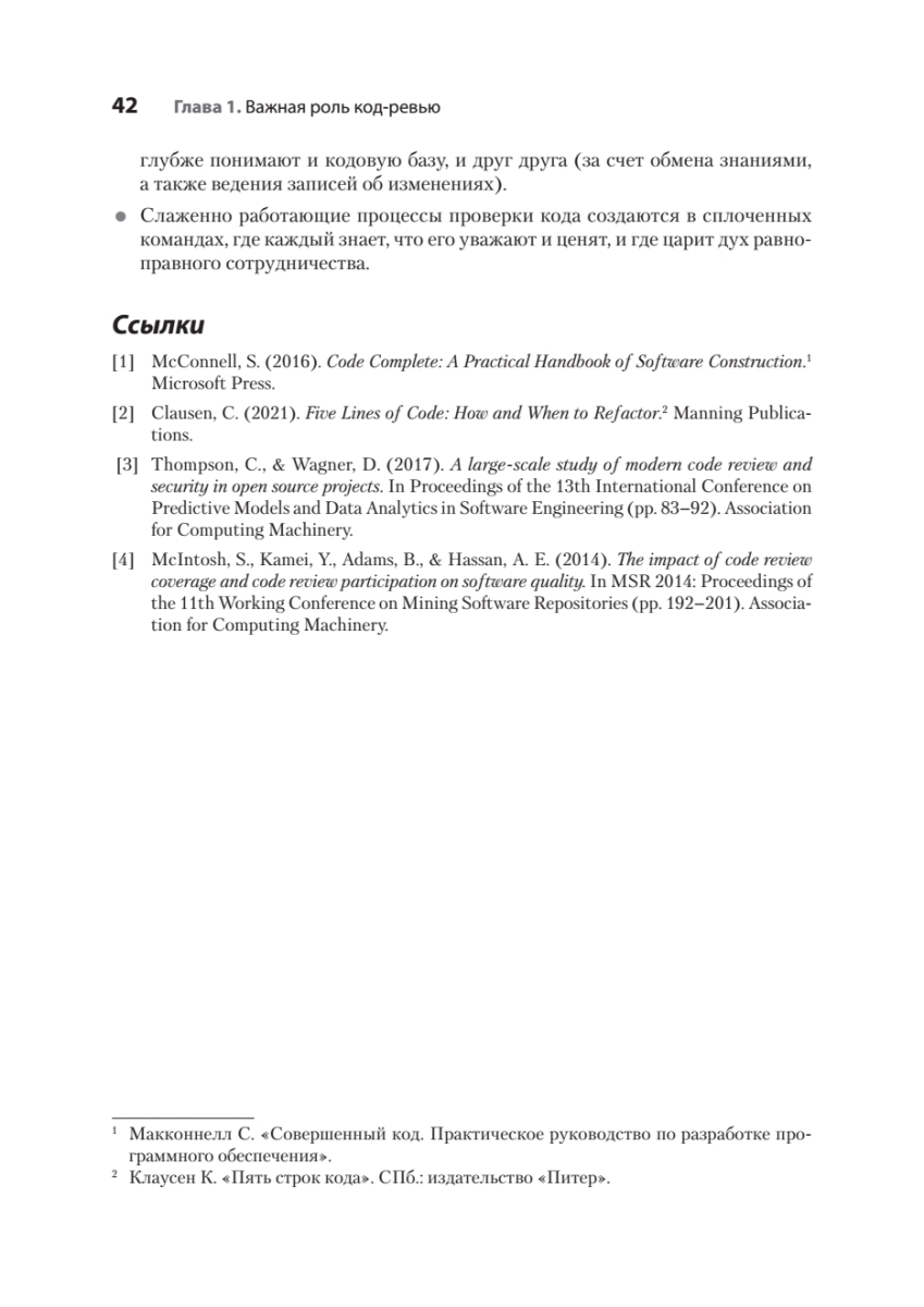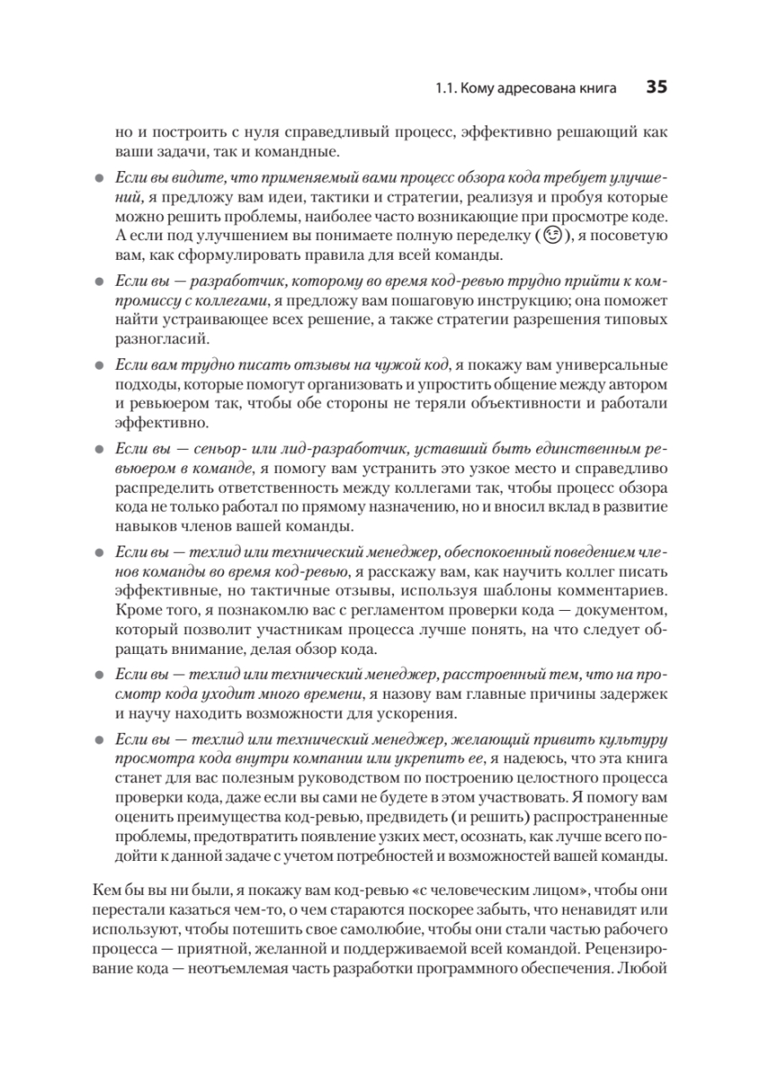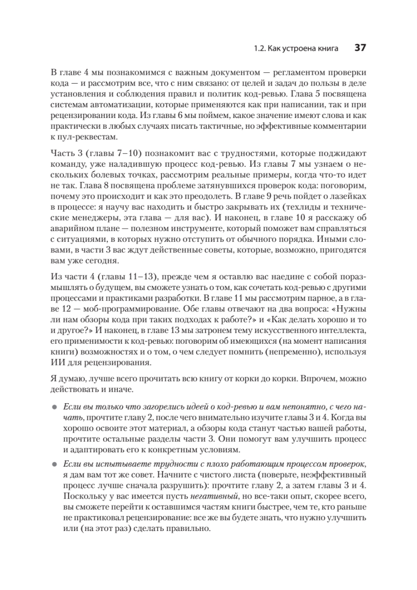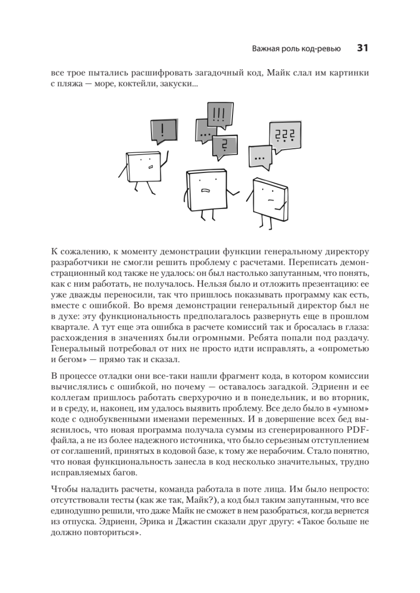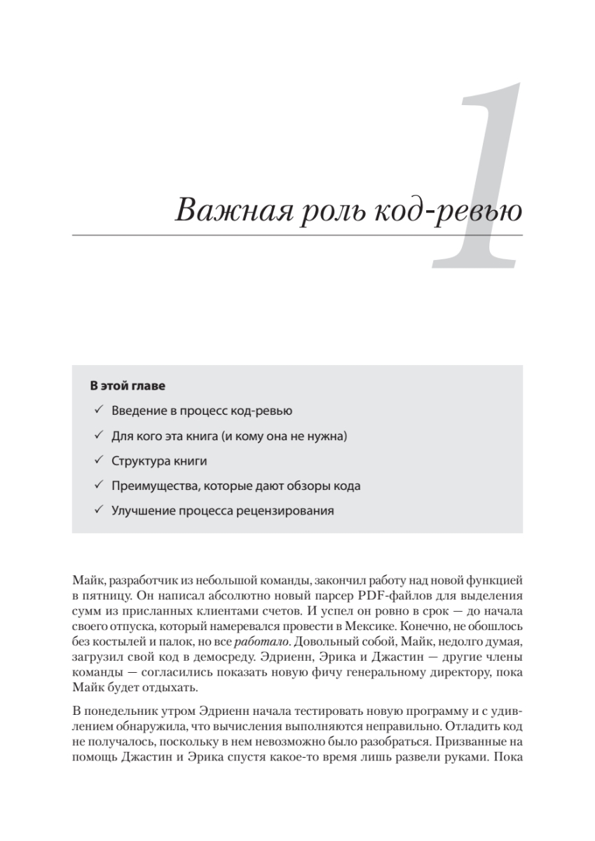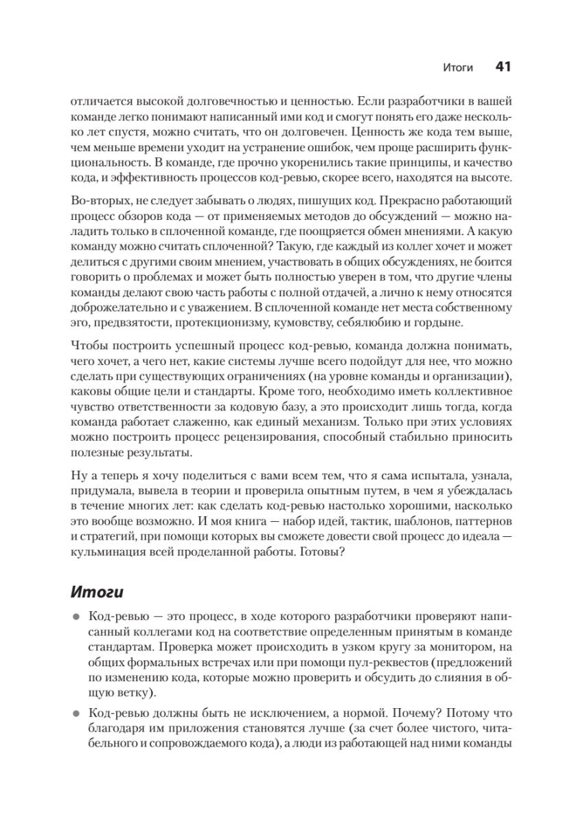 Сделайте код-ревью продуктивным, вызывающим положительные эмоции процессом, каким он и должен быть. Неважно, проверяют ваш код или же вы проверяете чью-то работу, получите продуманные инструкции, которые помогут избежать напряженных дебатов, неплодотворных придирок и узких мест — всего того, чего мы привычно ждем от код-ревью.Научитесь здравому и внимательному подходу к код-ревью, который одной из первых стала применять автор книги — Эдриенн Браганца. Узнайте, как создать в команде доброжелательную атмосферу, четко согласовать цели код-ревью и ожидания от него, как подготовиться к любым изменениям и препятствиям, с которыми можете столкнуться. Освойте практики, которые можно адаптировать к тому, как работает ваша команда, познакомьтесь со множеством возможностей и решений, надежных сценариев, а также примеров из реальной жизни. Вскоре вы сможете построить высокоэффективный процесс код-ревью, который сделает ваш код лучше, а вашу команду сильнее.