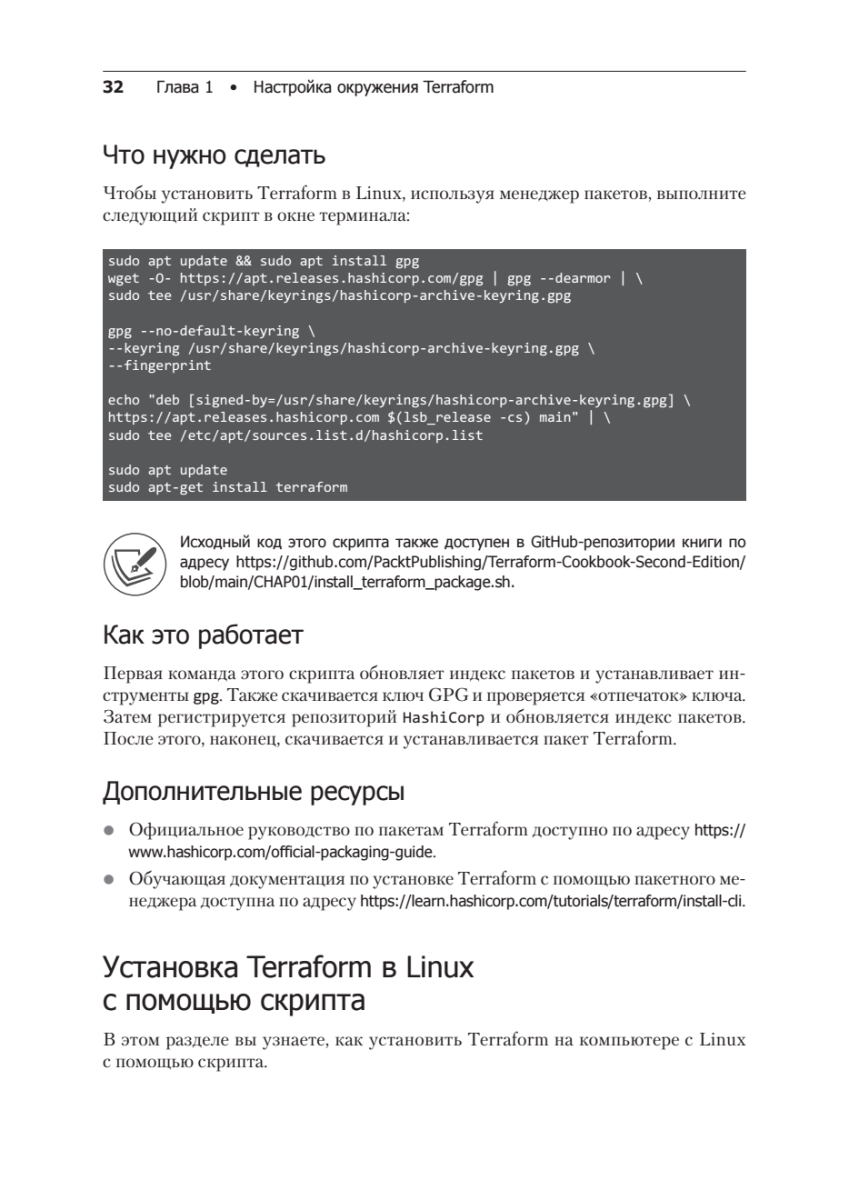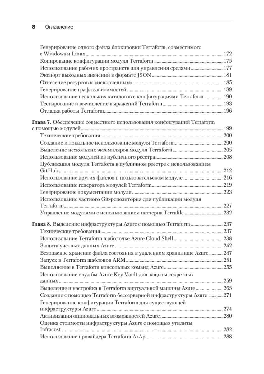 С появлением Terraform, замечательного инструмента управления инфраструктурой как кодом (IaC), язык конфигурирования HashiCorp (HCL) изменил подход к определению и формированию инфраструктуры центров обработки данных. Узнайте, как Terraform упрощает управление сложной инфраструктурой.Обновленное издание включает практические примеры развертывания инфраструктуры Azure, AWS и GCP с помощью Terraform. Углубитесь в изучение ручных и автоматизированных подходов к тестированию конфигураций Terraform, и познакомьтесь с приемами создания сбалансированной, эффективной и универсальной инфраструктуры и управления ею с помощью модулей Terraform. Вы узнаете, как автоматизировать развертывание конфигурации Terraform с помощью непрерывной интеграции и непрерывной поставки (CI/CD).Кроме того, в издание добавлено несколько новых глав, в которых описывается использование Terraform вместе с Docker и Kubernetes, рассматриваются сложные вопросы, связанные с практикой GitOps, и объясняется, как тестировать конфигурации Terraform с помощью различных инструментов и проверять их соответствие требованиям безопасности. В последней главе исследуются вопросы устранения распространенных проблем с Terraform и предлагаются решения для часто встречающихся ошибок.Извлеките максимальную пользу из Terraform и организуйте эффективное управление инфраструктурой.